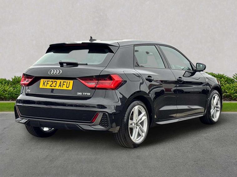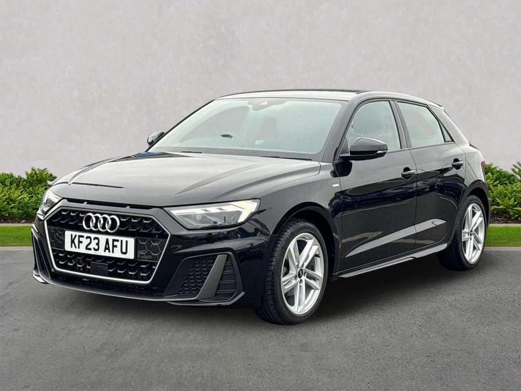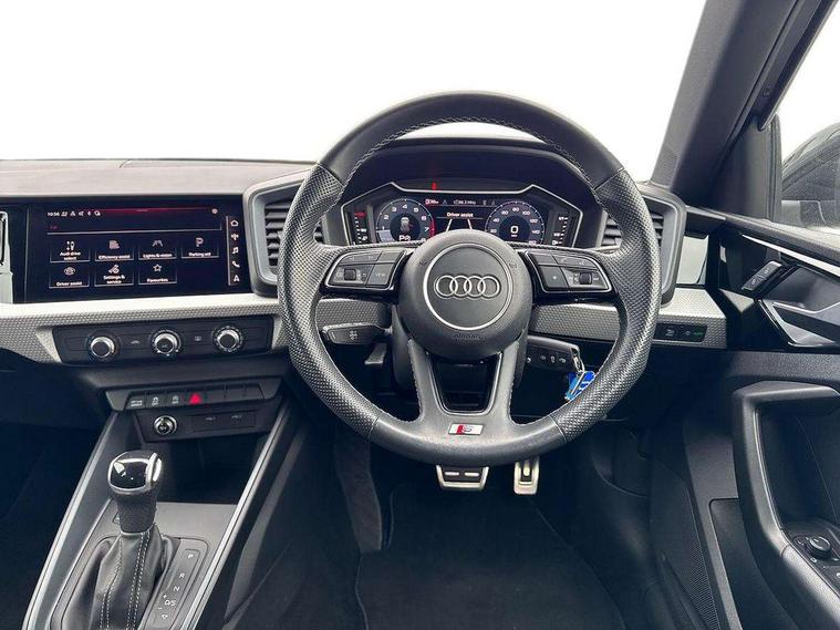 10.25" Digital instrument cluster display classis style instrument dials + speed, odometer, time, outside temperature, telephone menu + fuel level warning, Audi drive select - power steering assistance + engine + gear shift 3 preset modes (auto, dynamic, efficiency and an Individual mode), Audi smartphone interface with connect compatible smartphone via USB directly MMI display + Nav, music, third party apps controlled via MMI controller, Automatic start/stop system, Bluetooth interface, Cruise control, Driver's information system, Electromechanical power steering, Emergency e-call, Lane departure warning system, Rear parking sensor, Service interval indicator, Speed limiter, Voice control system, Washer fluid level indicator, Sports suspension, 2 x USB type C connection points, 6 passive loudspeakers, DAB Digital radio, MMI radio plus with 10.1" colour MMI display screen and MMI touch, Auto dimming rear view mirror, Body coloured door mirrors, Door sills with aluminium inlays and S Line logo, Electric front and rear windows, Electrically adjustable, heated, folding door mirrors with integrated LED side indicator, Front side air inlets in grained matt black and C frame in anthracite black, Heat insulating glass windscreen and side windows, Heated rear windscreen, High level LED brake light, LED headlights with LED rear lights + dynamic rear indicators + headlight adjustment and high beam, turning light + LED daytime running lights, Privacy glass, Radiator grille and rear diffuser in matt anthracite black, Radiator protective grille frame in matt aluminium silver, Rain and light sensors, Rear fog lights, Rear side wing doors, Rear wiper, S line badges on front wings, Side front spoiler lips in grained matt black, 12V socket in centre console with two cup holders, 3 rear seats with headrests, 3 seat bench in 2nd row, 3 spoke leather multi-function plus steering wheel features S badging and grips in perforated leather with contrast stitching, 40:60 Split folding rear seat or folded fully, Black cloth headlining, Driver and passenger seat with manual height adjust with forward and backwards adjustment, Front and rear black floor mats with contrast stitching in fine silver, Front head restraints, Front passenger seat, Height and reach adjustable steering wheel, ISOFIX child seat mounting for front passenger and outer rear seats including top tether attachment point of outer rear seats, Leather gear knob with aluminium trim, Leather handbrake grip, Luggage compartment light with front and rear reading lights, Manual air conditioning, Manually adjustable lumbar support in front seats, Stainless steel pedals, LED interior lighting pack - A1, Luggage compartment pack - A1, S line exterior styling pack - A1 Sportback, 3x3 point rear seatbelts, Audi pre-sense front with pedestrain and cyclist recognition, Brake assist function, Driver and front passenger airbag with front side and head airbags, Electronic Stability Control including ABS, EBD, ASR and EDL, Front passenger airbag deactivation switch, Hill hold assist, Manual rear child locks, Seatbelt height adjustment for front seats, Seatbelt monitoring, Tyre pressure warning light, Warning triangle and first aid kit, Anti theft alarm, Anti theft wheel bolts and loose wheel warning, Immobiliser, Remote central locking with 2 foldaway keys, Aluminium trim for control switches, air vents and digital instrument cluster, Black dashboard, Silver grey inlays polygon structure in diamond paint finish, Structured grey accent areas including air vents, door handle recesses and centre console in quartz paint finish,