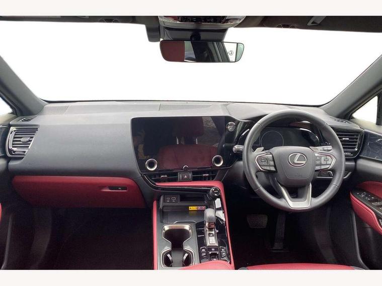 7" display in instrument binnacle, Blind spot monitoring with rear cross traffic alert, Bluetooth telephone connectivity, eCall emergency system, Electric speed sensitive power steering, Intelligent parking sensors - 4 front and 4 rear with object and pedestrain detection, Lane change flasher function, Lexus link connect - Cloud based navigation, cloud based voice assistant, always online and 9.8" VGA touchscreen, Push button starter, Reversing camera with back guidelines, Service interval indicator, Tailgate, Wireless Apple CarPlay/Android Auto, Wireless Smartphone charger, 6.6 kW onboard charger, All Wheel Drive (AWD), Hybrid automatic transmission, Vehicle Dynamics Integrated Management (VDIM), Vehicle Stability Control (VSC), 10 speakers, 4 USB ports - 2 front, one USB C, 2 rear USB C, DAB Digital radio, Auto dimming interior rear view mirror, Automatic headlights, Black roof, Double hidden exhaust pipes, Front and rear one touch power windows, with anti-jam protection, Heated and auto folding door mirrors, Illuminated door handles with puddle light, LED brake lights and rear lights with emergency brake signal, LED cornering lights, LED daytime running lights, LED front fog lights, LED Indicators, LED low beam and Hi-beam headlight, Power back door system, Privacy glass, rear doors and tailgate, Rain sensor windscreen wipers, Rear side wing doors, Rear wiper, Roof rails, 12V accessory port centre console and luggage compartment, 2 cupholders in front centre console, 2 way electrical lumbar adjustment for driver, 2 x fixed shopping bag hooks in boot, 2 x sun visors with vanity mirror and lamp, 3 seat bench in 2nd row, 4 x tie down hooks in the boot, 60/40 split folding rear seat, 8 way driver/passenger electrically adjustable front seats, Adjustable rear seat backrest, Ambient light in 64 colours, Card holder installed in driver and passengers sun visors, Centre armrest with storage box, Dual climate control air conditioning system, Front and rear head restraints, Front and rear textile carpet mats, Front passenger seat, Heated front seats, Heated steering wheel, LED interior illumination, Power adjustable leather steering wheel with paddle shifts, Premium Tahara leather upholstery, Rear centre armrest with 2 cupholders, Whiplash Injury Lessening (WIL) feature (active headrest) for seats, 3 point ELR front seatbelts with pretensioners, 3x3 point rear seat belts, ABS, Adjustable seat belt anchor points, Driver and front passenger 2 stage airbag, Driver/front passenger side airbags, Drivers knee airbag, E-Latch with safe exit assist, EBD + Brake Assist, ECB (Electronically Controlled Brake System), Electronic parking brake, Front and rear curtain shield airbags, Front center airbag, Front passenger seat cushion airbag, Hill assist control, Lexus safety system - dynamic radar cruise control, pre collision system day and night, lane tracing assist, road sign, automatic high beam, OTA, Manual rear child locks, Passenger airbag cut-off device, Traction control, Tyre pressure warning, Anti-theft system with alarm, intrusion sensor, glass breakage sensor, tilt sensor and engine immobiliser, Locking wheel nuts, Smart entry ( front/rear/boot), Speed sensitive auto door locking, Ultra Wide Band (UWB) Anti-theft system, VIN Window etching, 3D prism black Inlay, Organic inlay, Tyre repair kit,