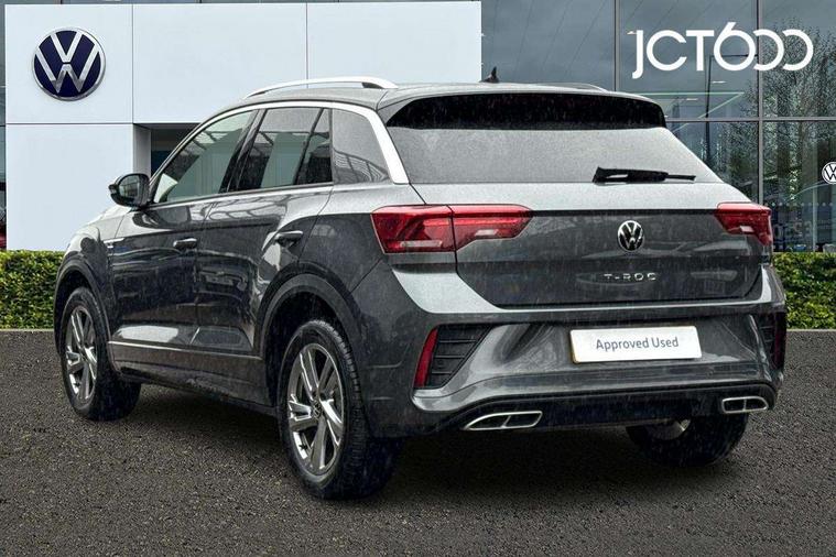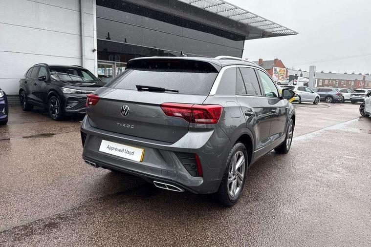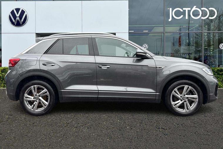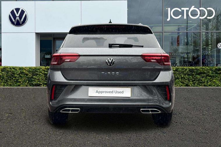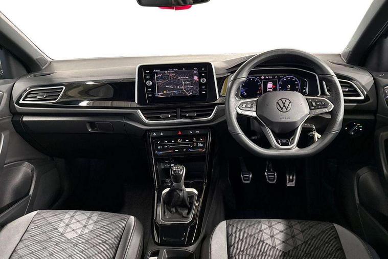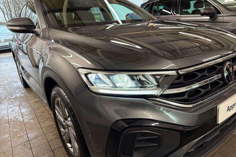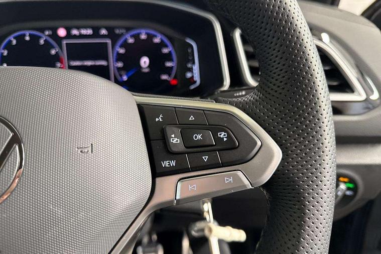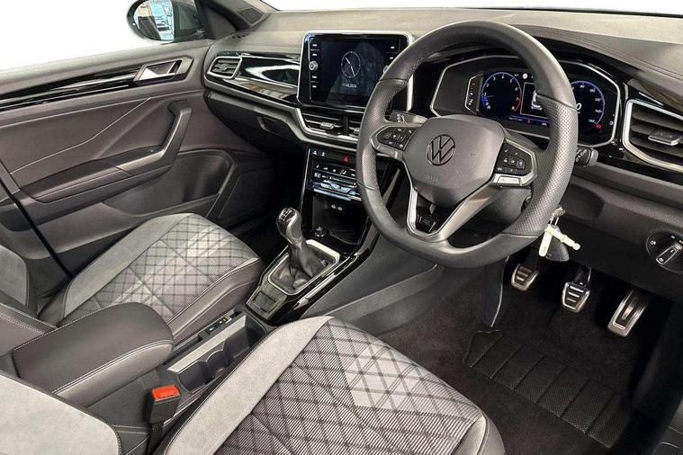 10.25" Digital cockpit pro, Advanced driver attention and drowsiness monitor, Emergency call service, Lane keeping system Lane Assist, Mobile phone interface, Modified key software - reduce switch off time for key status change to Long no motion, Online services, Park assist including front and rear parking sensors, Service interval indicator, Tailgate/trunk lid release from outside, Think blue trainer driver tips and journey analysis, Warning sound and light for front seatbelts unfastened, Wireless app connect, Battery regeneration during braking, Start/stop function with battery regeneration, DAB Digital radio, Diversity antenna for FM reception, Front and rear 6 speakers, Music playback - MP3, WMA and AAC files, Premium USB cable in choice of either Apple or Android smartphone compatibility, SD card slot, Simultaneous pairing of 2 compatible mobile devices, Title and cover art display, We Connect and We Connect Plus functionality, Auto dimming interior rear view mirror, Automatic hazard lights activation under emergency braking, Automatic headlight control with LED separate daytime running lights with coming/leaving home function, Body coloured exterior mirror housings and door handles, Electrically adjustable and heated door mirrors, Extended roof spoiler, Exterior mirrors aspherical on driver side, convex on front passenger side, External USB type C socket and charging sockets, Front windscreen wiper with intermittent wipe and 4 position delay, Heated rear window, LED 3rd brake light, LED rear combination lamps, LED rear number plate lights, Power windows with comfort operation and circuit breaker, Privacy glass for rear side windows and rear window, R-Line design body coloured bumpers, Rain sensor, Rear exhaust tailpipe, Rear fog light on one side and reversing lights on both sides, Rear side wing doors, Rear wash/wipe with intermittent wipe setting, Remote electrically foldable door mirrors, puddle lights and reverse activated passenger's door mirror, 12V power socket in centre console, 3 rear head restraints, 3 seat bench in 2nd row, 4 load lashing points in luggage compartment, Air care climatronic air conditoning system with active combination filter and 2-zone temperature control, Black roof lining, Chrome plated decorative trims, Chrome plated radiator grille inserts, air vent surrounds and light switch surrounds, Door and side trim panel with leatherette insert, Front + rear carpet mats, Front centre armrest, Front cupholders x 2, Front footwell illumination, Front reading light, Front scuff plates with R Line logo, Front seat back storage pockets, Glove compartment door with light, Instrument lighting, white adjustable panel illumination, Interior ambient lighting and surround lighting, Interior light delay, Isofix child seat preparation, Leather gearshift handle, Load-through provision with cup holder when folded down ('Unsplit rear seat bench, split folding backrest, with centre armrest), Luggage compartment lighting, Single front passenger seat, Stainless steel pedals, Storage compartment in left and right luggage area, Storage compartment in rear doors, Storage compartments in driver and front passenger doors, Sunvisors with illuminated vanity mirrors, Variable boot floor, height adjustable and removable, Driver assistance pack without proactive passenger protection - T-Roc, 3 point height adj front seatbelts + pretensioners, 3 point seatbelts in outer rear with ECE label, ABS, Child locks on rear doors, City emergency braking and pedestrian monitoring, Driver and front passenger airbag with front passenger airbag deactivation, Driver and front passenger safety-optimised head restraints, Drivers seatbelt reminder, Electronic parking brake, Electronic Stability Control (ESC) inc EDL (Electronic Differential Lock) and ASR (Traction Control), Front and rear passengers curtain airbag system including front side airbags, Hill start assist, Predictive pedestrian protection, Rear disc brakes, Two tone horn, Tyre pressure loss indicator, Volkswagen roadside assistance, Piano black decorative inserts in dashboard and front door trim panels, Trims for alloy wheels,