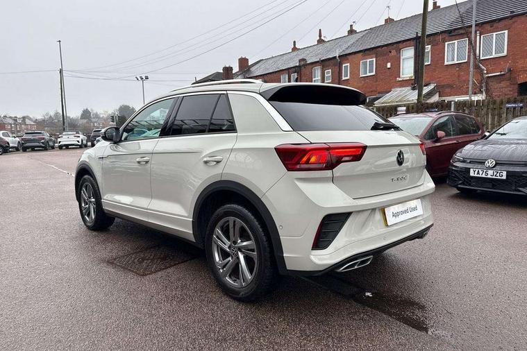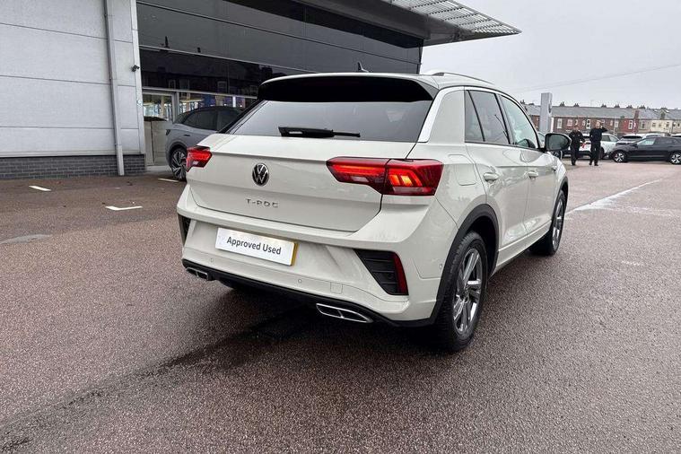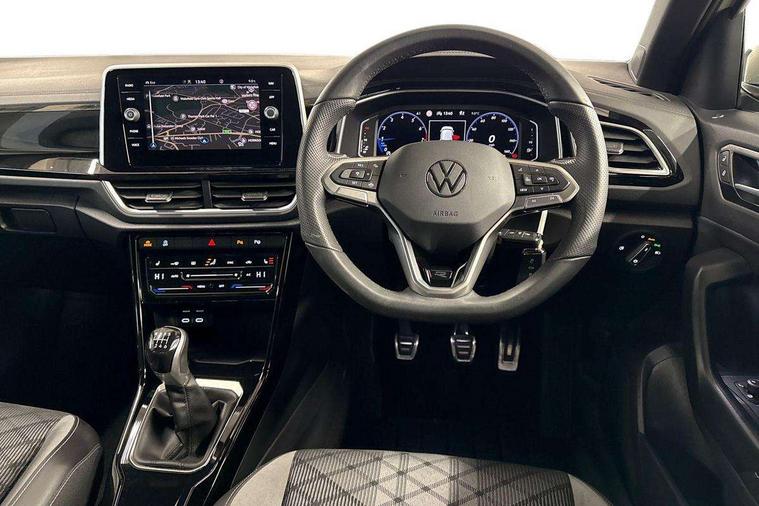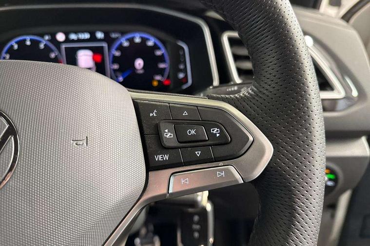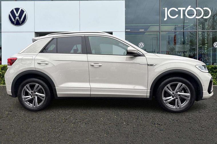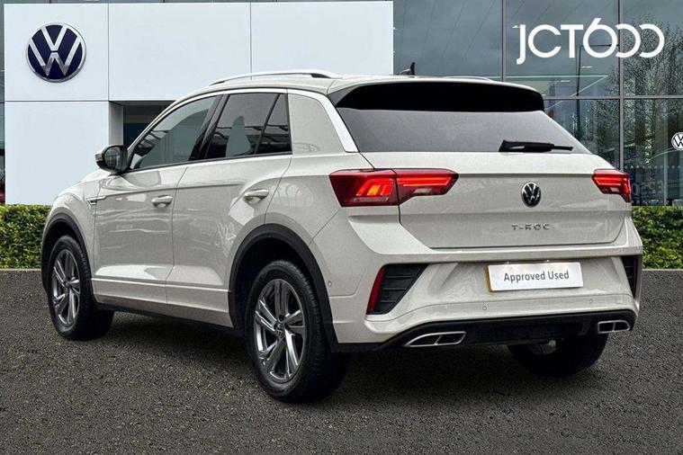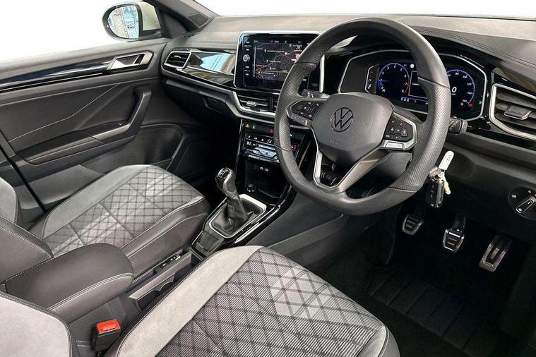 10.25" Digital cockpit pro, Advanced driver attention and drowsiness monitor, Emergency call service, Lane keeping system Lane Assist, Mobile phone interface, Modified key software - reduce switch off time for key status change to Long no motion, Online services, Park assist including front and rear parking sensors, Service interval indicator, Tailgate/trunk lid release from outside, Think blue trainer driver tips and journey analysis, Warning sound and light for front seatbelts unfastened, Wireless app connect, Battery regeneration during braking, Start/stop function with battery regeneration, DAB Digital radio, Diversity antenna for FM reception, Front and rear 6 speakers, Music playback - MP3, WMA and AAC files, Premium USB cable in choice of either Apple or Android smartphone compatibility, SD card slot, Simultaneous pairing of 2 compatible mobile devices, Title and cover art display, We Connect and We Connect Plus functionality, Auto dimming interior rear view mirror, Automatic hazard lights activation under emergency braking, Automatic headlight control with LED separate daytime running lights with coming/leaving home function, Body coloured exterior mirror housings and door handles, Electrically adjustable and heated door mirrors, Extended roof spoiler, Exterior mirrors aspherical on driver side, convex on front passenger side, External USB type C socket and charging sockets, Front windscreen wiper with intermittent wipe and 4 position delay, Heated rear window, LED 3rd brake light, LED rear combination lamps, LED rear number plate lights, Power windows with comfort operation and circuit breaker, Privacy glass for rear side windows and rear window, R-Line design body coloured bumpers, Rain sensor, Rear exhaust tailpipe, Rear fog light on one side and reversing lights on both sides, Rear side wing doors, Rear wash/wipe with intermittent wipe setting, Remote electrically foldable door mirrors, puddle lights and reverse activated passenger's door mirror, 12V power socket in centre console, 3 rear head restraints, 3 seat bench in 2nd row, 4 load lashing points in luggage compartment, Air care climatronic air conditoning system with active combination filter and 2-zone temperature control, Black roof lining, Chrome plated decorative trims, Chrome plated radiator grille inserts, air vent surrounds and light switch surrounds, Door and side trim panel with leatherette insert, Front + rear carpet mats, Front centre armrest, Front cupholders x 2, Front footwell illumination, Front reading light, Front scuff plates with R Line logo, Front seat back storage pockets, Glove compartment door with light, Instrument lighting, white adjustable panel illumination, Interior ambient lighting and surround lighting, Interior light delay, Isofix child seat preparation, Leather gearshift handle, Load-through provision with cup holder when folded down ('Unsplit rear seat bench, split folding backrest, with centre armrest), Luggage compartment lighting, Single front passenger seat, Stainless steel pedals, Storage compartment in left and right luggage area, Storage compartment in rear doors, Storage compartments in driver and front passenger doors, Sunvisors with illuminated vanity mirrors, Variable boot floor, height adjustable and removable, Driver assistance pack without proactive passenger protection - T-Roc, 3 point height adj front seatbelts + pretensioners, 3 point seatbelts in outer rear with ECE label, ABS, Child locks on rear doors, City emergency braking and pedestrian monitoring, Driver and front passenger airbag with front passenger airbag deactivation, Driver and front passenger safety-optimised head restraints, Drivers seatbelt reminder, Electronic parking brake, Electronic Stability Control (ESC) inc EDL (Electronic Differential Lock) and ASR (Traction Control), Front and rear passengers curtain airbag system including front side airbags, Hill start assist, Predictive pedestrian protection, Rear disc brakes, Two tone horn, Tyre pressure loss indicator, Volkswagen roadside assistance, Piano black decorative inserts in dashboard and front door trim panels, Trims for alloy wheels,