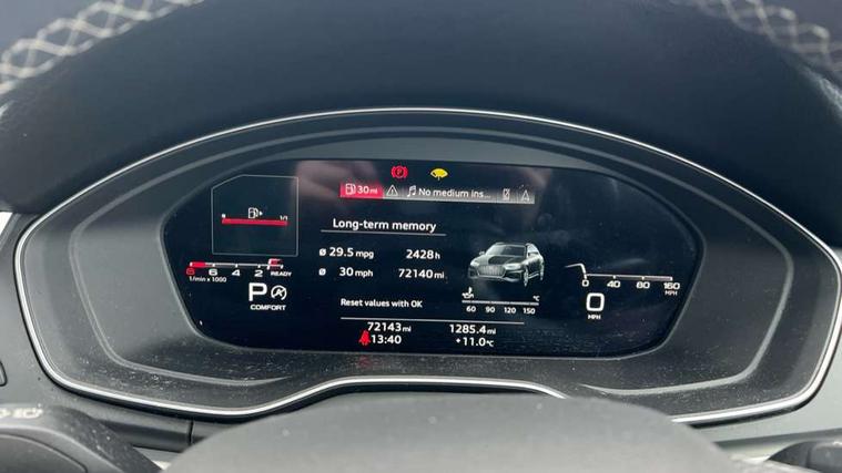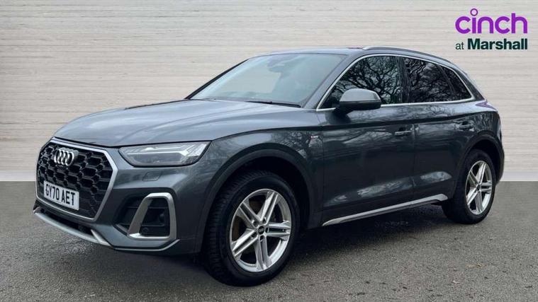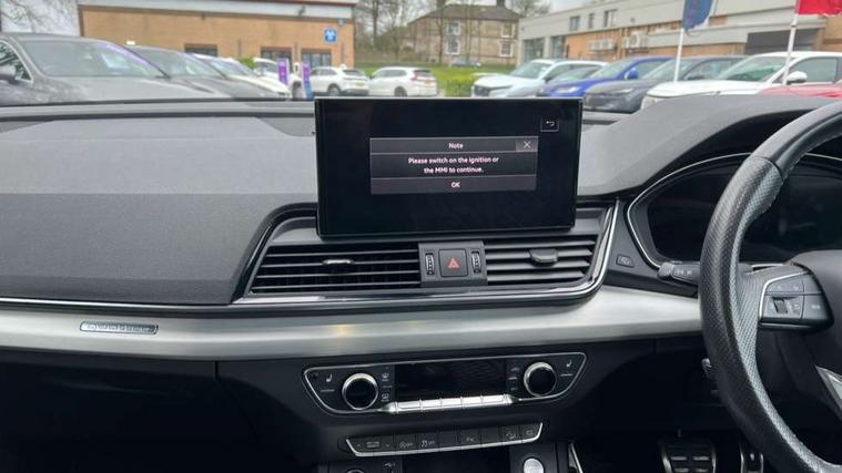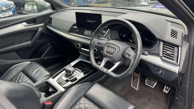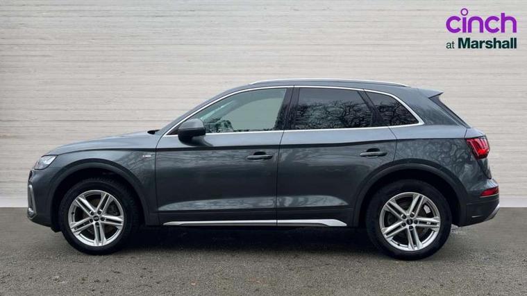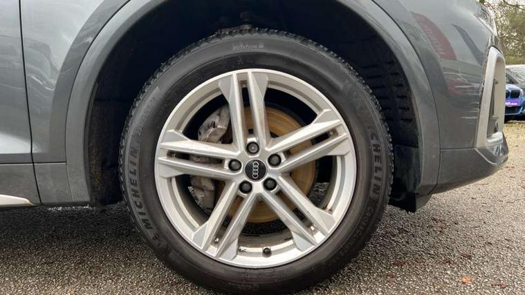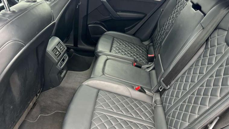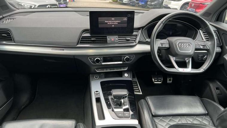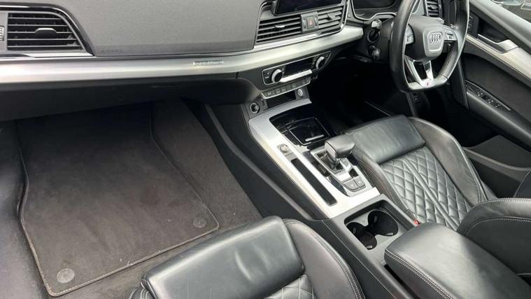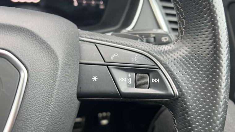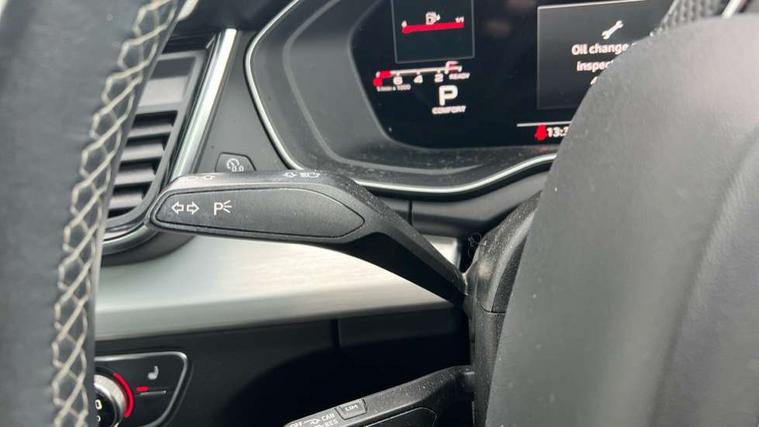 Amazon alexa Integration, Audi connect safety and service (e-call), Audi drive select, Audi virtual cockpit plus with 12.3" screen and three different layout designs, Audi wireless smartphone interface, Automatic start-stop system with coasting functionality and efficiency programme, Electro - mechanical power assisted steering, MMI navigation plus with 10.1" touch screen, Mobile telephone preparation - bluetooth interface, Power tailgate, Service interval indicator, Voice control system with Audi hotword activation "Hey Audi", Quattro on demand, DAB Digital radio, Acoustic windscreen, Air inlets in matt titanium black with blades in matt aluminium silver, Aluminium roof rails, Audi matrix LED headlights with LED rear lights + dynamic front and rear indicators, Auto dimming rear view mirror, Automatic headlight adjustment, Automatic headlights and windscreen wipers, Body colour bumpers, Body colour door mirrors, Body colour rear diffuser with matt aluminium silver surrounds, Body colour underbody protection, Chrome plated exhaust trims, Door sills in Selenite silver, Electric adjustable/heated/folding door mirrors, Front air inlet surrounds in aluminium, Front and rear electric windows, Front radiator grille in honeycomb design, Headlight washers, Rear chrome trim strip below lights, Rear privacy glass and rear side windows, Rear spoiler, Rear wiper, Roof bars, S Line badges on the front wings, S Line front and rear bumpers, S Line side skirts, 2 x USB charging port with aux input socket, 3 rear headrests, 40:20:40 split folding rear seat with rear centre armrest, Black cloth headlining, Contrast stitching on seats, steering wheel and gear lever gaiter, Deluxe 3 zone electronic climate control, Front centre armrest, Front sport seats with S embossed logo, Front/rear floor mats, Gear lever in black leather, Heated front seats, Height adjustable front head restraints, Height/reach adjustable steering column, Illuminated door sill trims with S logo, ISOFIX child seat mounting and top tether, Manual seat adjustment with 4-way electric lumbar support, Removable luggage compartment floor, Stainless steel pedals, Sunvisors with vanity mirrors, Tool kit, Trunk roller cover, High gloss pack - Q5, LED interior light pack - Q5, 3 point seatbelts on all seats, 6 airbags - Driver, front passenger, curtain and side airbags, Electrically operated child locks on rear doors, Electromechanical parking brake, Electronic stabilisation control including ABS, ASR and EDL, Front passenger airbag deactivation, Hill descent control, Hill hold assist, Multi collision brake assist, Pop-up bonnet for pedestrian protection, Pre sense city, Seat belt force limiter, Seatbelt monitoring, Tyre pressure warning, Warning triangle and first aid kit, Anti theft alarm, Anti-theft wheel bolts, Keyless Go access/ignition system, Matt brushed aluminium inlays,