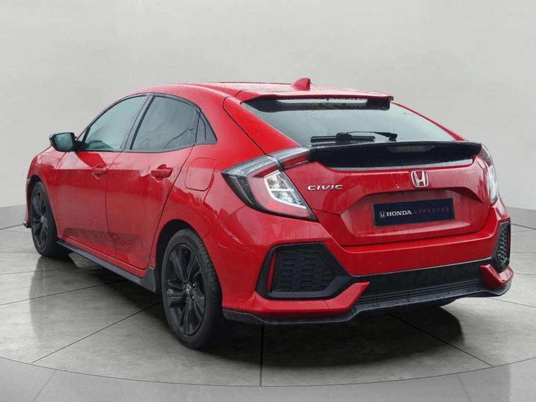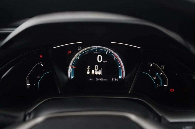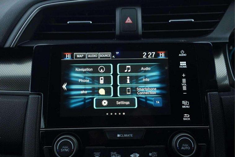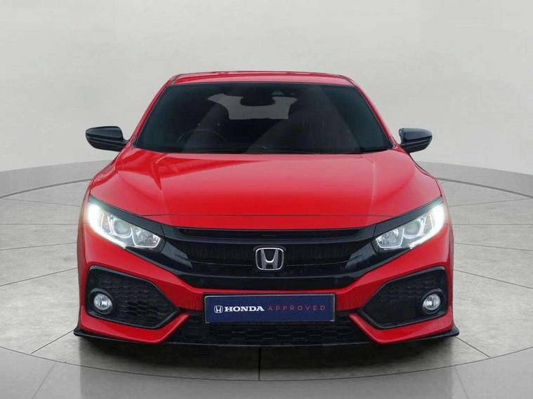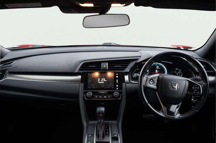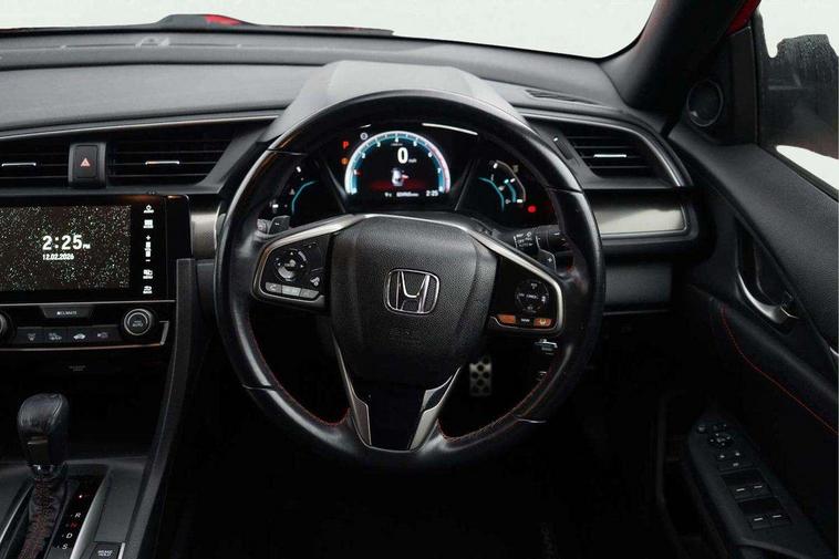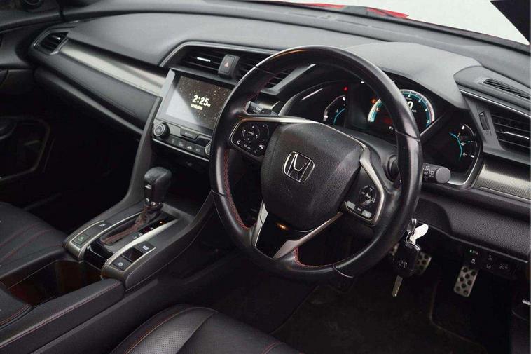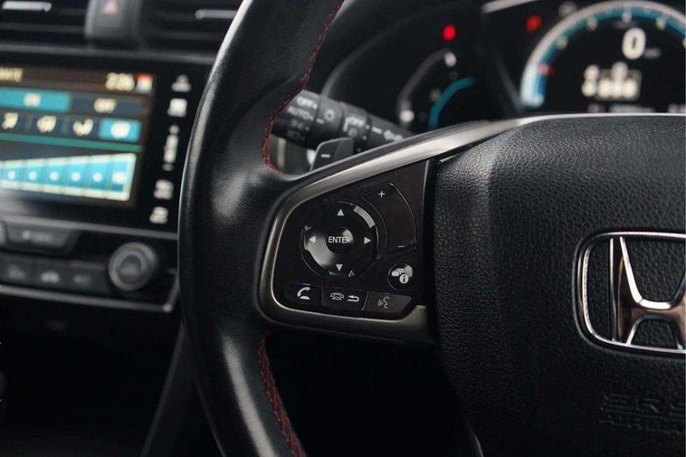 7" touch screen, Adaptive cruise control, Apple car play/Android Auto, Blue dashboard illumination, Bluetooth hands free telephone connection, Colour driver's information system display, Easy fuel capless refuelling system, Economy mode, Electric power steering, Emergency stop signalling system, Forward collision warning, Front and rear parking sensors, Idle stop, Lane departure warning system, Lane keep assist, Rear parking camera, Road departure mitigation, Speed limiter, Traffic sign recognition, Vehicle stability assist, 'Shark fin' mobile antenna, 2x USB and HDMI, 8 speakers, Connect with Garmin sat nav, touch screen, internet radio/MP3/CD, Aha app, internet, Digital Audio Broadcast (DAB) Tuner, Steering wheel mounted audio controls, Automatic coming/leaving home lighting function, Automatic headlights with dusk sensor, Automatic rain sensing wipers, Automatic retractable door mirrors, Black door mirrors with integrated indicators, Black grille, Body colour door handles, Body coloured bumpers, Electric adjustable heated door mirrors, Electric front/rear windows/one touch operation, Exterior sport garnish includes front and side sills, Front fog lights, Front spoiler, Halogen headlights, High beam assist, High mount brake light, LED daytime running lights, Piano black garnish window surround, Rear wiper, Remote control door mirrors, Remote window closing, Side under spoiler, 4 Trunk cargo hooks, Alloy pedals, Ambient lighting, Centre console storage and sliding armrest, Driver seat back pocket, Driver's electric lumbar adjustment, Driver's seat height adjustment, Dual climate control air conditioning system, Electric lumbar adjustment on passenger's seat, Front accessory power socket, Front map lights, Front/rear courtesy lights, Gear shift indicator, Glovebox light, Isofix system on outer rear seats, Leather gear knob, Leather steering wheel with red stitching, Leather upholstery with red stitching, Paddle shift controls, Passenger seat back pocket, Rear accessory power socket, Rear armrest with cupholder, Sunvisors with illuminated vanity mirrors, Three height adjustable rear head restraints, Tilt/telescopic adjustable steering wheel, Tonneau cover, Trunk light, 15" solid rear disc brakes, 15" Vented front disc brakes, 3 Point ELR front seat belts x2, 3 Point ELR rear seat belts x3, ABS+EBD+Brake assist, Anti-whiplash front headrests, Collision mitigation braking system, Deflation detection system, Dual front SRS airbags, Electronic parking brake with auto hold, Front and rear curtain airbags, Front seatbelt pretensioners, Front side airbags, Hill start assist, Low speed safety system, Passenger airbag deactivate switch, Tyre pressure warning, ECU immobiliser, Honda super locks, Remote central locking with 2 remote folding keys, Security alarm, Selectable door unlock, Ultrasonic alarm, 17" Dynamic exclusive black alloy wheels, Tyre repair kit,