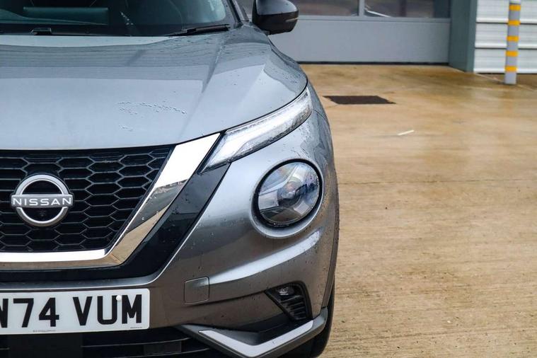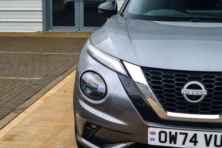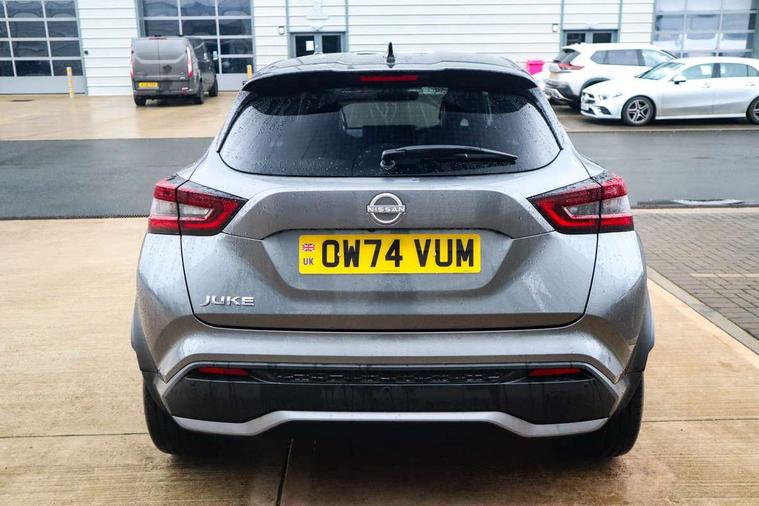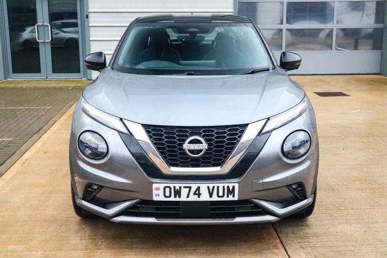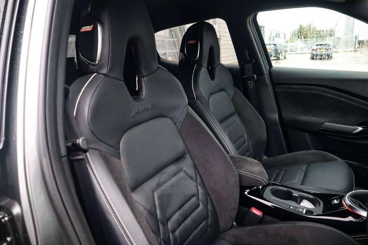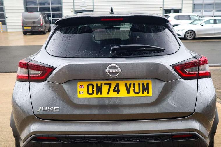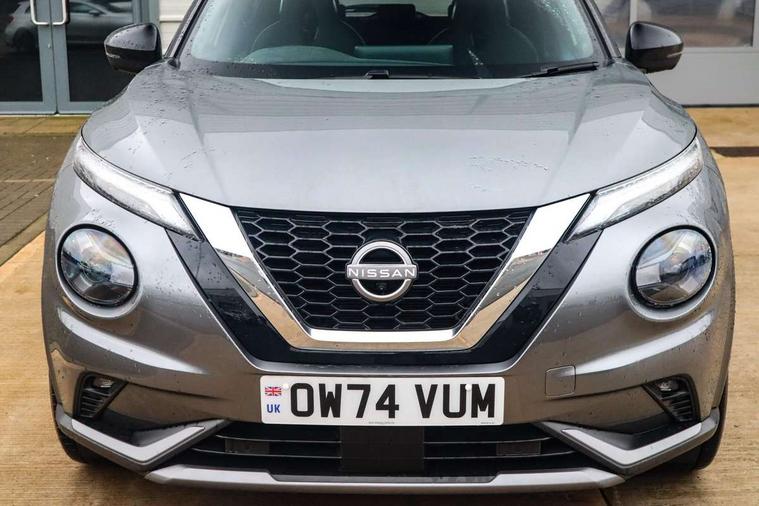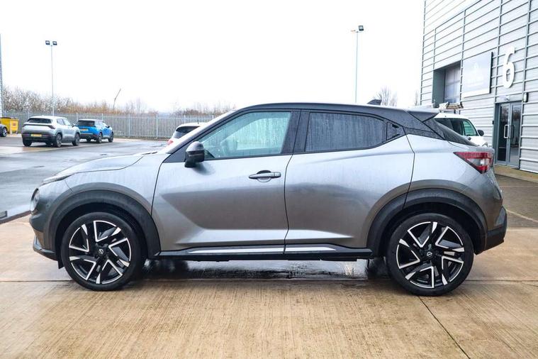 12.3" full colour TFT screen combimeter, Drive modes select (Eco, normal and sport), Emergency and breakdown call, Front parking sensor, Idle start/stop system, Intelligent driver alert system, Intelligent lane intervention, Lane departure warning system, Nissan connect 12.3" touch screen entertainment system, Nissan connect nav with TomTom traffic, Nissan connect services, Outside temperature sensor, Power Steering, Rear parking sensor, Stop/start button, Traffic sign recognition, Trip computer, Voice recognition, WiFi connectivity, Wireless Apple CarPlay and Google Android auto, Wireless Smartphone charger, 10 Bose speakers 6 speakers and 2 headrest speakers for driver/passenger seats, 2 X Rear console USB port, Bluetooth system, USB, Aux-in and 12V socket, Bose personal sound stage control, DAB Digital radio, Auto dimming frameless rear view mirror, Automatic hazard signal with emergency stop signal, Body colour door handles, Electrically adjustable door mirrors with integrated indicators, Follow me home headlights, Front and rear electric window with one touch driver window, Heated and auto folding door mirrors, High beam assist, LED 3rd brake light, LED daytime running lights, LED front fog lights, LED headlamps, LED rear fog lamp, LED rear lamps, One touch passenger window, Rain sensor windscreen wipers, Rear privacy glass, Rear side wing doors, Rear wiper, Roof spoiler, Shark fin roof antenna in solid Black, Three blink turn signal, 3 height adjustable rear headrests, 3 seat bench in 2nd row, 60/40 split folding rear seat, Automatic climate control, Card holder on driver sunvisor, Door ambient lighting, Driver seat back pocket, Driver side rear coat hanger, Driver/passenger sunvisors and vanity mirrors, Front and rear cabin lights, Front armrest, Front door pockets with bottle holders, Front head restraints, Front/rear passenger grab handles, Gear console ambient circle lighting, Height adjustable driver's seat, Internal chrome door handles, Leather gearshift knob, Luggage board, Luggage space lighting, Monoform sporty seats, Multifunction steering wheel, Passenger seat back pocket, Rear door bottle holders, Single front passenger seat, Smooth synthetic leather steering wheel, Synthetic leather kneepad, Telescopic steering wheel adjustment, Two cupholders in front centre console, Two rear isofix child seat anchorage points with top tether, Welcome light and console tray ambient lighting, Advanced safety shield pack - Juke Manual, Heat pack with height adjustable passenger seats - Juke, Interior personalisation pack - Juke, Satin grey exterior personalisation pack - Juke, ABS with EBD and brake assist, Active ride control, Active Trace Control, Driver and passenger airbags, Driver and passenger side airbags, Electric handbrake with auto hold function, Electronic Stability Programme (ESP), Front and rear curtain airbags, Height adjustable seatbelts, Hill start assist, Intelligent emergency braking with pedestrian and cyclist recognition, Rear door child safety locks, Seatbelt reminder for driver/front passenger and rear seats, Three 3 point rear seatbelts, Traction control, Tyre pressure monitoring system, VDC Dynamic Vehicle Control, Alarm, Immobiliser, Intelligent key and start push button with walk away lock and approach unlock functions, Remote central locking, 19" Alloy wheels with deep 3D effect, Tyre puncture repair kit,
