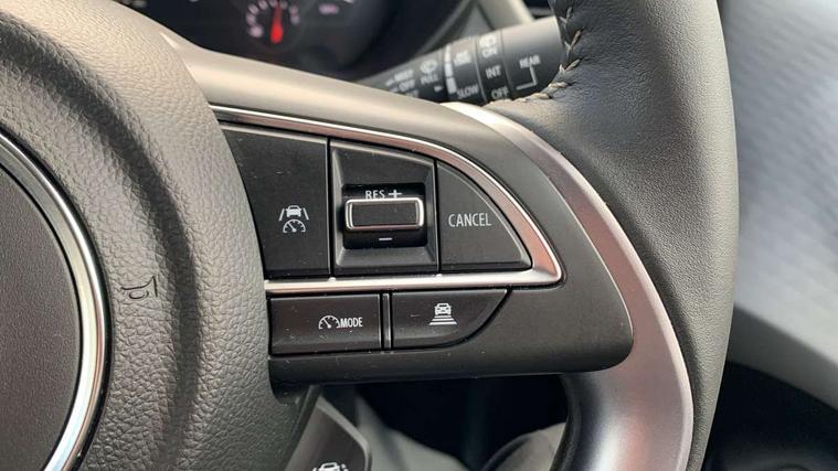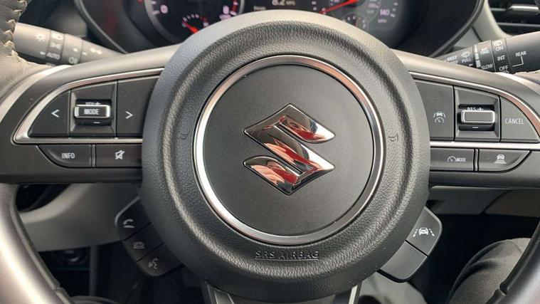 Adaptive cruise control, Automatic start/stop system, Blind spot monitoring, Colour LCD information display, Digital clock, Driver monitoring system, eCall, Fuel consumption display (average/instantaneous) and range display, Intelligent speed control support, Lane departure prevention, Lane departure warning system, Lane keeping assist (LKA), Low fuel level warning light, Navigation system, Outside temperature display, PAS, Rear cross traffic alert, Rear parking camera, Rear parking sensors, Remote fuel cap release, Smartphone integration with Apple CarPlay and Android auto, Suzuki connect, Tailgate, Traffic sign recognition, Weaving alert, 4 speakers + 2 tweeters, 9-inch infotainment display, Auxiliary input socket, Bluetooth audio streaming, DAB Digital radio, Steering wheel audio controls, USB Type A and C, 'Guide me home' headlamps, 1 speed with intermittent rear wiper + washer, 2 speeds front wiper with intermittent + washer, Automatic headlights, Black coloured A & B pillars, Black Upper and lower front grille, Body colour door mirrors and handles, C pillar trim moulding, Door mirrors with built-in turn signal lamp, Electric door mirrors, Electric folding door mirrors, Electric front windows, Electric rear windows, Green tinted glass, Heated door mirrors, High beam assist, LED daytime running lights, LED High mounted stop light, LED number plate light, LED position lamps, LED projector headlamps, LED rear combination lamp, Manual headlamp level control, Rain sensor, Rear fog lights, Rear privacy glass, Rear side wing doors, Rear spoiler, Side spoiler, 1 cup holder in rear, 12V Accessory socket in front console, 2 cup holders in front, 2 Isofix seat anchors, 3 bench rear seats in 2nd row, 3 rear head restraints, 3 spoke leather covered steering wheel, 60/40 split rear seats, Accessory socket, Automatic air conditioning, Centre console storage, Centre lower box, Child seat tether anchorages x 2, Chrome handbrake release button, Chrome interior door handles, Cloth upholstery, Door pockets with bottle holder, Driver/passenger sunvisors with ticket holders + vanity mirrors, Front cabin lights, Front headrests, Front map light, Front passenger side assist grip, Glovebox, Heated front seats, Heater, Height adjustable driver's seat, Luggage area lamp, Painted interior door trim ornament, Parcel shelf, Passenger seat back pocket, Pollen filter, Rear assist grips x2, Rear heater duct, Single front passenger seat, Tilt adjustable steering wheel, Tilt/telescopic adjustable steering wheel, 3 point ELR seatbelts for centre seat, 3 point ELR seatbelts front and rear, ABS+EBD+Brake assist, Curtain airbags, Driver airbag, Dual sensor brake support, ESP + traction control, Front and rear seatbelt reminder, Front passenger airbag, Front passenger airbag deactivation, Front seat seatbelts shoulder height adjuster, Front seatbelt pretensioners with force limiters, Hill hold control, Rear child proof door locks, Rear seatbelts with pre-tensioners and load limiters, Side airbags with incorporated into front seats, Tyre pressure indicator, Deadlocks, Freewheeling key cylinders, Immobiliser, Keyless entry and start, Light - on and Key in reminder, Locking wheel nuts, Remote central locking, Painted instrument panel ornament, 16" Polished alloy wheels, Emergency flat tyre repair kit,