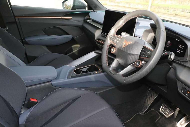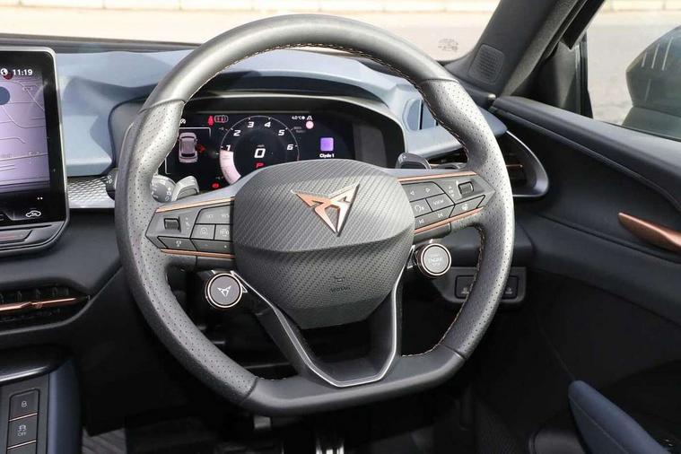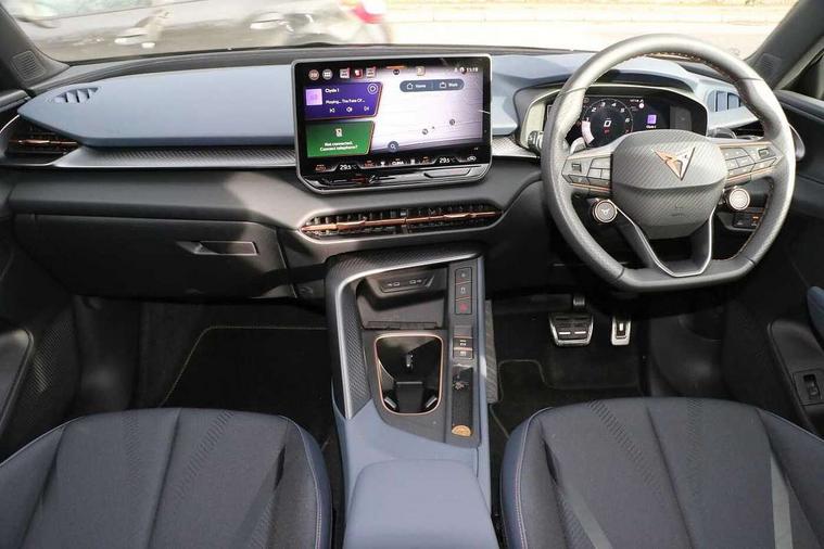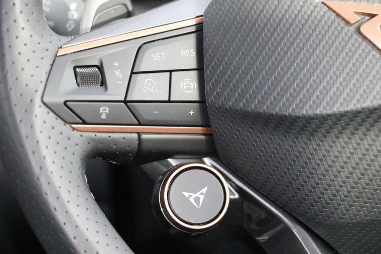 10.25" digital cockpit, Adaptive cruise control with follow-to-stop and speed limiter, Advanced driver alert system, Driving profile selection and conventional shock absorber, Dynamic road sign display, E-call, Electric tailgate with virtual pedal, Emergency steering support with turn assist, Front and rear parking sensors, Front assist (Forward collision warning with automatic braking) with multifunction camera and front cross traffic assist, Lane assist, Media system with Nav - 12.9" touch display, voice control, full link phone (wired/wireless), DAB and Steering wheel mounted controls, Rear view camera, Speed sensitive power steering, Start/stop system with regenerative braking, Wireless phone charger, 8+1 Speakers, Auto dimming rear view mirror, Black roof rails, CUPRA 3D rear lights with ceremony & swiping indicator and illuminated logo, Dark tinted rear windows, Daytime running lights with automatic headlight control and Coming and Leaving home function, Dynamic headlight range control, Electric front/rear windows, Electrically adjustable, heated and folding door mirrors, Front fog lamps with cornering function, Heat reflecting windscreen, LED headlamps with signature "CUPRA LED", Rain sensing wipers, Rear fog light on one side, back up light on both sides, Rear side wing doors, Rear wash/wipe, Third brake light, Welcome lights (within exterior mirror housing), 3 seat bench in 2nd row, Black roof lining, Cloth upholstery, Cupra sports pedals, Driver and passenger seat with manual height and lumbar adjustment, Four x USB Type C ports (2 in front and 2 in rear), Front and rear head restraints, Front and rear reading lights X 4, Front centre armrest, Heated leather wrapped multi function sports steering wheel with tiptronic, Illuminated interior front door sills, Interior ambient lighting, Isofix, Operating voltage 12V, Single front passenger seat, Sunvisors with illuminated mirror, Three zone climate control with control panel in rear, Unsplit rear seat bench, split folding backrest, with centre armrest, Variable luggage/load compartment floor, 3 point seatbelts on all rear seats, Brake control system - ESC and brake booster, Child proof door locks, Driver and front passenger airbags, Electronic parking brake, Front and rear disc brakes, Front interaction airbag, Front passenger airbag deactivation switch, Front side airbags with curtain airbags, Tyre pressure monitoring system, Visual and acoustic seat belt reminder, electric contact in front and rear, Anti theft alarm, Keyless locking and starting system with keyless access, Locking wheel bolts, Black decorative trims, Chrome interior detailing, 18" Atomic alloy wheels, Tool kit,