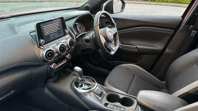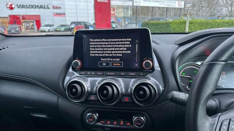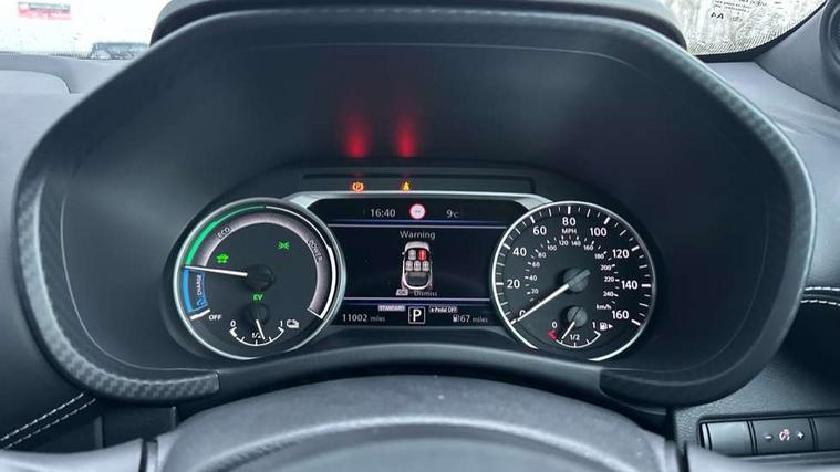7" full colour TFT screen combimeter, Apple CarPlay and Google Android auto, Drive modes select (Eco, normal and sport), e-Pedal step, Emergency and breakdown call, EV mode selector, Front parking sensor, Intelligent lane intervention, Lane departure warning system, Nissan connect 8" touch screen entertainment system, Nissan connect nav with TomTom traffic, Nissan connect services and Wifi connection, Outside temperature sensor, Power Steering, Rear parking sensor, Traffic sign recognition, Trip computer, Voice recognition, Gasoline particulate filter, 6 speakers, Bluetooth system, USB, Aux-in and 12V socket, DAB Digital radio, Rear console USB port, Auto dimming interior rear view mirror, Auto headlights, Automatic hazard signal with emergency stop signal, Body colour bumpers, Body colour door handles, Electrically adjustable door mirrors with integrated indicators, Follow me home headlights, Front and rear electric window with one touch driver window, Heated and auto folding door mirrors, High beam assist, LED daytime running lights, LED headlamps, LED rear fog lamp, LED rear lamps, Rain sensor windscreen wipers, Rear privacy glass, Rear side wing doors, Rear wiper, Shark fin roof antenna in Pearl Black, Three blink turn signal, 3 height adjustable rear headrests, 3 seat bench in 2nd row, 60/40 split folding rear seat, Automatic climate control, Card holder on driver sunvisor, Cloth upholstery with black and metallic grey syntech leather inserts, Driver and passenger sliding and reclining seats, Driver side rear coat hanger, Driver/passenger sunvisors and vanity mirrors, Front and rear cabin lights, Front armrest, Front door pockets with bottle holders, Front head restraints, Front/rear passenger grab handles, Grey synthetic leather kneepad, Height adjustable driver's seat, Internal chrome door handles, Leather gearshift knob, Leather steering wheel, Luggage board, Luggage space lighting, Monoform sporty seats, Multifunction steering wheel, Rear door bottle holders, Single front passenger seat, Steering wheel mounted gearshift paddles, Telescopic steering wheel adjustment, Two cupholders in front centre console, Two rear isofix child seat anchorage points with top tether, Welcome light and console tray ambient lighting, ABS with EBD and brake assist, Active ride control, Active Trace Control, Driver and passenger airbags, Driver and passenger side airbags, Electric handbrake with auto hold function, Electronic Stability Programme (ESP), Front and rear curtain airbags, Height adjustable seatbelts, Hill start assist, Intelligent emergency braking with pedestrian and cyclist recognition, Rear door child safety locks, Seatbelt reminder for driver/front passenger and rear seats, Single tone horn, Three 3 point rear seatbelts, Traction control, Tyre pressure monitoring system, VDC Dynamic Vehicle Control, Ventilated rear brake discs, Alarm, Immobiliser, Intelligent key and start push button with walk away lock and approach unlock functions, Remote central locking,