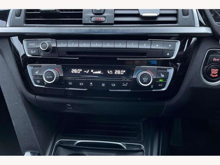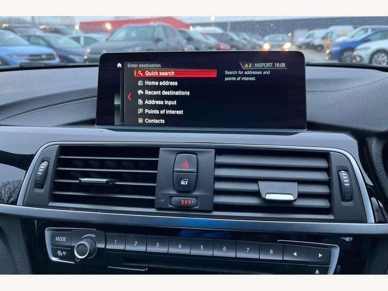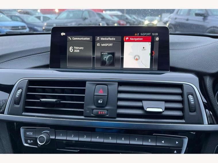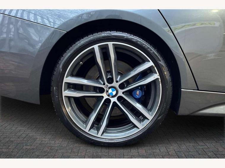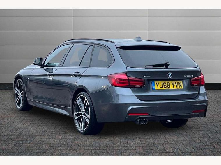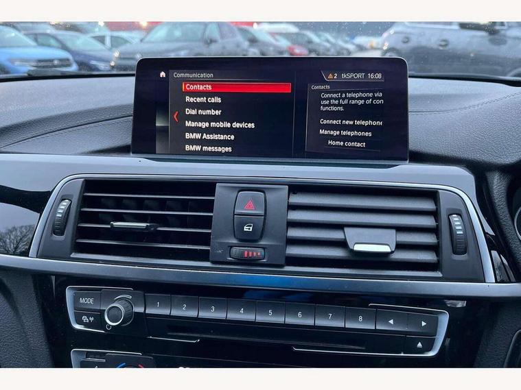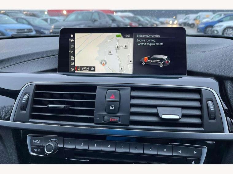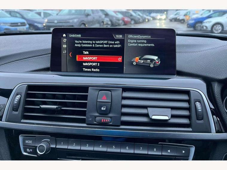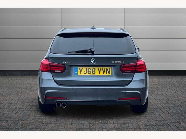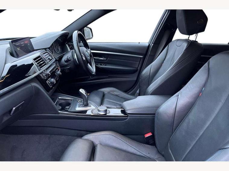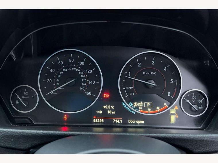 Automatic start/stop system, Automatic tailgate operation, Average speed gauge, BMW iDrive controller on centre console, BMW Online services, BMW remote services, BMW Teleservices, Brake force display, Brake pad wear indicator in front and rear, Check Control warning system for monitoring of lights and door/luggage compartment open warning, Controller and Control Display+6.5" monitor, Digital clock, Door/boot open warning light, Instrument cluster with speedometer with mph readout, tachometer, fuel gauge and oil temperature gauge, Lights on warning, M Sport instrument cluster, Odometer, Oil sensor for level and grade, On board computer, On board diagnostics, Operation warning of all exterior lights, Optimum shift indicator, Outside temperature display, Pesonal profile, Real time traffic information, Service interval indicator, Trip computer, Battery cut-out switch, Diesel particulate filter, Drive Performance Control, Electronic differential lock, Incorrect fuelling protection, Multi-link rear suspension, Sport automatic transmission with steering-wheel mounted gearshift paddles and launch control, BMW professional radio/CD/MP3, CD player, DAB Digital radio, Harman/Kardon loud speaker system, 2 speed adjustable intermittent wipers with wash/wipe function, Active air flap radiator grille, Auto dimming rear view mirror, Automatic headlight beam throw control, Body colour bumpers, Body colour door handles, Body colour roof mouldings, Clear indicator lenses, Dark chrome exhaust tailpipe, Dark headlamp surround, Darkened rear light clusters, Direction indicator, side repeaters, integrated in exterior mirrors, Door sill finisher with M designation, Dynamic brake lights, Electric front and rear windows with one touch/convenient open/close function, Front and rear bumper system with replaceable deformation elements, Green tinted heat insulating glass, Heated rear window with automatic switch off, Heated windscreen washer jets, High beam assistant, High gloss black air inlets, High gloss black finish B pillar, High gloss black rear bumper insert, High gloss shadow line, High level third brake light, Independent opening for tailgate window, LED fog lights, LED rear lights, LED welcome home lights, M aerodynamic body styling, Matt black exterior trim, Rain sensor + automatic driving lights control, Rear wash/wipe, Shark fin roof aerial, Sun protection glass, Visible VIN plate, 12V sockets in front centre console and passenger footwell, 3 rear seat head restraints, 4 foldable grab handles - rear with clothes hook, 4 lashing points on luggage floor, 40:20:40 split folding rear bench seat, Anthracite headlining, Automatic interior light soft on/soft off system, Dual zone automatic air conditioning, Folding front centre armrest + storage, Front and rear door armrests, Front and rear velour floor mats, Front door storage bins with bottle holder, Front sports seats with electric side bolster adjustment, Glovebox light, Glovebox opener with chrome spider, Height adjustable front headrests, Indirect front interior illumination - soft-light function, Leather gear knob, Leather gear selector lever handle, Leather handbrake lever, Luggage compartment lighting, Reach + rake adjustable steering column, Rear centre armrest with 2 cupholders, Rear child seat isofix attachment with passenger airbag deactivation, Retractable luggage cover, Separation net, Storage compartment in rear centre console, front and rear door trims and under luggage compartment, Sunvisors with illuminated vanity mirrors and ticket pocket, Through load system, Toolkit located in luggage compartment, Two front cup holders with a sliding lid, Extended lighting package - 3 Series, Extended storage pack - 3 Series Touring/Saloon, High gloss shadow line pack - 3 Series, Interior lights pack - 3 Series Touring, Luggage compartment storage pack - 3 Series Touring, 3 point seatbelts on all seats (2 front, 3 rear), front pyrotechnic belt tensioners and belt force limiters, rear coded belt buckles, ABS, Automatic Stability Control (ASC), BMW emergency call, Brake drying, Brake energy regeneration, Braking pre-tensioning, Cornering brake control (CBC), Crash sensor, Driver and front passenger front and side airbags with passenger deactivation and ITS front and rear head airbags, DSC+, Dynamic brake control, Dynamic Traction Control - DTC, Hill start assist, M Sport braking system, Rear child proof door locks, Seatbelt security check for driver seat, Side impact protection, Twin horns, Tyre pressure monitor, Ventilated front and rear disc brakes, Warning triangle and first aid kit, Alarm system (Thatcham 1) with remote control and electronic engine immobiliser, Automatic drive away locking facility, Central locking switch for all doors, fuel filler cap and luggage compartment, Remote control including integrated key with blue insert, Start/stop button with Comfort Go keyless engine start and auto Start/stop deactivation button, Air-conditioning and radio control panel with Chrome highlight, 19" M double spoke alloy wheels style in bicolour orbit grey - style 704M, Low rolling resistance tyres, Run-flat tyres,