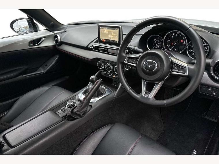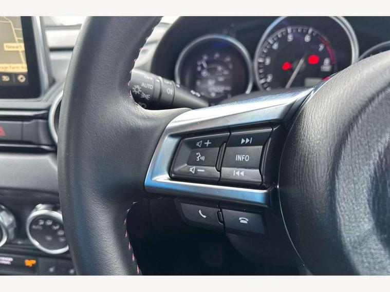 7" touchscreen with multimedia commander, Cruise control + speed limiter, Engine start/stop button, Integrated bluetooth with steering wheel mounted controls, Lane departure warning system, PAS, Rear parking sensor, Remote boot release, Satellite navigation system, Trip computer, Water temperature gauge, Limited slip differential, Sports suspension, 9 speakers, Auxiliary input socket, Bose Premium Audio system, DAB Digital radio, MP3 compatible radio/single CD player, USB/iPod connection, Adaptive front lighting system, Auto dimming rear view mirror, Automatic headlamp levelling, Body colour bumpers, Body coloured door mirrors, Coming/leaving home lighting function, Dual exhaust pipes, Dusk sensitive headlamps, Electric front windows/one touch facility, Electrically heated door mirrors, LED daytime running lights, LED Headlights, Premium cloth soft top with integrated heated glass window and soft top cover, Rain sensing front wipers, 12V socket, Body coloured inner door trims, Centre console storage box, Climate control air conditioning, Cupholders, Front centre armrest, Front head restraints, Heated front seats, Height adjustable front seats, ISOFIX front passenger seat child seat compliance, Leather gear knob, Leather handbrake lever, Leather steering wheel, Lockable rear storage box, Sports seats, Tilt/slide reclining front seats, Windblocker, 3 point ELR front seatbelts with pretensioners, ABS+Electronic Brake force Distribution, DSTC-Dynamic Stability and Traction Control, Dual front airbags, Fasten seatbelt reminder, Hill hold assist, Manual passenger airbag deactivation function, Side airbags, Tyre pressure monitor, Alarm with interior movement sensor, Immobiliser, Remote central door locking, Smart keyless entry, Superlocking, Black vinyl leather dashboard panel, 17" Bright alloy wheels, Tyre puncture repair kit,