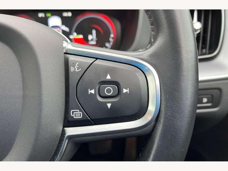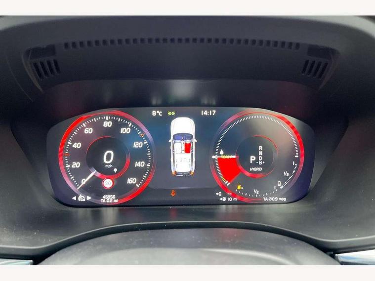 12.3" Active TFT crystal driver's instrument display, 9" Touch screen, Adjustable steering wheel force, Bluetooth handsfree system, Drive mode selector, Driver alert control with lane keeping aid, Oncoming Lane Mitigation, Sensus navigation with European mapping and traffic information, Service interval indicator, Speed limiter, Speed sensitive steering, Trip computer, Voice control system, Volvo on call, 8 speed automatic transmission with start/stop + manual change functions, All wheel drive system, Electric rear axle drive, Recharging port located in nearside front wing, DAB Digital radio, Steering wheel remote infotainment controls, Adaptive brake lights with high level LED brake lights, Auto dimming interior + exterior mirrors, Automatic headlight levelling system, Body colour bumpers, Chrome deco lower front bumper, Chrome lower side moulding trim with Recharge logo, Chrome window surround, Colour coordinated auto folding and heated power door mirrors, Dual integrated exhaust pipes, Electric front+rear windows, High gloss black grille with chrome inserts, Home safe and approach lighting, Illuminated side steps, Integrated silver roof rails, LED Headlights + Active high beam incorporating daytime running lights, Power glass tilt and slide panoramic sunroof with sun curtain, Rain sensor with automatic windscreen wiper activation, Rear wiper, Roof antenna, Roof spoiler, Tinted windscreen, Visible VIN plate, 12V socket in front tunnel console and cargo compartment, 2 zone electronic climate control with Clean zone air quality system and pollen filter, 3 spoke leather steering wheel with chrome trim, Auxiliary fuel fired heater with pre conditioning functions, B Pillar ventilation, Bright metal luggage threshold, Centre armrest storage illumination, Centre console cupholders and storage, Charge cable bag, Floor mats, Front footwell illumination, Front reading lights, Head restraints for all seats, Heated front seats, Height/reach adjustable steering column, Illuminated glovebox, Illuminated luggage compartment, Illuminated vanity mirrors + ticket holder, Leather upholstery, Load cover, Load protection net, Power height adjustable passenger seat with lumbar support, Rear armrest / integral cup holders / storage tray, Rear seat concealed storage, Recharge aluminium tread plates, Theatre lights, Underfloor stowage compartment, Versatile split folding rear seat - 60/40, 5 three point seatbelts, City safety with steering support with Pedestrian + cyclist + large animal detection + front collision warning with full auto brake, Drivers knee airbag, Dual stage driver/passenger airbags, Electronic parking brake with auto hold, First aid kit, Hill descent control, Hill start assist, IC (Inflatable Curtains) - Full Length, Passenger airbag cut-off device, Road sign information display, Run off Road Mitigation, Run off Road Protection, Seatbelt reminder and pretensioners, SIPS (Side Impact Protection System), SIPS airbags, Slippery road and hazard light alert, Stability and Traction Control with Spin control, Engine Drag Control and Corner Traction Control, Tyre pressure monitoring system, Vehicle deceleration control with Anti-lock Brake System, Electronic Brake Distribution and Emergency Brake Assist, Warning triangle, WHIPS whiplash protection system - front, Anti-theft alarm including immobiliser/volume sensor + level sensor, Care key with user defined top speed, Key integrated remote control central locking + fuel flap with deadlocking system and auto open/close power windows, Locking wheel nuts, Private locking for tailgate, Iron ore inlays, Tyre sealant kit + 12v compressor,