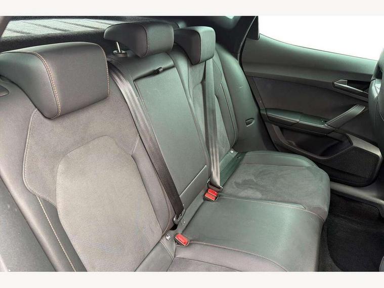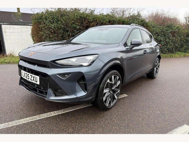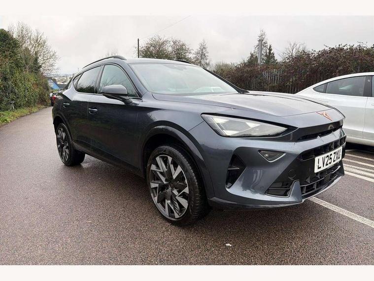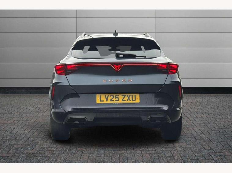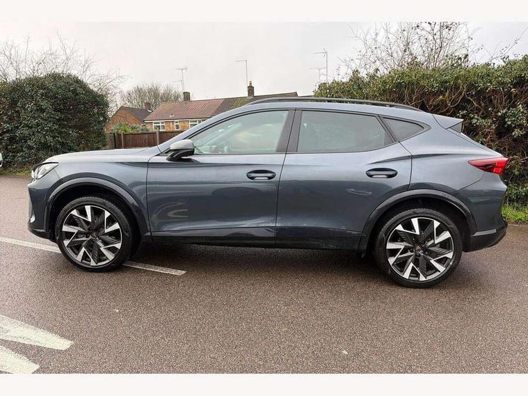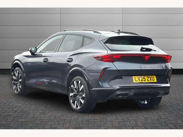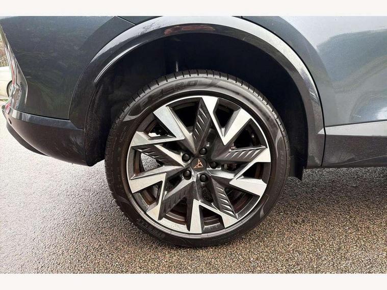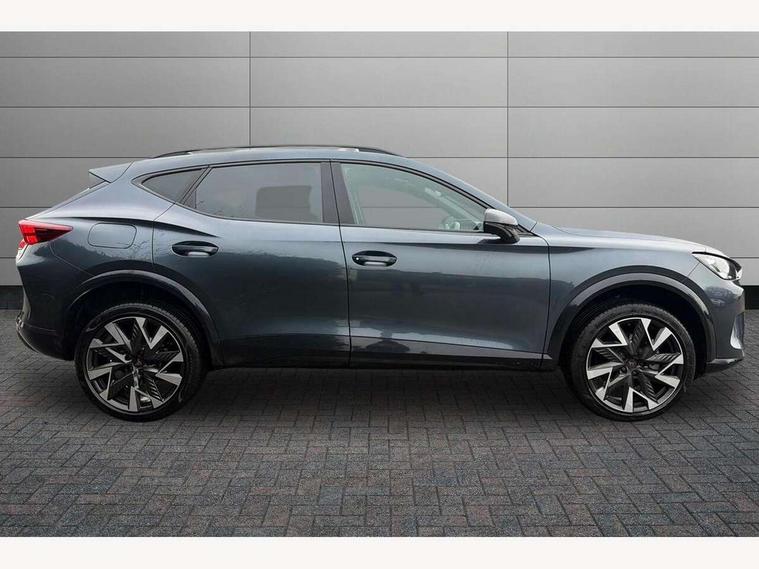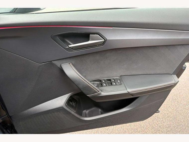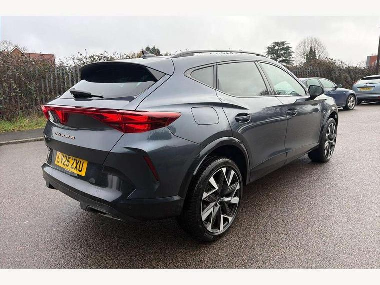 10.25" digital cockpit and configurable dashboard, Adaptive cruise control with follow-to-stop and speed limiter, Advanced driver alert system, Driving profile selection, Dynamic road sign display, Emergency steering support with turn assist, Forward collision warning with automatic braking, Front and rear parking sensors, Full link phone integration, Lane assist, Progressive steering, Rear view camera, RPM, trip computer, outside temp gauge, instrument light brightness, low fuel warning light, lights on reminder, gearshift indicator, Service interval indicator, Start/stop system with regenerative braking, Virtual pedal and electric tailgate, Voice control system, Wired Android Auto, Wireless apple carplay, Wireless phone charger, CUPRA sport suspension, Electronic locking differential and dynamic traction support, 2 front and 2 rear USB type C sockets, Media system with navigation, 12.9" touchscreen display, voice control, DAB, steering wheel mounted controls, Auto dimming rear view mirror, Body colour door handles, Body coloured bumpers, Dark grey wing mirror, Daytime running light with automatic headlight control and coming home feature, Door panel ambient lighting, Dynamic headlight range control, Electric front/rear windows, Electrically adjustable heated and folding door mirrors with memory function, Gloss black roof rails and window surrounds, High beam assist, LED 3rd brake light, LED front fog lamps with cornering function, LED Headlights, LED Taillights with dynamic indicator, Rain sensing wipers, Rear diffuser with black simulated exhaust pipes, Rear fog lights, Rear side wing doors, Rear wash/wipe, Tinted rear windows, Welcome lights (within exterior mirror housing), 12V socket, 2 front and 2 rear reading lights, 3 seat bench in 2nd row, 60/40 split rear bench seat with armrest and mechanical seat release, Black headlining, Black interior roof lining, Cupra sports pedals, Dust/pollen filter, Electrically adjustable driver's seat with memory and lumbar support, Front and rear head restraints, Front centre armrest, Heated front seats, Heated supersports multifunction leather steering wheel with satellite buttons and gear shift paddles, Height/reach adjust steering wheel, Illuminated aluminium doorsteps, Illuminated interior front door sills, Illuminated sunvisor with mirror, Isofix, Leather dashboard, door insert and side trim panel, LED smart wraparound lighting, PVC/Dinamica microfiber upholstery + bucket seats, Satellite steering wheel, Single front passenger seat, Storage pockets on rear of front seats, Three zone climate control with control panel in rear, Variable luggage/load compartment floor, 3 point seatbelts on all rear seats, ABS, Brake control system - ESC and brake booster, Child proof door locks, Driver and front passenger airbags with front passenger airbag de-activation, Electronic parking brake, Front and rear disc brakes, Front side curtain airbags, Hill hold control, Public e-call, Seat belt reminder for front and rear seats, Tyre pressure monitoring system, Anti theft alarm system, KESSY Advanced - Keyless start, keyless entry with SAFELOCK, Locking wheel bolts, Copper and aluminium interior detailing, 19" Sandstorm machined sport black and silver alloy wheels,