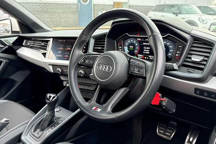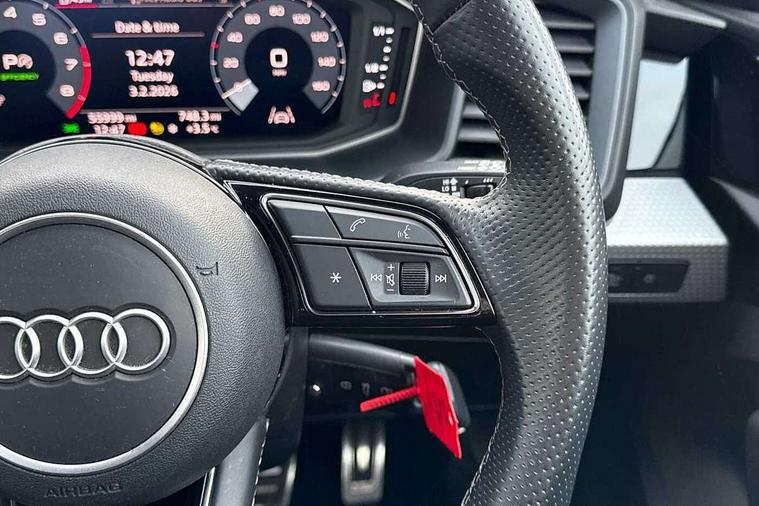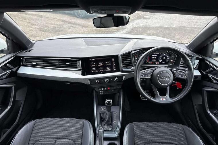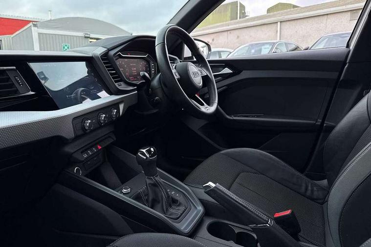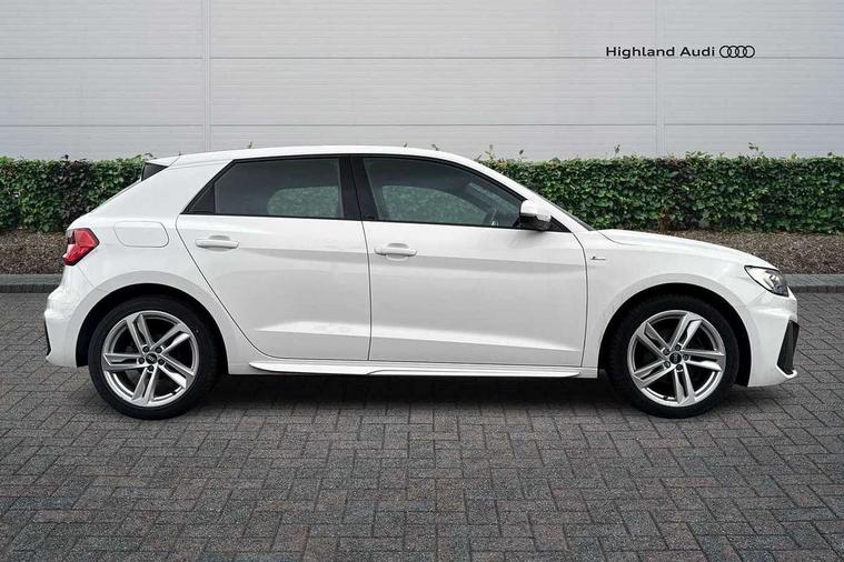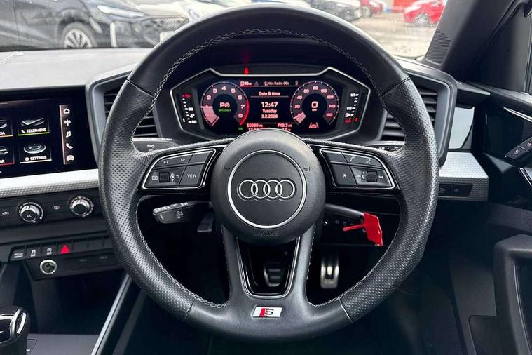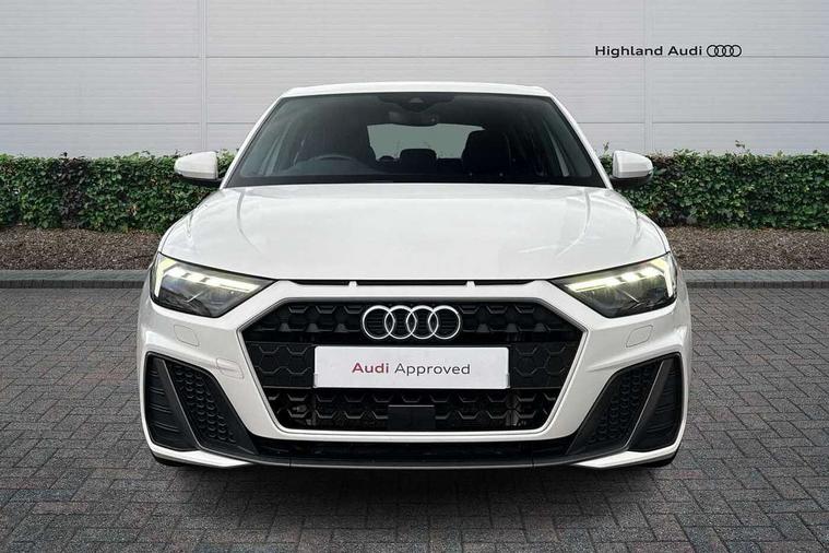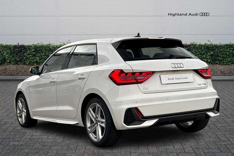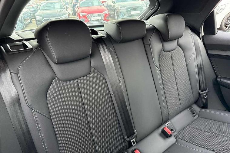 10.25" Digital instrument cluster display classis style instrument dials + speed, odometer, time, outside temperature, telephone menu + fuel level warning, Audi connect safety emergency and service including E-call, Audi drive select - power steering assistance + engine + gear shift 3 preset modes (auto, dynamic, efficiency and an Individual mode), Audi smartphone interface with connect compatible smartphone via USB directly MMI display + Nav, music, third party apps controlled via MMI controller, Automatic start/stop system, Bluetooth interface, Cruise control, Driver's information system, Electromechanical power steering, Lane departure warning system, Service interval indicator, Speed limiter, Voice control system, Washer fluid level indicator, Sports suspension, 1 x SDXC card reader, 2 x USB type C connection points, DAB Digital radio, MMI radio plus with 8.8" colour MMI display screen and MMI touch, Auto dimming rear view mirror, Body coloured door mirrors, Door sills with aluminium inlays and S Line logo, Electric front and rear windows, Electrically adjustable, heated, folding door mirrors with integrated LED side indicator, Front side air inlets in grained matt black and C frame in titanium black, Heat insulating glass windscreen and side windows, Heated rear windscreen, LED headlights with LED rear lights + dynamic rear indicators + headlight adjustment and high beam, turning light + LED daytime running lights, Radiator grille and rear diffuser in matt titanium black, Radiator protective grille frame in matt aluminium silver, Rain and light sensors, Rear fog lights, Rear wiper, S line badges on front wings, Side front spoiler lips in grained matt black, 12V socket in centre console with two cup holders, 3 rear seats with headrests, 40:60 Split folding rear seat or folded fully, Black cloth headlining, Driver and passenger seat with manual height adjust with forward and backwards adjustment, Front and rear black floor mats with contrast stitching in fine silver, Front head restraints, Height and reach adjustable steering wheel, ISOFIX child seat mounting for front passenger and outer rear seats including top tether attachment point of outer rear seats, Leather gear knob with aluminium trim, Luggage compartment light with front and rear reading lights, Manually adjustable lumbar support in front seats, Stainless steel pedals, LED interior lighting pack - A1, Luggage compartment pack - A1, S line exterior styling pack - A1 Sportback, 3x3 point rear seatbelts, Brake assist function, Driver and front passenger airbag with front side and head airbags, Electronic Stability Control including ABS, EBD, ASR and EDL, Front passenger airbag deactivation switch, Hill hold assist, Seatbelt height adjustment for front seats, Seatbelt monitoring, Tyre pressure warning light, Warning triangle and first aid kit, Anti theft alarm, Anti theft wheel bolts and loose wheel warning, Audi pre-sense front with pedestrain and cyclist recognition, Immobiliser, Remote central locking with 2 foldaway keys, Aluminium trim for control switches, air vents and digital instrument cluster, Silver grey inlays polygon structure in diamond paint finish, Structured grey accent areas including air vents, door handle recesses and centre console in quartz paint finish,