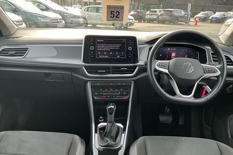 10.25" Digital cockpit pro, Bluetooth mobile phone interface, Driver alert system with fatigue detection, Driver tips and journey analysis, Emergency call service, Lane keeping system Lane Assist, Modified key software - reduce switch off time for key status change to Long no motion, Online services, Park assist including front and rear parking sensors, Service interval indicator, Tailgate/trunk lid release from outside, Think blue trainer driver tips and journey analysis, Warning sound and light for front seatbelts unfastened, Wireless app connect, Battery regeneration during braking, Start/stop function with battery regeneration, Diversity antenna for FM reception, Front and rear 6 speakers, Music playback - MP3, WMA and AAC files, Premium USB cable in choice of either Apple or Android smartphone compatibility, SD card slot, Simultaneous pairing of 2 compatible mobile devices, Title and cover art display, We Connect and We Connect Plus functionality, 3rd brake light, Auto dimming interior rear view mirror, Automatic hazard lights activation under emergency braking, Automatic headlight control with LED separate daytime running lights with coming/leaving home function, Body colour sports bumpers with silver metallic underbody fascia, Dynamic headlight range control with self adjusting whilst driving, Extended roof spoiler, Exterior mirrors aspherical on driver side, convex on front passenger side, External USB type C socket and charging sockets, Front windscreen wiper with intermittent wipe and 4 position delay, Heated rear window, LED Plus headlamps, LED rear combination lamps, LED rear number plate lights, LED tail lamp rear comination lamps, Light mode for poor weather, rain, fog or snow, Power windows with comfort operation and circuit breaker, Rain sensor, Rear exhaust tailpipe, Rear fog light on one side and reversing lights on both sides, Rear side wing doors, Rear wash/wipe with intermittent wipe setting, Remote electrically foldable door mirrors, puddle lights and reverse activated passenger's door mirror, 12V power socket in centre console, 3 rear head restraints, 3 seat bench in 2nd row, 4 load lashing points in luggage compartment, Air care climatronic air conditoning system with active combination filter and 2-zone temperature control, Chrome plated radiator grille inserts, air vent surrounds and light switch surrounds, Door and side trim panel with leatherette insert, Drawer under drivers seat, Front + rear carpet mats, Front centre armrest, Front comfort sports seats, Front cupholders x 2, Front footwell illumination, Instrument lighting, white adjustable panel illumination, Interior ambient lighting and surround lighting, Interior light delay, Isofix child seat preparation, Leather gearshift handle, LED interior light with switch off delay/dimmer and 2 front/rear LED reading lights, Load-through provision with cup holder when folded down ('Unsplit rear seat bench, split folding backrest, with centre armrest), Luggage compartment lighting, Non-folding front passenger seat backrest, Single front passenger seat, Storage compartment in left and right luggage area, Storage compartment in rear doors, Storage compartments in driver and front passenger doors, Sunvisors with illuminated vanity mirrors, Variable boot floor, height adjustable and removable, Driver assistance pack without proactive passenger protection - T-Roc, 3 point height adj front seatbelts + pretensioners, 3 point seatbelts in outer rear with ECE label, ABS, Child locks on rear doors, Driver and front passenger airbag with front passenger airbag deactivation, Driver and front passenger safety-optimised head restraints, Drivers seatbelt reminder, Electronic parking brake, Electronic Stability Control (ESC) inc EDL (Electronic Differential Lock) and ASR (Traction Control), Front and rear passengers curtain airbag system including front side airbags, Front assist with city emergency braking and pedestrian monitoring, Front seat side impact airbags, Predictive pedestrian protection, Rear disc brakes, Single tone horn, Tyre pressure loss indicator, Volkswagen roadside assistance, Alarm with interior protection, Anti-theft alarm system with interior monitoring, backup horn, and towing protection, Remote central locking with SAFELOCK, radio remote control with 2 remote control folding keys, Trims for alloy wheels,