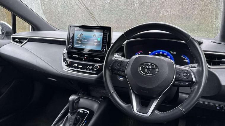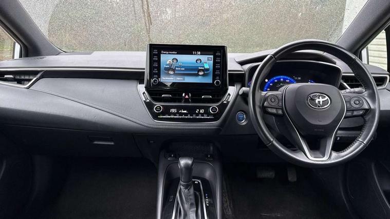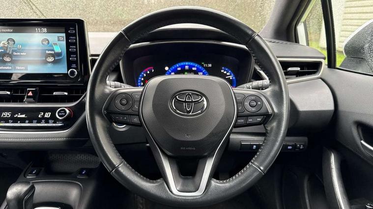 7" Multi information display screen, Bluetooth telephone connectivity, Connected car functionality upgrade, tracker, remote status and e-care, Dynamic radar cruise control (with RSA) including switch on steering wheel, E-call, Electrically assisted power steering, EV drive indicator, Lane Departure Alert (LDA) switch on steering wheel, Memory on adjustable speed limiter, Push button start, Reversing camera, Smartphone integration with Apple CarPlay and Android auto, Gasoline particulate filter, Vehicle Stability Control (VSC), 6 speakers, 8" Touchscreen with MM19 Multimedia system and voice recognition, AM/FM radio, DAB Digital radio, USB and Aux in connectors + 12V front outlet, Anti-jam protection on power windows, Auto up and down function on all power windows, Automatic headlights with high beam assist, Black metallic surround on lower front grille, Black toyota logo in front, Black window frames, Body colour rear spoiler, Body coloured bumpers, Body coloured door mirrors, Body coloured outside door handles, Follow me home headlights, LED daytime running lights, LED front fog lights, LED Headlights, LED High mounted stop light, Manual day/night rear view mirror, Power adjustable heated door mirrors, Power front windows, Power rear windows, Rain sensor, Rear side wing doors, Rear window defogger, Rear window wiper, Shark fin antenna, Time adjustment on intermittent wiper, Turning signal integrated indicators in door mirrors, Unique lower skirt, Unique side rocker with black insert, UV-filter on driver and passenger windows, 3 rear headrests, 3 seat bench in 2nd row, 3 spoke leather steering wheel + gear knob, 60/40 split folding rear seat, Adjustable speed limiter switch on steering wheel, Audio, multimedia and telephone switches on steering wheel, Boot light, Centre room light, Clean air filter, Driver and front passenger personal light, Driver and passenger assist grip, Driver and passenger sun visor with mirror and light, Dual zone automatic air conditioning with ECO mode switch, Fabric armrests, Front and rear cup and bottle holders, Front door pockets, Front head restraints, Front passenger seat, Heated driver and front passenger seats, Illuminated entry system in room lamp, ISOFIX seat fixing (2 fixings on rear outer seats), Leather gear shift with satin chrome on gear shift console, Manual height adjustable for driver and front passenger seat, Parcel shelf, Passenger seat back pocket, Pollen filter, Power adjustable lumbar support on driver seat, Power window switches with satin chrome inserts, Quilted fabric upholstery with grey stitches seats, Rear armrest with 2 cupholders, Rear passenger coat hooks (2), Satin chrome inside door handles, Shopping bag hooks in luggage compartment, Sliding armrest on centre console box, Slow opening glovebox with lights, Tilt/telescopic steering column, Voice recognition switch on steering wheel, Whiplash Injury Lessening (WIL) feature (active headrest) for seats, Toyota safety sense 2 pack - Corolla, 3x3 point rear seatbelts, Adjustable driver and front passenger seat belt extender to top anchor point, Anti lock braking system + Electronic brake force distribution, Brake assist function, Child locks on rear doors, Downhill Assist Control (DAC), Electronic parking brake, Emergency brake light signal (EBS), Front passenger airbag on/off switch, Front seatbelt reminder, HAC - Hill start assist control, Rear seat belt reminder, Seatbelt pretensioners and force limiters, Supplemental restraint system (SRS) 7 airbags - dual driver, dual side curtain, side impact and driver knee airbags, Traction control, Tyre pressure warning system, Acoustic vehicle alert system (AVAS), Alarm with motion sensor and immobilizer, Remote central locking + deadlocks, Satin chrome dash trim, Soft touch texture on upper dashboard, Unique wheel finish with red wheel cap,