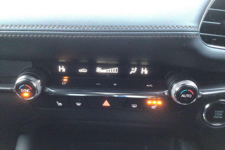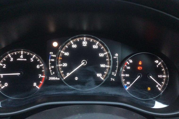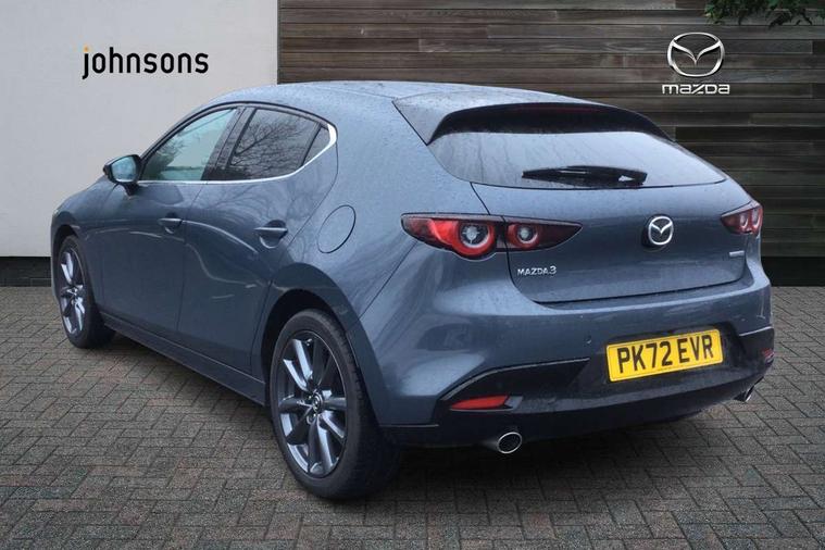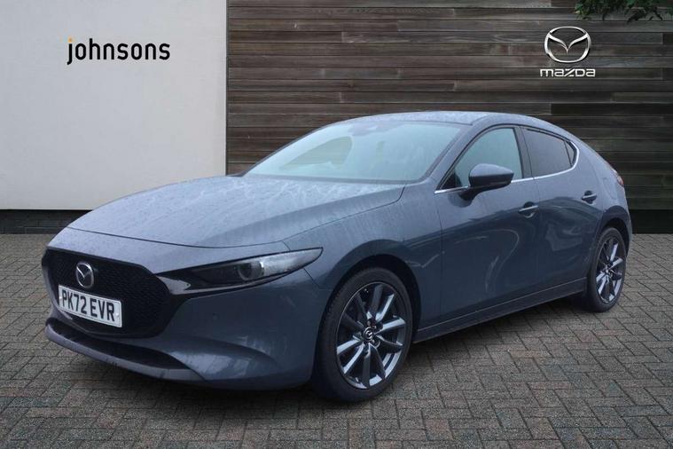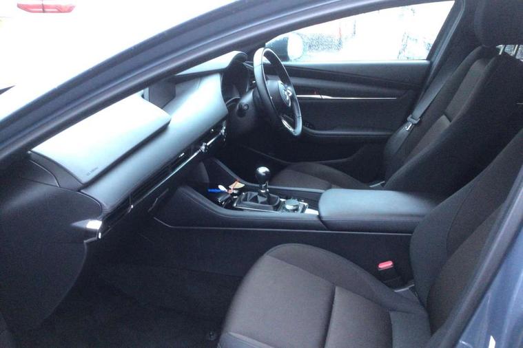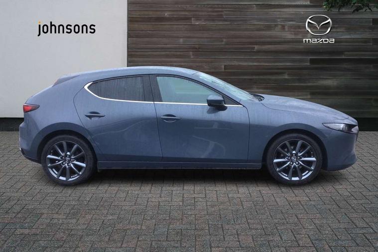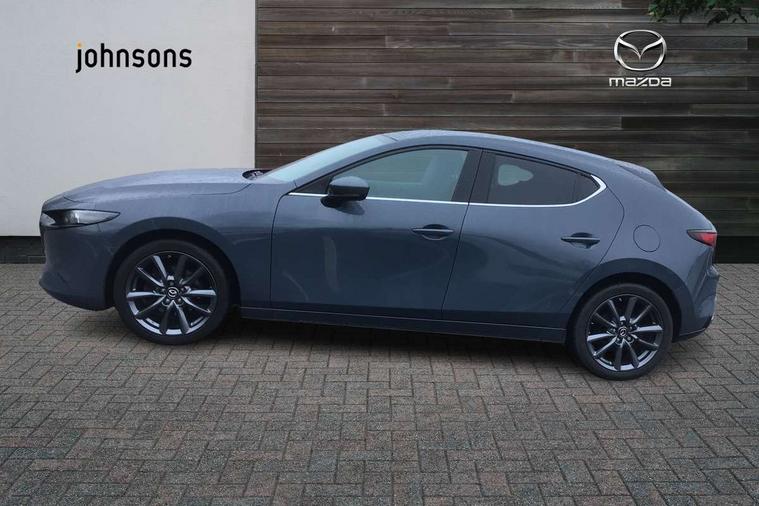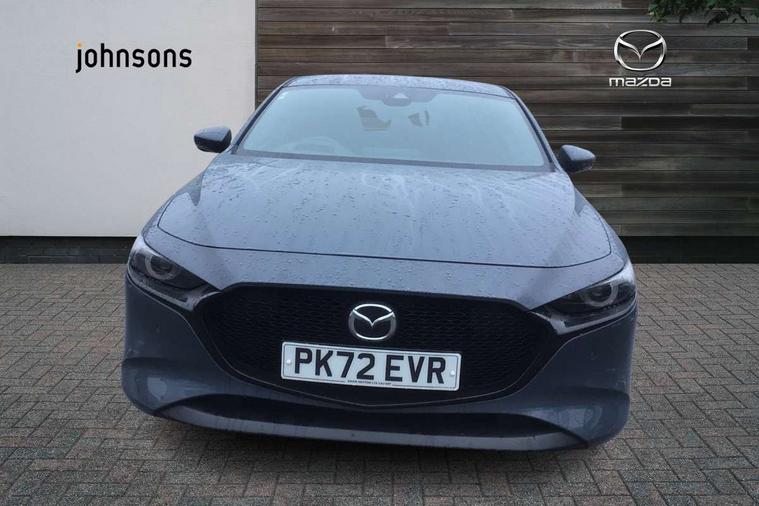 7" colour TFT display, 8.8" Colour centre touch screen display with Mazda Connect infotainment, Apple car play/Android Auto, Audio transfer from bluetooth devices, Blind spot monitoring with rear cross traffic alert, Colour active driving display inc Windscreen projected, Traffic Sign Recognition, turn-by- turn navigation and Mazda Radar Cruise Control information, Digital instrument cluster, Driver attention alert system, E-call with GPS, Emergency stop signalling system, Engine start/stop button, Front and rear parking sensor with audible and visual warning, Head up Display, Integrated bluetooth with steering wheel mounted controls, Intelligent speed assist, Lane keep assist system (LAS) with Lane departure warning system (LDWS), Mazda connected services, Mazda Navigation System with european mapping, Mazda Radar Cruise Control, Mobile App interface, Multimedia Commander, PAS, Reversing camera, Service indicator, Tailgate, Traffic sign recognition (TSR), Trip computer, Cylinder Deactivation, i-stop, Mazda Multimedia System with AM / FM / DAB radio with 8 speakers, Adaptive LED Headlights, Auto dimming driver's door mirrors, B-pillar garnish in piano black, Body coloured, electrically adjustable, heated auto power folding door mirrors with integrated indicators, Coming/leaving home lighting function, Dark metallic finish signature wing, Dual chrome tailpipes tip, Dusk sensing headlights, Electric front/rear windows with one touch/auto up/down, Frameless auto dimming interior rear view mirror, Front body coloured bumper with black lower bezel, Front kodo turn signal, Gloss black finish front grille, Gloss black rear roof spoiler, LED indicator lights, LED third brake light, Privacy glass with dark tinting on rear side windows and rear window, Rain sensing front wipers with adjustable sensitivity and speed, Rear colour coded bumper with gloss black lower moulding, Rear fog lights, Rear side wing doors, Signature LED daytime running lights, Signature LED rear combination lights, Speed adjustable rear wash wiper with intermittent wipe, 12v electrical power outlet, 3 seat bench in 2nd row, 60/40 split fold down rear seats, Black cloth door panel inserts, Chrome interior trim accents with steering wheel centre bezel, surround of engine start / stop button and glove box handle, Cloth upholstery, Dark roof headlining, ceiling and pillars, Driver, front passenger and two rear door pockets, Driver, Front passenger and two rear grab handles with coathooks, Driver/passenger sunvisors + vanity mirrors (drivers side with ticket holder), Drivers seat manual slide recline and height adjustment, Dual zone climate control air conditioning, Folding rear centre armrest with two cup holders, Front and rear courtesy lamps, Front armrest, Front centre storage with two cupholders, Front head restraints, Front passenger seatback pocket, Front passengers seat manual slide, recline and height adjustment, Gear shift indicator, Heated front seats with 3 stage setting, Illuminated glovebox, Interior colouration dashboard and doorcards in black with dark stitching, ISOFIX child seat anchorage points attached on outer rear seats, Leather wrapped gear shift knob, Leather wrapped steering wheel, LED interior light, Luggage compartment light, Power outlet in luggage compartment, Roof mounted sunglasses holder, Single front passenger seat, Three height adjustable rear head restraints, Tilt/height adjustable steering wheel, USB input, 3 point ELR front seatbelts with pretensioners, 3 rear 3 point seatbelts with ELR, Anti-lock braking system (ABS), Drivers knee airbag, DSC - Dynamic Stability Control, Dual stage driver and single stage passenger airbags, EBD - Electronic brakeforce distribution, Electronic parking brake with auto disengage function and auto hold function, Front and rear curtain airbags, Front passenger airbag cut-off switch, Front side airbags, Front smart city brake support, G-Vectoring control plus, Hill launch assist, Intelligent Traction Control system, Manual child lock in rear doors, Mild Hybrid system with regenerative braking, Seatbelt reminder for driver/front passenger and rear seats, Tyre pressure monitoring system (TPMS), Auto door lock when driving, Remote central locking + deadlocks, Smart keyless entry, Thatcham accredited alarm and immobiliser, 18" Grey alloy wheels, Emergency tyre repair kit,