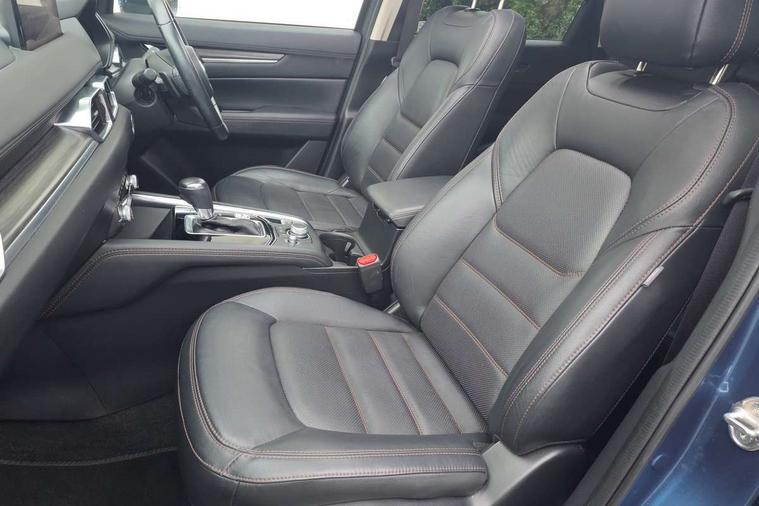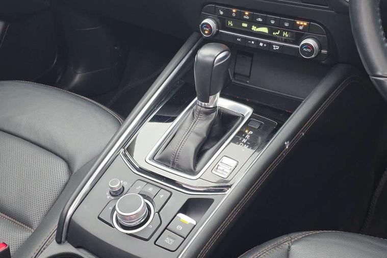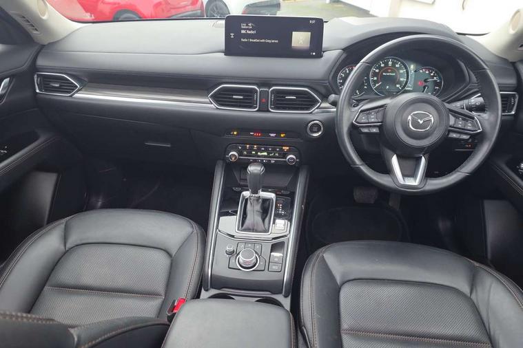 10.25" display with Mazda Connect infotainment, 7" colour TFT display, Advanced blind spot monitoring, Apple car play/Android Auto, Bluetooth connectivity with voice control, Collision prevention assist, Connected services, Cruising Traffic Support, Drive mode selector, Electric power steering, Emergency stop signalling system, Engine start/stop button, Forward collision warning, Front and rear parking sensors, Integrated navigation system, Intelligent speed assist, Lane departure warning system, Lane keep assist, Radar cruise control with Stop and Go, Reversing camera, Service indicator, Traffic sign recognition (TSR), Trip computer, Windscreen projected colour active driving display (HUD) with memory, i-stop, 2 USB sockets in rear, 2x USB sockets in front, 6 speakers, AM/FM radio, Bluetooth audio streaming, DAB Digital radio, Multimedia Commander including separate volume dial, Steering wheel mounted audio controls, Adaptive front lighting system, Auto dimming rear view mirror, Automatic headlights, Black inlay dashboard panel, Body colour door mirrors, Body colour roof spoiler, Body coloured front and rear black lower bumper mouldings, Bright finish signature wing, Coming/leaving home lighting function, Door mirror integrated indicators, Dual chrome tailpipes, Dusk sensitive headlamps, Electric front/rear windows with one touch auto up/down, Front grille in gloss black finish, Gloss black B and C pillars garnish, High beam assist, Intermittent rear wash/wipe, LED auto levelling, LED daytime running lights, LED front fog lights, LED Headlights, LED third brake light, Power folding and heated door mirrors, Power tilt/slide sunroof, Privacy glass (rear side windows only), Rain sensing front wipers, Rear side wing doors, Satin black side mouldings, Scuff plates, Shark fin antenna, Signature LED rear combination lights, Vinyl with wood grain metal inlay door trim panel, Windscreen wiper de-icer, 12v electrical power outlet, 3 seat bench in 2nd row, 3 stage heated front seats, 40:20:40 Karakuri fold-flat seat system, 6 way electric adjustable passenger seat, 8 way electric driver seat with lumbar support + memory, Cargo room flat floor board with waterproof undertray, Driver seat power slide, recline and height adjustment, Driver, Front passenger and two rear grab handles with coat hooks, Driver/passenger front seatback pockets, Driver/passenger sunvisors + illuminated vanity mirrors (drivers with ticket holder), Dual zone climate control, Folding centre armrest with 2 cup holders, Front and rear door pockets, Front centre storage with two cupholders, Front passenger seat power slide, recline and height adjustment, Heated steering wheel, Humidity sensor, Illuminated glovebox, Interior dome light with integral spotlight, ISOFIX child seat anchorage points attached on outer rear seats, Karakuri tonneau cover, Leather upholstery, Leather wrapped steering wheel and gear knob, Light roof lining, Luggage compartment LED lighting, Luggage compartment power outlet, Paddle shifts, Rear air vents, Rear headrests, Rear seat recline, Roof mounted sunglasses holder, Single front passenger seat, Three height adjustable head restraints, Tilt/height adjustable steering wheel, White interior LED illumination lighting, 3 point front seatbelts with pre-tensioners, 3 rear 3 point seatbelts, ABS, Advanced Smart City Brake Support - SCBS, Child locks on rear doors, Driver and front passenger side airbags, DSTC-Dynamic Stability and Traction Control, Dual front airbags, Electronic brake force distribution, Electronic parking brake with auto hold, ESP, Front and rear curtain airbags, Front passenger airbag deactivation, G-Vectoring control, Hill hold assist, Seatbelt reminder front and rear, Single stage passenger airbags, Smart brake support with forward obstruction warning, Tyre pressure monitoring system, Automatic door locking when moving off, Deadlock, Immobiliser, Power door locks, Remote central locking, Smart keyless entry, Thatcham Cat.1 alarm, 19" diamond cut black alloy wheels, Tyre repair kit,