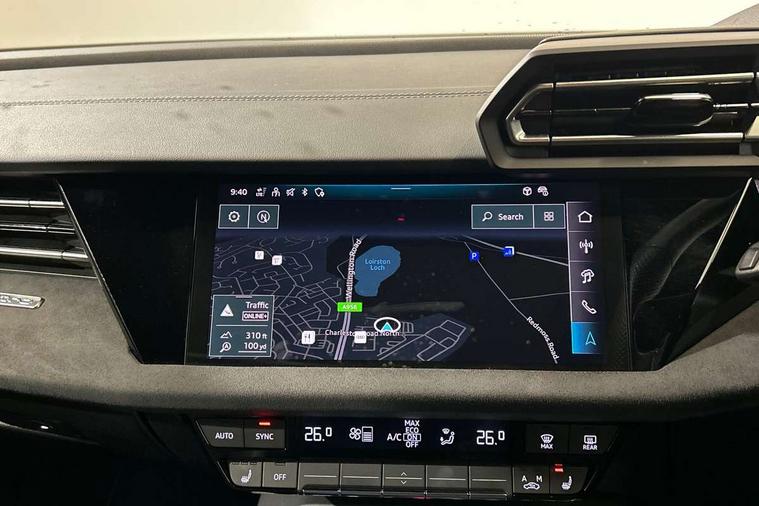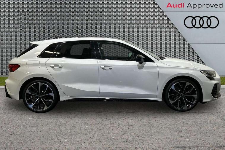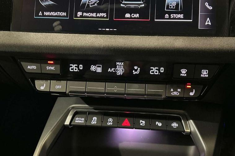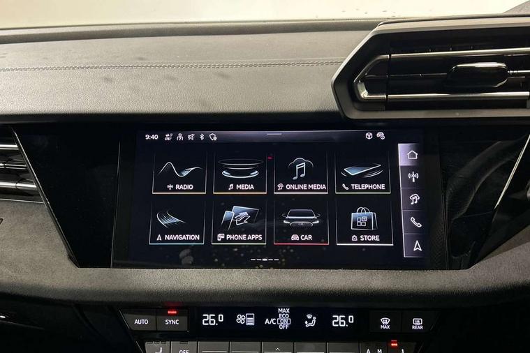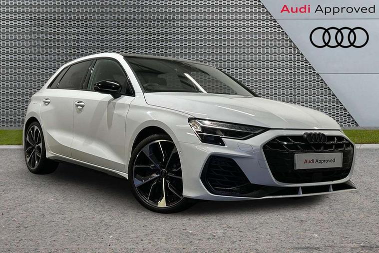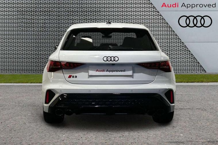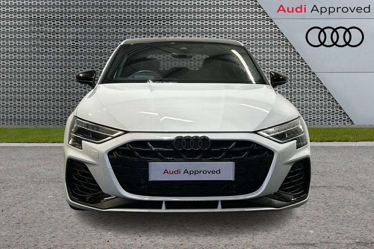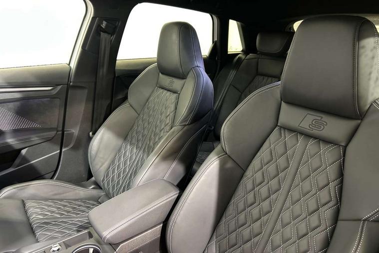 Adjustable speed limiter, Audi drive select, Audi smartphone interface with app store includes wireless Apple carplay, Android auto and Amazon alexa integration, Audi virtual cockpit plus - 12.3" full HD resolution dynamic digital instrument cluster, Automatic start/stop system with recuperation, Bluetooth interface, Camera based traffic sign recognition, Collision avoidance assistant, Distraction and Fatigue warning, e-Call (emergency call), Electromechanical power speed sensitive steering, Lane departure warning system, MMI Navigation Plus with high resolution 10.1" colour touch screen display, Park Assist with parking system Plus, Progressive steering, Service indicator, Tailgate, Trip computer, Voice control system with natural language interaction, S sport suspension with spring damper adjustment and lowering by 15mm, Audi Phonebox light with wireless charging, DAB Digital radio, USB ports with charging function in the rear, Anthracite grey Audi rings (front and rear), Audi Beam uses LEDs to project the rhombus S logo onto the ground as you exit your S3, Auto dimming frameless rear view mirror, Black accents front and rear bumpers including air inlets, Black accents in front grille and frame, Black accents window trims strips, Electrically adjustable/heated/folding/dimming door mirrors with kerb view includes integrated LED indications + kerb view function for passenger side, Exterior model badging, Front electric windows, Headlight washers, Heat insulating glass windscreen, Illuminated door sills with aluminium inserts at the front with S logo, LED 3rd brake light, LED daytime running lights, LED headlights with LED rear lights and dynamic rear indicators, Light and rain sensors, Privacy glass - dark tinted rear window, rear door and side windows, Rear electric windows, Rear side wing doors, Rear wiper, S grille, S3 front bumper with S specific air intake grilles, S3 roof spoiler, 12V socket and storage compartment in front centre console, 3 seat bench in 2nd row, 3 spoke flat bottomed leather multifunction sport steering wheel with gear shift paddles, 3-zone deluxe automatic air conditioning, 4 way electrically adjustable lumbar support for driver and front passenger, 40/20/40 split folding rear seat bench, Black cloth headlining, Fine Nappa leather upholstery with front sports seats S embossed logo, Front and rear centre armrest in artificial leather, Front and rear headrests, Front/rear floor mats, Heated front seats, Manual boot compartment lid, Manually adjustable front seats, S badging on the steering wheel, Seat side bolsters, Single front passenger seat, Stainless steel pedals and front footrest in black, Aluminium interior elements pack - A3 Sportback, Extended ambient lighting package Pro - S3 Black edition, Storage package - A3, Technology package - A3, 3x3 point rear seat belts, Driver and front passenger airbag with passenger airbag deactivation, Electronic Stabilisation Control (ESC) including ABS, ASR and EDL, First aid kit with warning triangle and 2 safety vests, Front side airbags with head airbags and interaction airbag, Hill hold assist, Pre-sense front with pedestrian and cyclist detection, Seatbelt monitoring, Tyre pressure loss indicator, Anti theft alarm, Anti-theft wheel bolts, Electronically operated child locks, Immobiliser, Remote control central locking, Inlays in black dynamica microfibre,