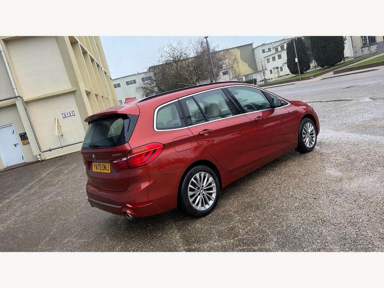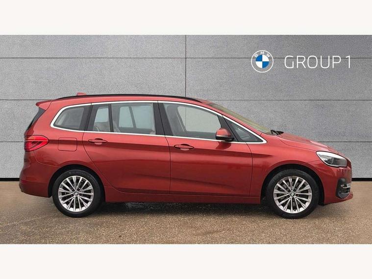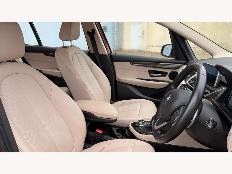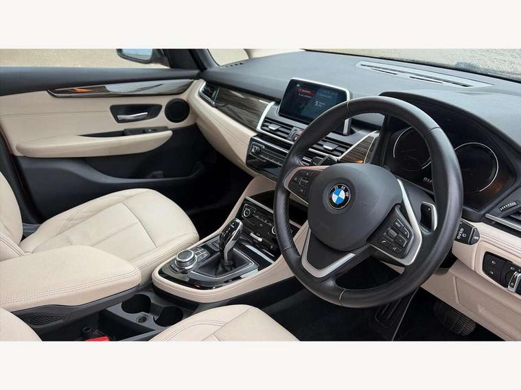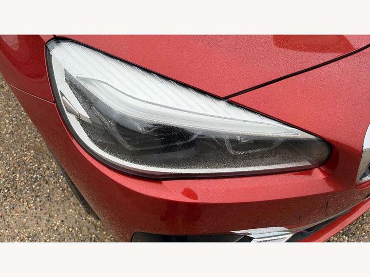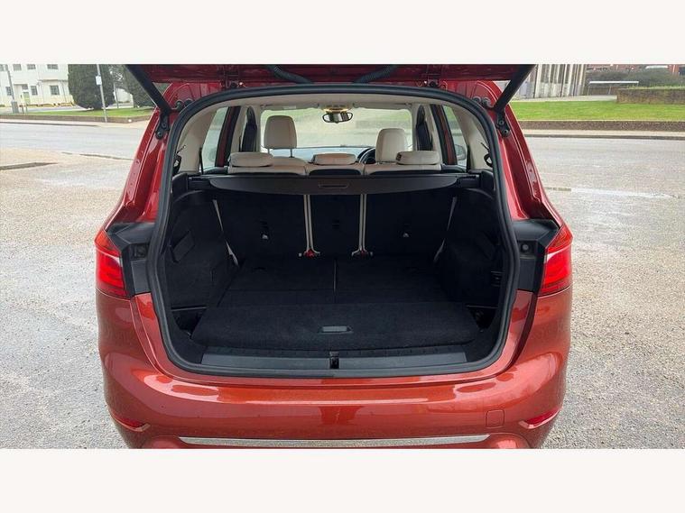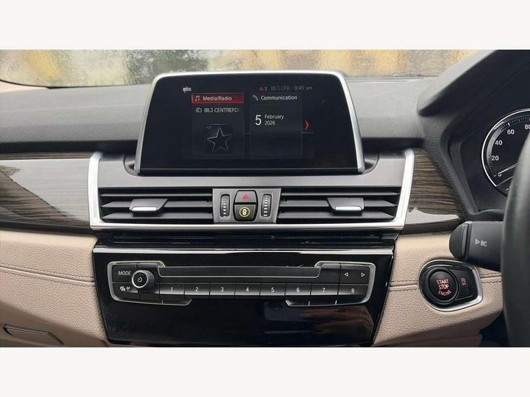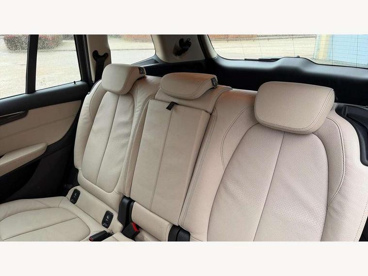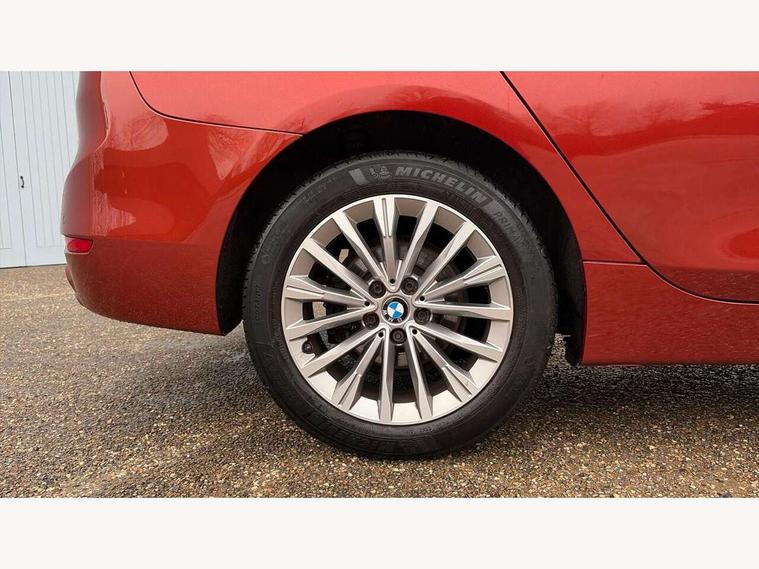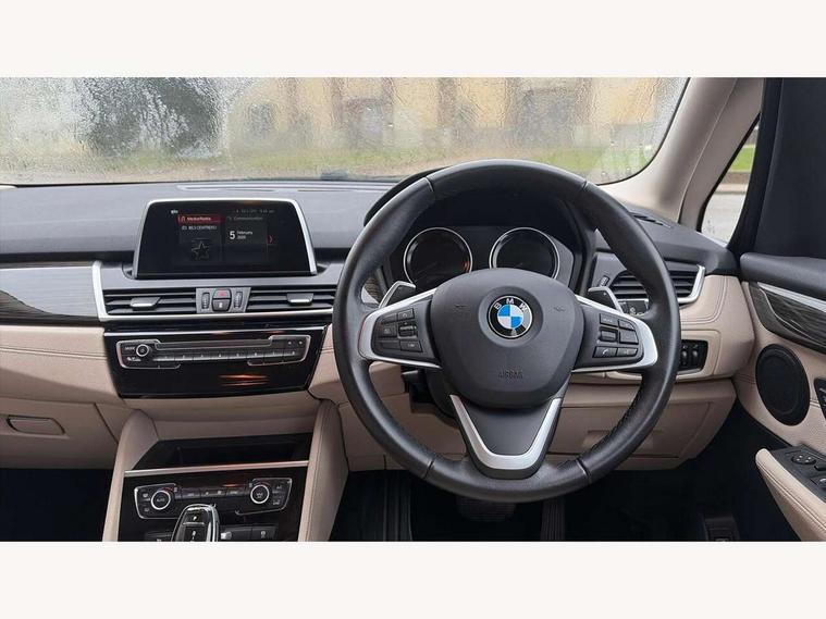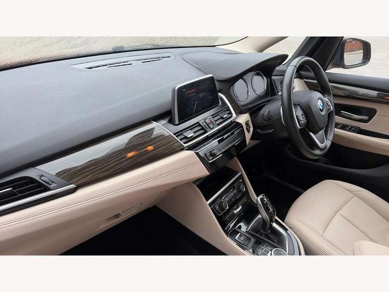 Active Guard incl speed limiting and lane departure functions with auto steering, and front collision warning with brake intervention, Apple car play, Attentiveness assist, Auto start-stop, Automatic tailgate operation, BMW Online services, BMW remote services, BMW Teleservices, Check control system, Door/boot open warning light, Eco pro mode, Front and rear Brake pad wear indicator, Front/rear Parking distance control, Instrument cluster with speedometer with miles per hour read out, tachometer and fuel gauge, Lights on warning, Oil temperature gauge, On board computer, Optimum shift indicator, Outside temperature display, Park assist system, Personal Profile, Real time traffic information, Service interval indicator, Servotronic PAS, Speed limiter, 12V compressor with integrated sealant injection bottle and hose, Drive Performance Control, Dual clutch sport automatic transmission, Electronic differential lock, Twin tube gas filled shock absorbers with degressive characteristic curve, Bluetooth audio streaming, BMW professional radio, DAB Digital radio, Aero curtain, Body colour bumpers, Body colour door handles, Body colour door mirrors, Body colour roof mouldings, Chrome line exterior trim, Clear lenses direction indicator lights, Door mirror integrated indicators, Dynamic brake lights, Electric front/rear windows with one touch/auto up/down, Exclusive door sill finishers, Front air inlet with chrome finish, Front and rear bumper system, Green tinted heat protection glazing glass, Heated windscreen washer jets, High level third brake light, Kidney grille with 12 Chrome fronted vertical slats, LED front fog lights, Lightweight engineering, Model designation, Rain sensor including auto headlights activation, Rear bumper with chrome finisher, Rear fog lights, Rear window aerial, Rear window wiper with wash/wipe function, Reverse light in rear light cluster, Shark fin antenna, Twin chrome exhaust tailpipes, Visible VIN plate, Welcome lighting, 3 spoke leather sports steering wheel, 4 grab handles, 40:20:40 split folding rear bench seat, Anthracite Velour floor mats, Child seat ISOFIX attachment for two outer rear seats and front passenger seat with anchorage points, Dakota leather upholstery with perforation and contrast stitching, Front armrest, Front head restraints, Front/rear armrests within door panels, Glovebox with light, Interior lighting, front centre over interior mirror and rear centre automatic interior light activation when door is opened, LED ambient lighting in door trim, Luggage compartment lighting, Luggage compartment underfloor storage, Multi-function controls for steering wheel, Reach + rake adjustable steering column, Rear centre armrest, Rear coded belt buckles, Rear seat headrests, three (second row), two (third row), Sliding rear seat bench, Sunvisor with ticket holder, Third-row seating, Two cupholders, Two zone automatic air conditioning, Extended storage pack - 2 Series Active/Gran Tourer, Non-smoker package, 3 point seatbelts on all seats, ABS, Battery safety cut-off, BMW emergency call, Brake assist function, Brake drying, Brake energy regeneration, Braking readiness, Childproof rear door locks, Crash Sensor - activates hazard/interior lighting + unlocks doors, Driver/Front Passenger airbags, Dynamic stability control + (DSC+), Dynamic Traction Control - DTC, Electrically operated parking brake with automatic drive release, Front and rear curtain airbags, Front passenger airbag deactivation, Front seatbelt force limiters, Front seatbelt pretensioner, Front side airbags, Front ventilated brake disc, Hill start assist, Rear brake discs, Seatbelt warning, Side impact protection, Twin horns, Tyre pressure monitoring system, Warning triangle and first aid kit, Electronic immobiliser, Locking wheel bolts, Remote control Thatcham category 1 alarm, Remote control with integrated key with silver highlight, Contrast stitching on instrument panel, Low rolling resistance tyres, Tyre mobility system,