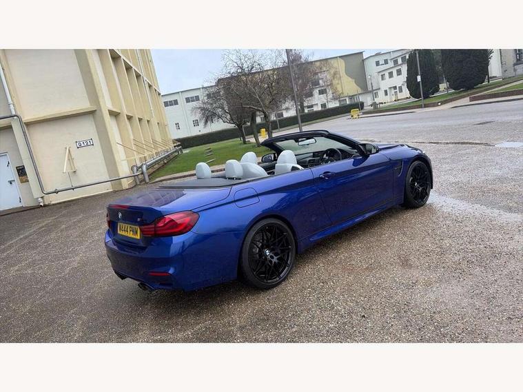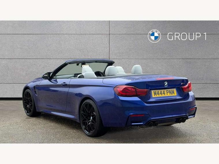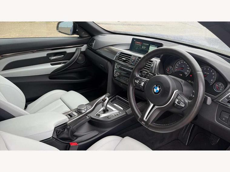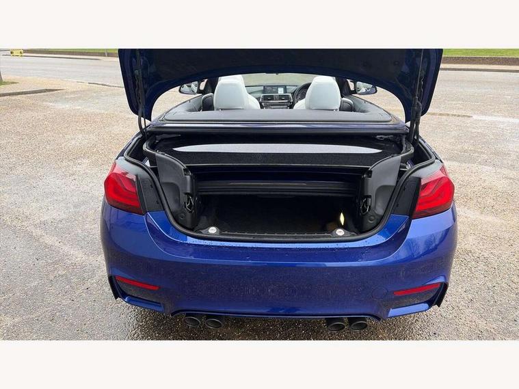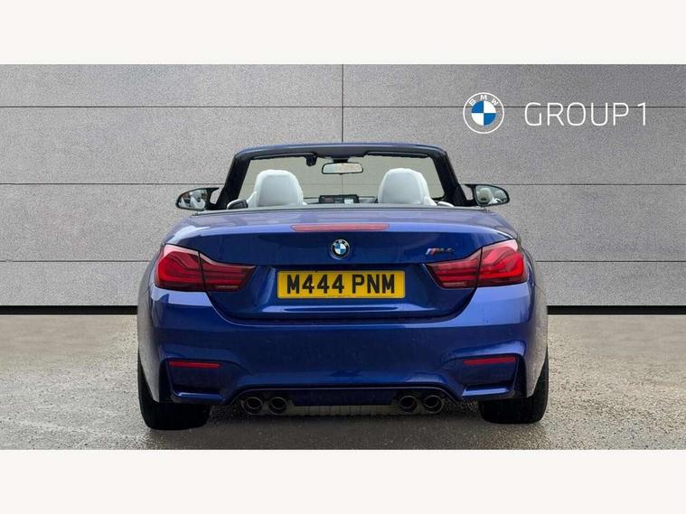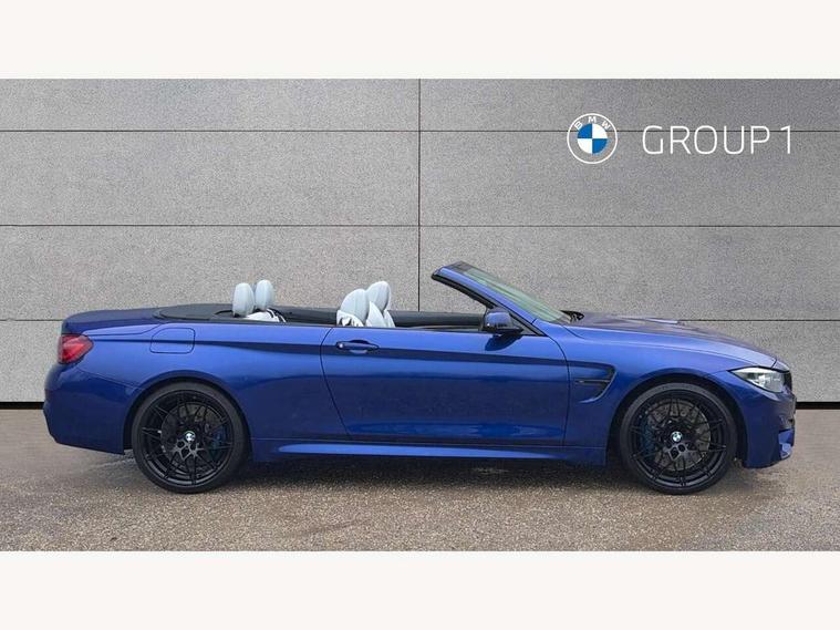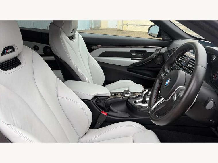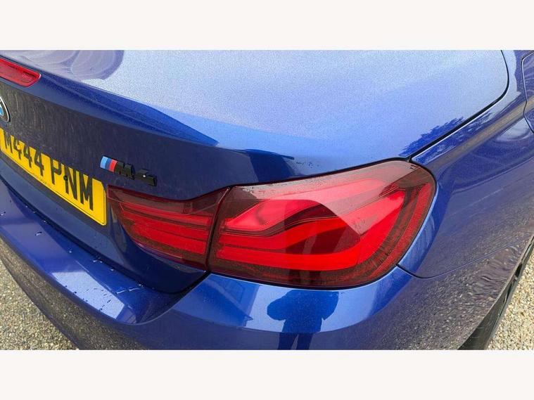 BMW service history, Brake pad wear indicator warning light, Check Control warning system for monitoring of lights and door/luggage compartment open warning, Condition based service, Controller and Control Display+8.8" monitor, Cruise control with brake assist, Electric Power Steering (EPS) with Servotronic, Enhanced bluetooth with wireless charging, iDrive touch controller with shortcut buttons, Instrument cluster with speedometer with miles per hour read out, tachometer and fuel gauge, Integrated owner's handbook, Lights on warning by audio warning signal when ignition is switched off, M drive manager for individual set up, Oil temperature gauge, On-Board Computer (OBC) comprising: average speed, average and current fuel consumption, and range, outside temperature display with acoustic warning, Optimum shift indicator, Service interval indicator, Wireless charging cradle in front centre armrest storage compartment, Adaptive M Sport suspension, Aluminium front suspension, Five link rear suspension, M differential lock, Sport exhaust system, 8 programmable favourite buttons, Auxiliary point for auxiliary devices, BMW professional radio/CD/MP3, DAB Digital radio, Electronic service booklet, Wi-Fi hot spot, Air breather, Auto dimming rear view mirror, Body colour bumpers, Body colour door handles, Body colour door mirrors, Body colour roof mouldings, Daytime running lights, Direction indicator, side repeaters, integrated in exterior mirrors, Door sill finishers, Dynamic brake lights, Electric adjustable heated door mirrors, Electric front and rear windows with fingertip open/close + anti-trap facility and comfort closing function, Exterior mirrors - electrically folding with anti-dazzle, Follow me home headlights, Green tinted heat insulating glass, Headlight beam throw control, Heated windscreen washer jets, High gloss black kidney grille, High gloss black M side strakes, High level third brake light, Illuminated M badge and model name with black high-gloss surround, Individual high gloss shadow line, LED direction indicator lenses, LED eyebrow light, M Sport exhaust finish with black chrome tailpipe finishers, Rain sensor including auto headlights activation, Retractable hard top, Two part LED tailights in L-shape with components in smoked glass, brake light, LED turn indicator and rear fog light, Two speed adjustable intervals windscreen wipers, Visible VIN plate, Welcome lighting, 12V sockets in front centre console and passenger footwell, 3 spoke leather M sport multifunction sports steering wheel, 4 grab handles, Anthracite headlining, Armrest front sliding with folding storage compartment, Driver + passenger electric lumbar support, Driver and front passenger seat heating, Dual zone climate control, Electrically adjustable front seats - driver seat with memory, Front and rear bottle holders integrated into door trim storage compartments, Front and rear side armrest integrated into door trim, Front interior light, Front seat backrest width adjustment, Full black panel display, Gearshift lever with M designation, Glovebox with lid, Integrated rear head restraints, ISOFIX child seat preparation+airbag deactivation, Lashing eyelets in boot, Leather gear and handbrake lever, Luggage compartment lighting, M specific running gear, M specific seats for driver and passenger lightweight construction with integrated headrests, M-specific rear seats with integrated two headrests, Reach + rake adjustable steering column, Storage compartment behind rear seat, Storage compartment in rear centre console, Storage compartment in rear doors, Storage tray in left luggage compartment, Sunvisors with illuminated vanity mirrors and ticket pocket, Toolkit located in luggage compartment, Two front cupholders with removable oddments tray/lid, Velour floormats, Extended lights package - M Series, Media pack - Professional - M4, ABS/EBD, Automatic Stability Control (ASC), Battery safety cut-off, Brake assist, Brake drying, Brake energy regeneration, Braking pre-tensioning, Childproof rear door locks, Compound brake discs - inner vented, Cornering brake control (CBC), Crash Sensor - activates hazard/interior lighting + unlocks doors, Driver/Front Passenger airbags, DSC+, Dynamic brake control, Dynamic Traction Control - DTC, ESP, Front passenger airbag deactivation, Front pyrotechnic belt tensioners and belt force limiter, rear coaded belt buckles, Front side airbags, Hill start assist, M dynamic mode, M sport seatbelt, Roll over protection, Seat belt security check for driver, Side impact protection, Twin horns, Tyre pressure monitor, Warning triangle and first aid kit, Automatic drive away locking facility, Central locking switch for all doors, fuel filler cap and luggage compartment, Electronic immobiliser, Keyless Start, Remote central locking, Remote control including integrated key with inset in chrome two, Remote control Thatcham category 1 alarm, Start/stop button with Comfort Go keyless engine start and auto Start/stop deactivation button, M mobility system (flat-tyre repair system),