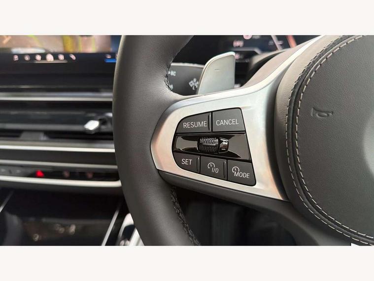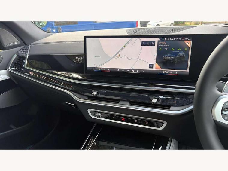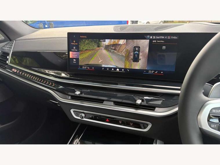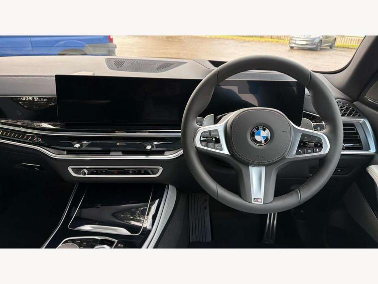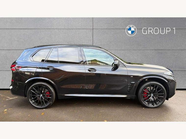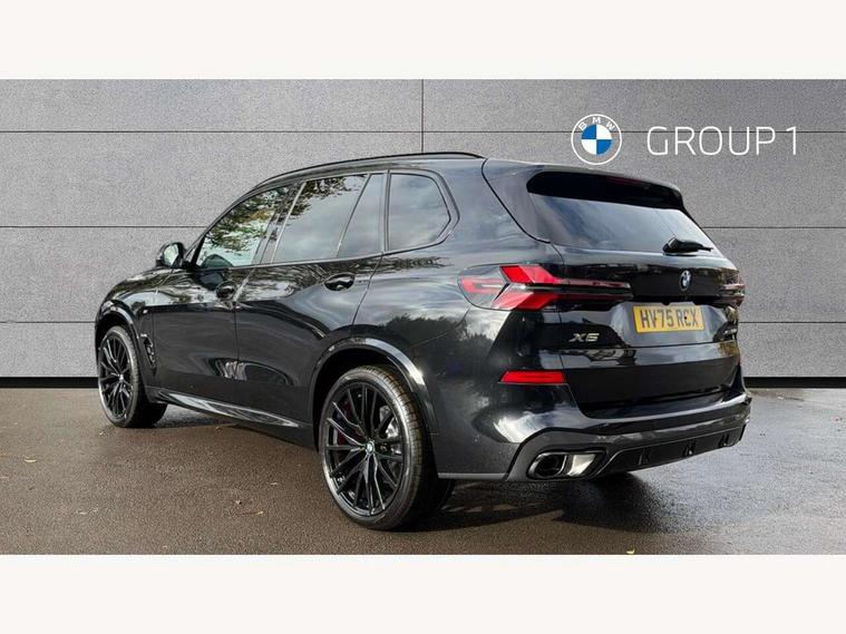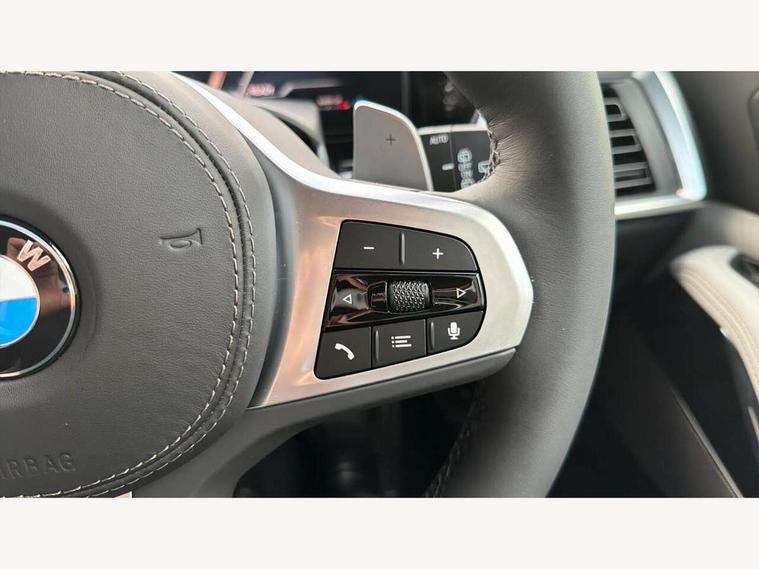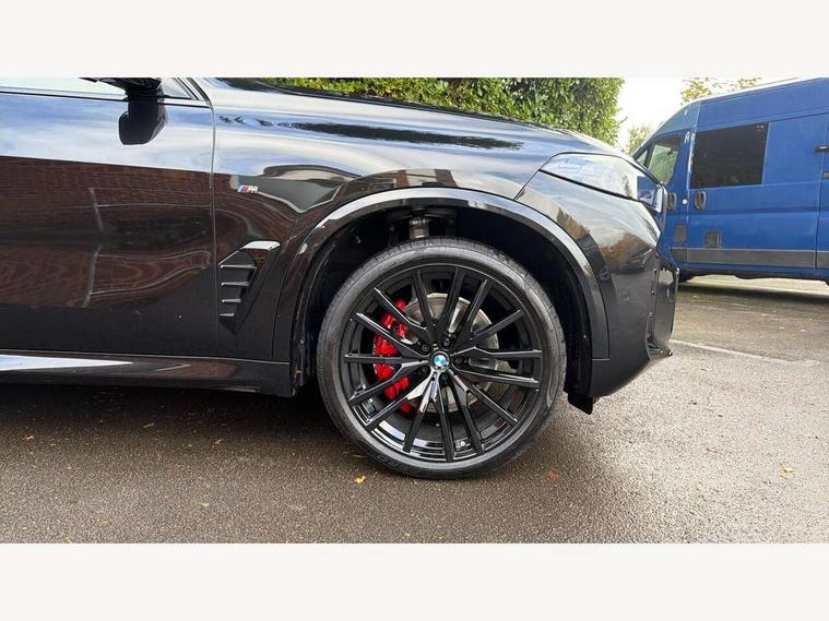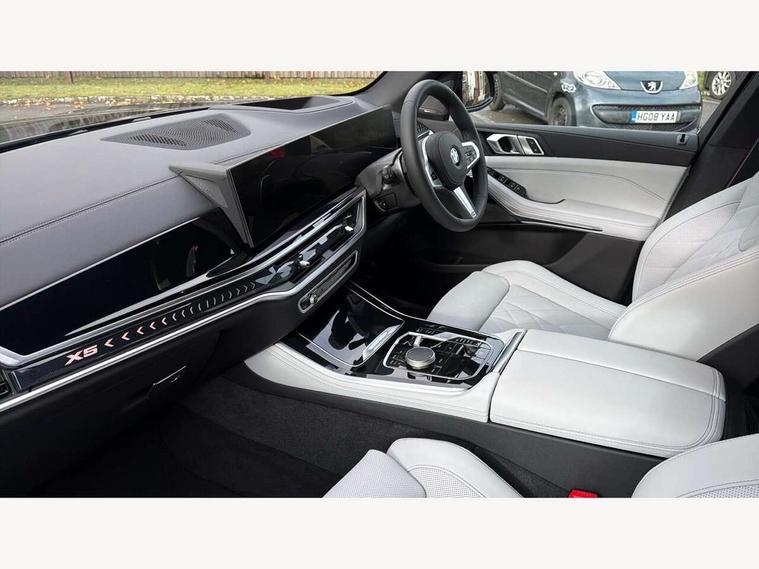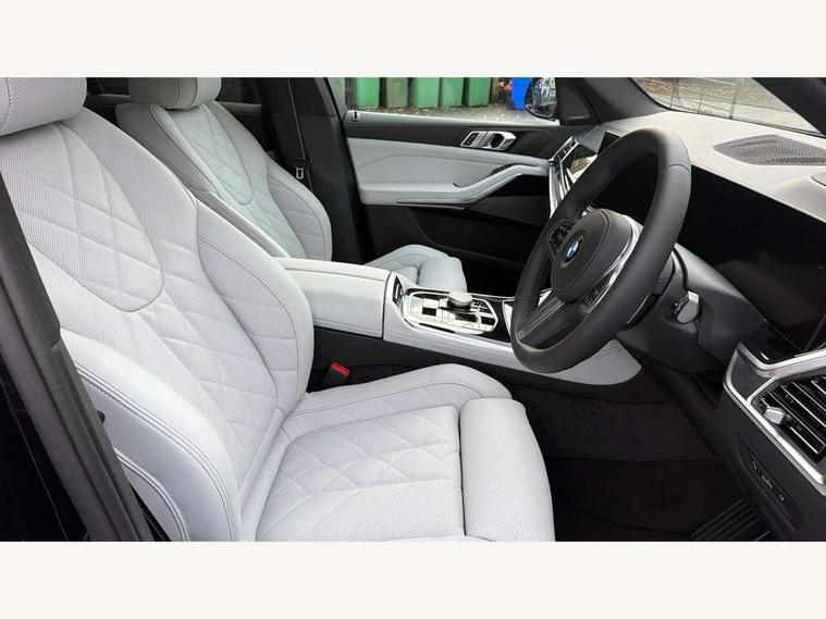 Attentiveness assist, Automatic tailgate operation, BMW ConnectedDrive online services, BMW live cockpit + with curved 12.3 instrument cluster/14.9 central display, nav/Tuner with diversity reception, RDS/4GLTE/remote software upgrade, BMW Recovery system, BMW Teleservices, Condition based service, Cruise control with brake assist, eCall emergency call system, Enhanced bluetooth with wireless charging, Integrated owner's handbook, PAS, Speed limiter, Wi-Fi hotspot, Drive performance control with ECO PRO comfort + sport mode, Eight speed steptronic sport automatic transmission and gearshift paddles on the steering wheel, Adaptive LED Headlights, Front and rear electric windows, High beam assistant, High gloss black shadow line roof rails, LED daytime running lights, Rain sensor, Rear side wing doors, Third brake light in rear spoiler, Variable intermittent rear wash/wipe, 12V - Power sockets with 2x centre console and 1x luggage compartment, 3 seat bench in 2nd row, Entry sills illuminated BMW inscription front and rear, Foldable rear centre armrest with 2 cupholders and storage compartment, Front and rear side armrest integrated into door trim, Grab handles in 1st and 2nd row of seats with Integrated in headliner, at rear with coat hooks, plastic, Headrests for all seats, Luggage compartment separating net, Lumbar support with height and depth adjustment in backrest, Single front passenger seat, Sunvisors with illuminated vanity mirrors and ticket pocket, Three spoke sport M leather steering wheel, Velour floormats, Ambient light interior pack - X5, Driving assistant pack with radar based driver assistance system - X5, Expanded exterior mirror pack - X5/X5 M, M aerodynamics pack - X5, Parking assistant pack - X5, 3 rear seatbelts, Active protection, Airbags - driver/front passenger, rear and side, first and second row seats head airbags, front passenger seat airbag deactivation + knee airbag, Anti-lock braking system (ABS), Automatic Stability Control (ASC), Brake energy regeneration, Cornering brake control (CBC), Crash sensor activating central locking release, hazard warning lights, fuel cut off, interior lighting + activation of safety battery terminal clamp, DSC - Dynamic Stability Control, Dynamic Traction Control - DTC, Electromechanical parking brake with automatic drive away release and auto hold function, Electronic brake force distribution, Hill start assistant, M Sport blue painted brake calipers with 'M' designation, Mechanical child proof lock on rear doors, Tyre pressure monitoring system, Tyre pressure sensors, Ventilated front and rear disc brakes, Warning triangle and first aid kit, Alarm system, Closing system with central locking, Comfort access system, Locking wheel bolts,