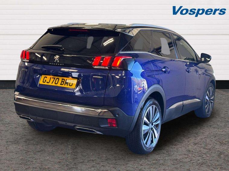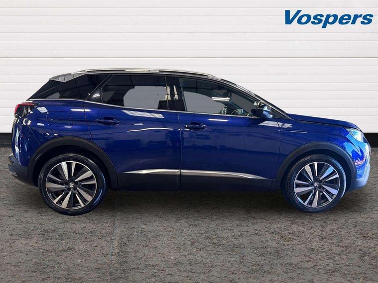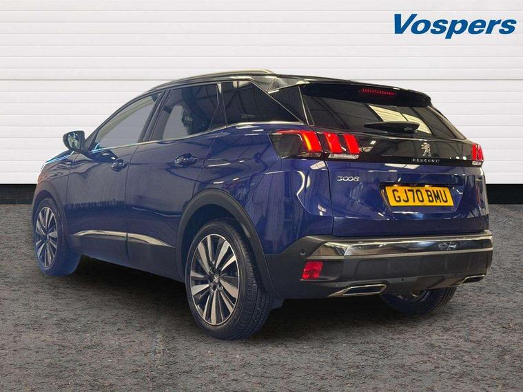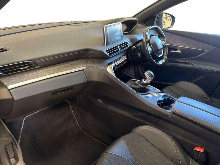 Brumeo fabric Dashboard, front and rear door panel finish, Driver sport pack - 3008, Safety pack - 3008, Safety Plus Pack - 3008, Visibility pack - 3008, 19" Washington two tone diamond cut alloy wheels, Space saver spare wheel, Anti theft alarm, Automatic door locking when moving off, Automatic hazard light activation upon heavy brake application, Central locking button on dash, Deadlocks, Electric tailgate with Peugeot open & go system, Electronic immobiliser, Locking wheel bolts, Remote control central locking with two plip keys, DAB Digital radio, Steering wheel mounted controls, USB socket, 3x Rear three-point retractable seatbelts with force limiters in the outer rear seats, Adaptive driver and front passenger airbags with passenger airbag deactivation function, Anti lock braking system + Electronic brake force distribution, Driver and front passenger side airbag, Electric child locking functionality on rear windows and doors, Electric parking brake, Front and rear curtain airbags, Front optimised safety headrests and 3 x rear retractable headrests with height adjustable, Front three point retractable seatbelts with pre tensioners and force limiters, Front ventilated disc brakes and rear disc brakes, Height adjustable front seatbelts, Hill start assist, Tyre pressure sensor, 2 X Rear number plate lights, Aluminium longitudinal roof bars, Auto self levelling headlights, Automatic triggered rear windscreen wiper in reverse gear, Black front wing trim with chrome detail, Body colour door handles, Body colour rear spoiler with stainless steel edging trim, Body coloured bumpers, Body protectors (bottom of front and rear bumpers + wheel arches + protection at bottom of doors) in black, Chrome front fog light trim, Chrome rear bumper facia, Chrome side window trim, Dark tinted rear side windows + tailgate window, Door mirror mounted LED Peugeot lion approach lights, Electric operated/heated door mirrors, Front windscreen wiper with magic wash cleaning system, Full LED headlights with LED fog lights with static cornering function, sports front bumper and grille, Gloss black B and C pillar and aerodynamic deflector trim, Gloss black rear cluster connecting strip, Gloss black windscreen surround, GT Line emblem in satin copper (front wings and tailgate), Headlights left on audible warning, Heated rear windscreen with integrated antenna, LED daytime running lights, LED sequential scrolling front indicators, LED side indicator lights integrated into door mirrors, Lion grey front bumper scuff plate, Nera black door mirrors, One touch electric front/rear windows with pinch protection, Panoramic opening glass roof, Power folding door mirrors with blind spot detection indicator and auto dipping function in reverse gear, Radiator grille in chrome edge trim with chequered design and black 'PEUGEOT' lettering, Rear LED Peugeot signature 'Claw Effect' lights, Stainless steel roof arches, Twin exhaust tailpipe, 1/3 to 2/3 split folding rear seats, 12V Sockets in dashboard, rear cabin and load area, 2 cupholders in front centre console, 2 rear reading spotlights, 230V socket on rear centre console, 2x Rear coat hooks, 3x Isofix child seat fittings in the front passenger and outer rear seats, 4 Grab handles retractable and damped, Aikinite stitching in armrest, gear lever and dashboard facia, Blue ambient lighting for connecting zone, Blue ambient lighting to front door panels, central storage and cupholders, Blue ambient lighting to head up instrument panel, Centre front armrest with butterfly wing opening and illuminated storage compartment, Dual zone automatic climate control, Electric power steering with reach and rake adjustable steering column, Fixing rings 4 in load compartment, Flocked front door pocket interior with blue ambient lighting, Flocked glovebox interior, Fold flat front passenger seat with picnic table, Footwell illumination, Front interior light with 2 reading spotlights and rear interior light with timer, Front passenger seat manual adjustments, Front seat back map pockets, Gear shift indicator, Illuminated glovebox, Illuminated vanity mirrors, Imila cloth/Leather upholstery, LED interior lighting in storage spaces and load area, Mistral floor mats with Aikinite contrast stitching, Mistral full grain perforated leather steering wheel with aikinite stitch detail and satin chrome 'GT Line' emblem, Rear armrest with ski flap and two cup holders, Rear centre console ventilation system, Reclining front seats, Roof LED interior lighting, Roof lining - Mistral black, Satin chrome dashboard trim, Satin chrome digital instrument panel and touchscreen trim, Satin chrome front door panel recess trim, Satin chrome gear lever, Satin chrome interior door handles, Satin chrome scorpion's tail and toggle switch trim, Seatbelt not fastened audible and visual alert for front seats, Seatbelt unfastened on the move audible and visual alert for front and rear seats, Stainless Steel Scuff Plates, Two position boot floor, 'Lights On' Reminder warning buzzer, 3D connected navigation + voice control + Peugeot connect SOS and assistance, Bluetooth telephone facility, Digital clock, Exterior temperature indicator with ice warning, Front and rear parking sensors, Lane departure warning system, Mirror screen with mirror link, apple carplay and android auto, Multi function trip computer, PEUGEOT i-Cockpit with 8.0" capacitive touchscreen in centre console, PEUGEOT i-Cockpit with compact sports steering wheel, PEUGEOT i-Cockpit with configurable 12.3" Head-up digital instrument panel, Smartphone charging plate, Speed limit recognition and recommendation, Sports button, Dynamic stability control and electronic anti-skid system,