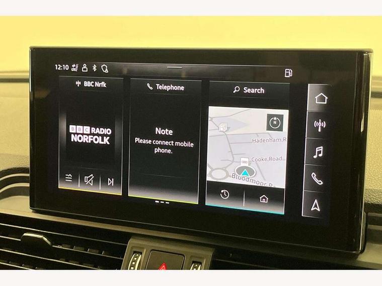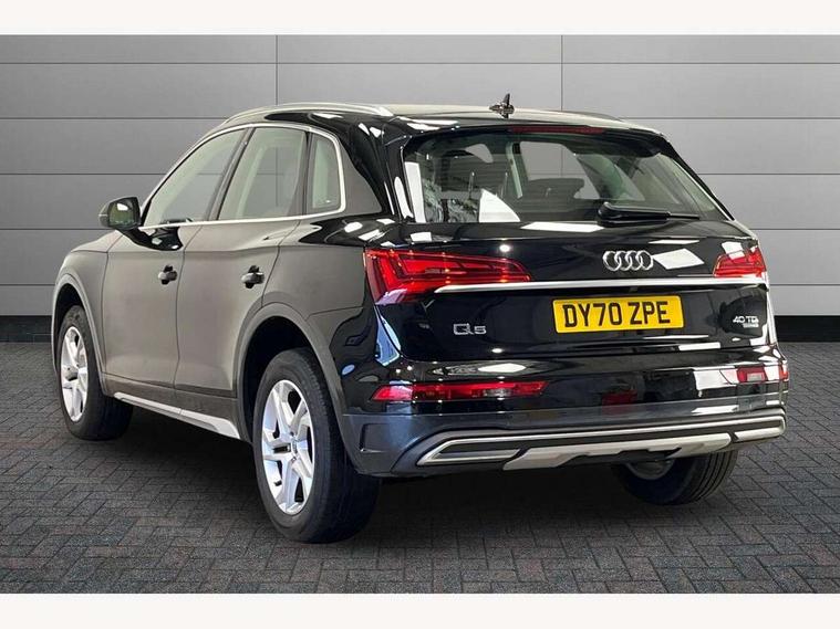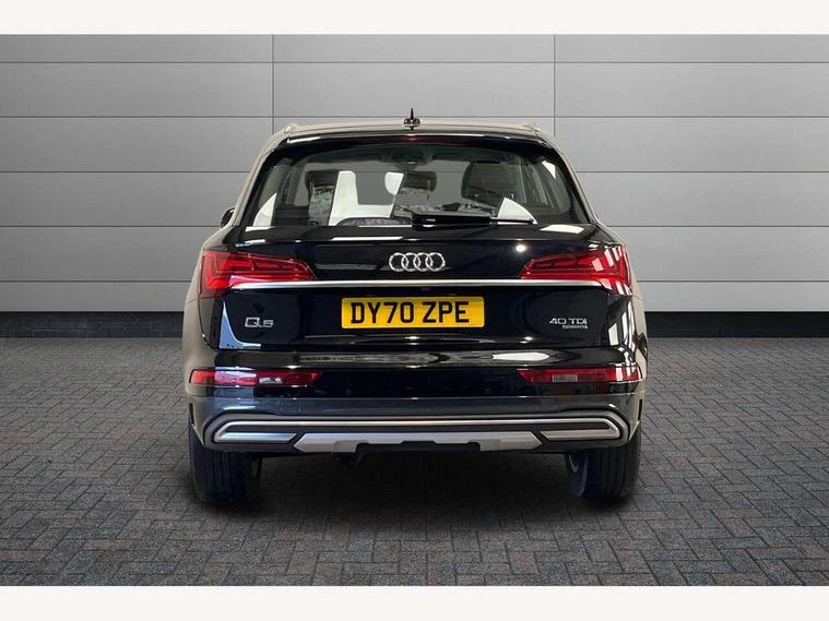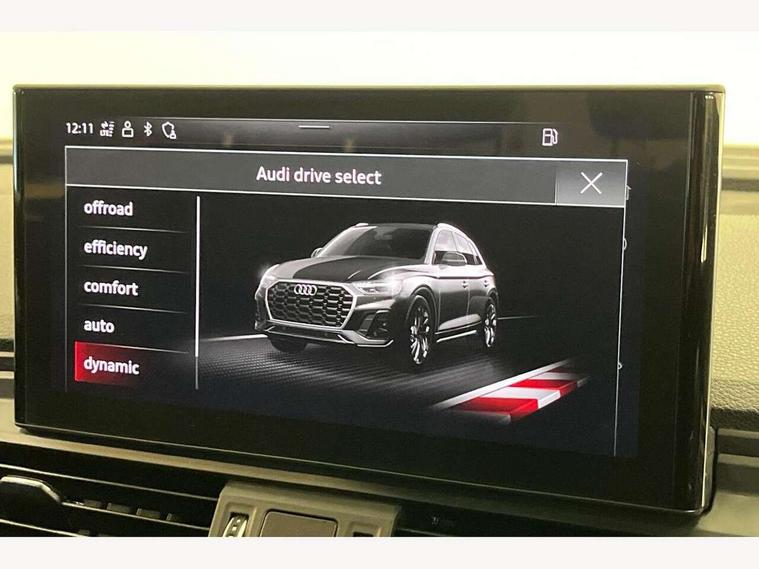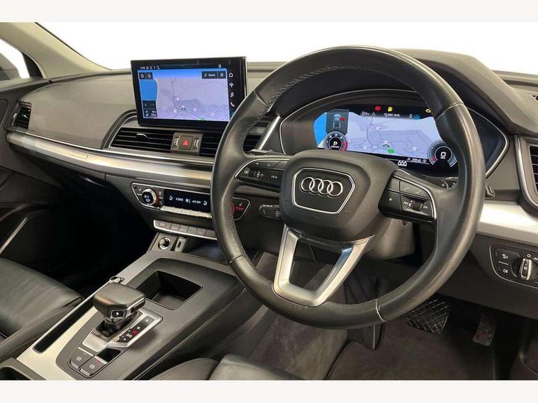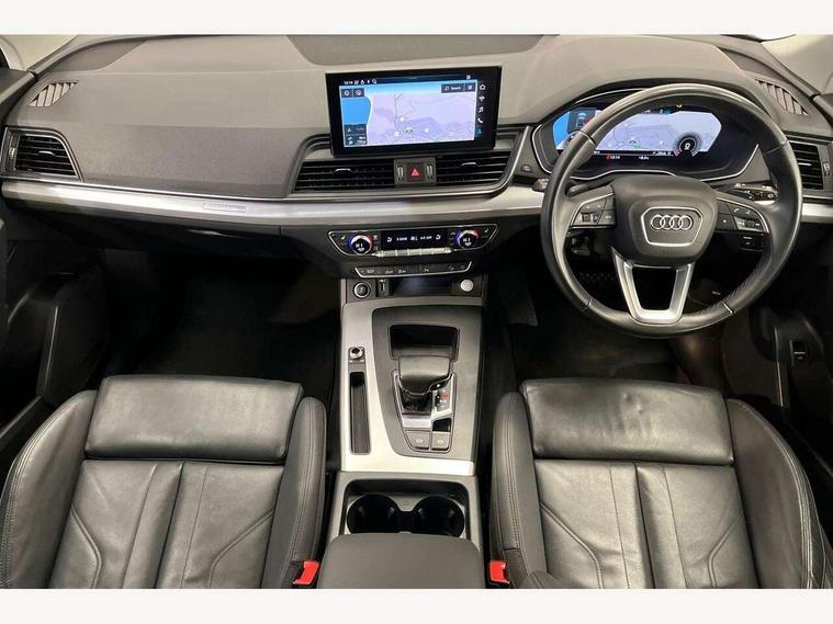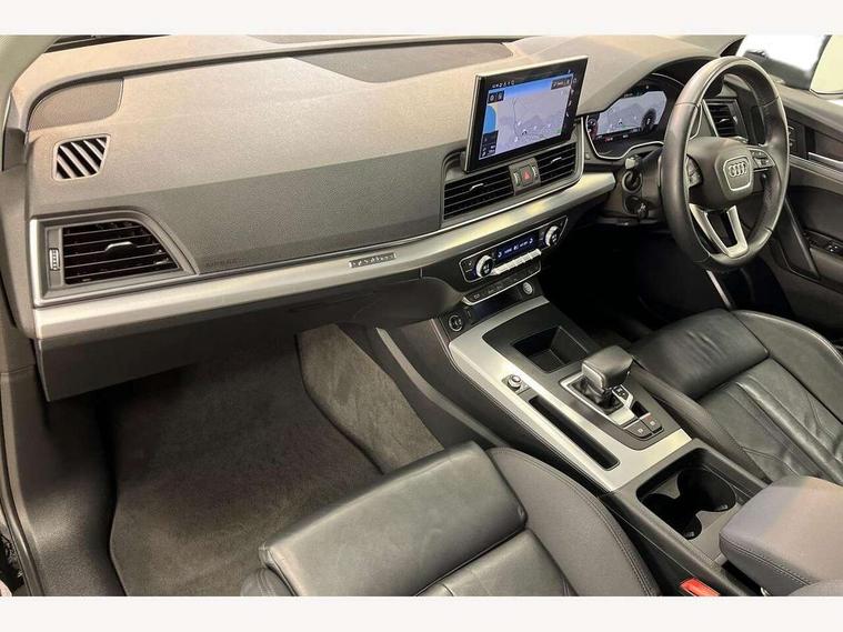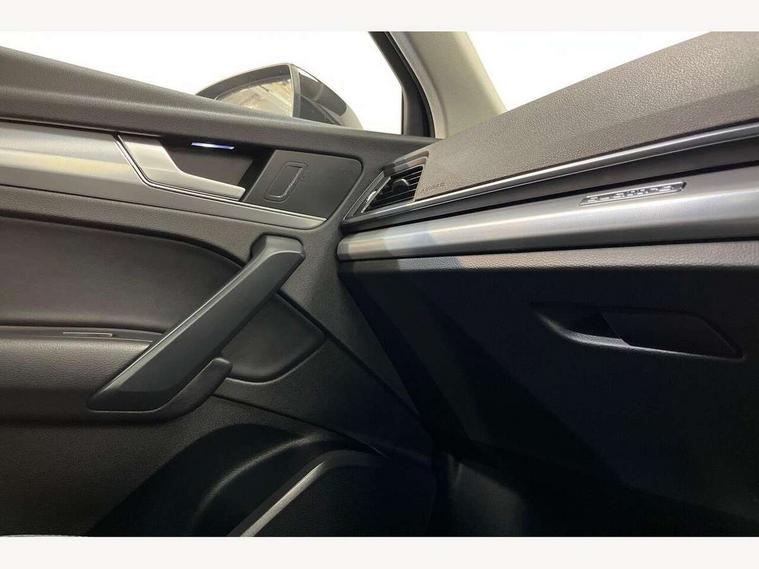 Amazon alexa Integration, Audi connect safety and service (e-call), Audi drive select, Audi virtual cockpit plus with 12.3" screen and three different layout designs, Audi wireless smartphone interface, Automatic start-stop system with coasting functionality and efficiency programme, Cruise control + speed limiter, Electro - mechanical power assisted steering, MMI navigation plus with 10.1" touch screen, Mobile telephone preparation - bluetooth interface, Power tailgate, Service interval indicator, Voice control system with Audi hotword activation "Hey Audi", Diesel particulate filter, Dynamic suspension, Quattro on demand, 2 x USB charging port with aux input socket, DAB Digital radio, Acoustic windscreen, Air inlets in matt titanium black with blades in matt aluminium silver, Aluminium roof rails, Auto dimming rear view mirror, Automatic headlight adjustment, Automatic headlights and windscreen wipers, Body colour bumpers, Body colour door mirrors, Chrome plated exhaust trims, Door sills in Selenite silver, Electric adjustable/heated/folding door mirrors, Front and rear electric windows, LED headlights and LED tail lights, Lower bumpers painted in contrast Manhattan grey, Matt selenite silver underbody protection, Matt twilight grey radiator grille with chrome vertical struts, Rear chrome trim strip below lights, Rear diffuser strip in selenite silver, Rear spoiler, Rear wiper, Roof bars, 3 rear headrests, 3 spoke multifunction leather steering wheel with shift paddles, 40:20:40 split folding rear seat with rear centre armrest, Deluxe 3 zone electronic climate control, Door sills trims with aluminium inlays, Front centre armrest, Front/rear floor mats, Heated front seats, Height adjustable front head restraints, Height/reach adjustable steering column, ISOFIX child seat mounting and top tether, Manual seat adjustment with 4-way electric lumbar support, Removable luggage compartment floor, Silver cloth headlining, Sunvisors with vanity mirrors, Trunk roller cover, Twin leather upholstery + front sports seats, High gloss pack - Q5, LED interior light pack - Q5, 3 point seatbelts on all seats, 6 airbags - Driver, front passenger, curtain and side airbags, Electrically operated child locks on rear doors, Electromechanical parking brake, Electronic stabilisation control including ABS, ASR and EDL, Front passenger airbag deactivation, Hill descent control, Hill hold assist, Multi collision brake assist, Pop-up bonnet for pedestrian protection, Pre sense city, Seat belt force limiter, Seatbelt monitoring, Tyre pressure warning, Warning triangle and first aid kit, Anti theft alarm, Anti-theft wheel bolts, Keyless Go access/ignition system, Aluminium rhombus inlay, Tool kit,