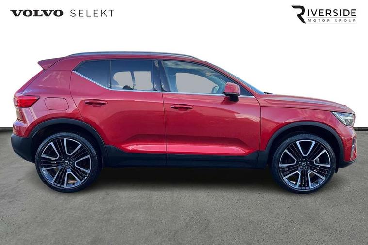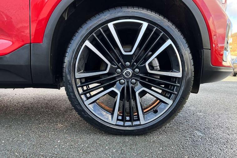 12.3" Progressive Driver Display, 360 degree surround view parking camera with side proximity sensors, 9" centre console portrait touch screen, Adjustable steering wheel force, Android auto (Wired), Apple carplay (wired), Bluetooth handsfree system, Driver alert control, Driver assistance (pilot assist and adaptive cruise control), Driver awareness - Blind spot information system with steer assist, cross traffic alert with autobrake and rear collision warning and mitigation, E-call, Front park assist, Google automotive services - Enabled entertainment apps, navigation with google maps, voice recognition with google assistant, Hands free power tailgate, Intelligent speed assistance, Lane keeping aid, Oncoming Lane Mitigation, Rear park assist, Speed sensitive steering, Volvo cars services with app - Driving journal, emergency and breakdown call, engine remote start, remote door locking/unlocking and vehicle dashboard, Wireless/Inductive Mobile Phone Charging, Automatic transmission with start/stop and manual change functions, Dynamic chassis, DAB Digital radio, Premium Sound by Harman Kardon, Dolby Pro Logic II Surround Sound, Dirac Unison, 12 speakers/600W and subwoofer, Steering wheel mounted remote controls, Active bending pixel LED headlights with adaptive shadow technology, Active high beam incorporating daytime running lights, Adaptive brake lights with high level LED brake lights, Auto dimming feature for exterior door mirrors, Auto dimming interior mirror, Automatic headlamp levelling, Dark tinted windows - rear side windows and rear screen, Front aluminium tread plates, Front and rear electric windows, Headlight cleaning system, High gloss black front and rear skid plate, High gloss black front bumper deco, High gloss black mesh front grille with high gloss black surround, High gloss black window trim, Home safe and approach lighting, Integrated roof rails in high gloss black, LED front fog lights with cornering function, Power glass tilt and slide panoramic sunroof with sun curtain, Puddle lights, Rain sensor with automatic windscreen wiper activation, Rear side wing doors, Rear wiper, Roof antenna, Roof spoiler, Visible VIN plate, 12V socket in front tunnel console and luggage compartment, 2-Zone electronic climate control with CleanZone air quality system and pollen filter, 3 seat bench in 2nd row, 3 Spoke tailored steering wheel with chrome trim, 60/40 versatile split folding rear seat, Centre console cupholders and storage, Flexible load floor and grocery bag holder, Floor mats, Front cabin courtesy lights, Front door pocket, front cupholder, ambient front door, rear reading, rear courtesy, instrument panel and tailgate lighting, Front footwell illumination, Front headrests, Front reading lights, Front seat cushion extensions, Front side step illumination (under door), Glovebox bag hook, Heated front seats, Height/reach adjustable steering column, High gloss centre tunnel deco, Illuminated glovebox, Illuminated luggage compartment, Illuminated vanity mirrors + ticket holder, Integrated waste bin, Isofix attachments on outer rear seats, Load cover, Load protection net, Multi directional lumbar support for driver and passenger seat, Power driver seat with memory + exterior mirrors memory, Power folding rear headrests, Power passenger seat, Rear armrest with cupholders, Single front passenger seat, Underfloor cargo storage, Climate pack without heated front seats - XC40, 3x3 point rear seatbelts, City safety with steering support with Pedestrian + cyclist + front collision warning with full auto brake and rear auto brake, Driver and passenger airbags, Drivers knee airbag, Electronic parking brake with auto hold, First aid kit, Front and outer rear seatbelt reminder and pretensioners, Front seats SIPS airbags, Hill descent control, Hill start assist, Inflatable curtain, Passenger airbag cut-off device, Power child locks on rear doors, Road sign information display, Run off Road Protection, SIPS (Side Impact Protection System), Slippery road and hazard light alert, Stability and Traction Control with Spin control, Engine Drag Control and Corner Traction Control, Tyre pressure monitoring system, Vehicle deceleration control with Anti-lock Brake System, Electronic Brake Distribution and Emergency Brake Assist, Warning triangle, WHIPS whiplash protection system - front, 2 x Key integrated remote control central locking including with deadlocking system and auto open/close windows and sunroof, Anti-theft alarm including immobiliser/volume sensor + level sensor, Keyless drive includes keyless entry and keyless start, Locking wheel nuts,