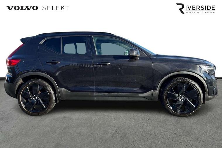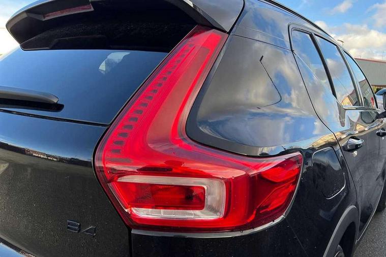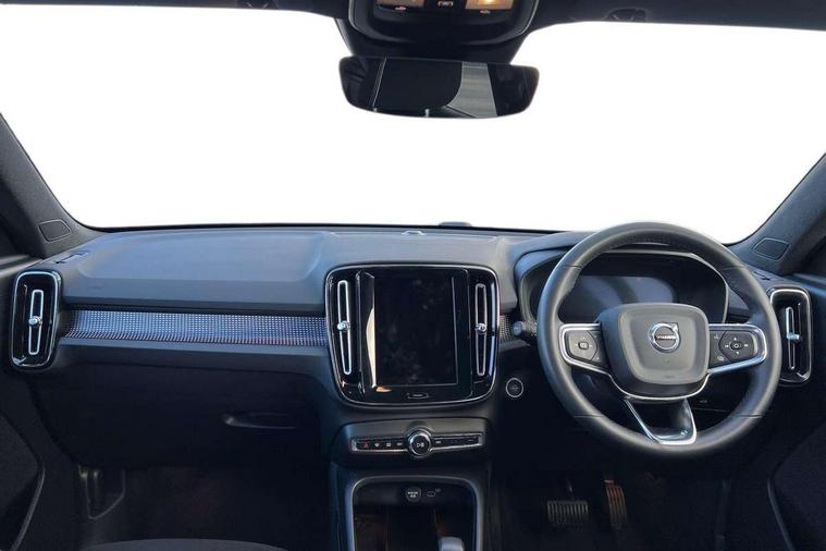 12.3" Progressive Driver Display, 9" centre console portrait touch screen, Adjustable steering wheel force, Android auto (Wired), Apple carplay (wired), Bluetooth handsfree system, Driver alert control, Driver assistance (pilot assist and adaptive cruise control), Driver awareness - Blind spot information system with steer assist, cross traffic alert with autobrake and rear collision warning and mitigation, E-call, Front park assist, Google automotive services - Enabled entertainment apps, navigation with google maps, voice recognition with google assistant, Hands free power tailgate, Intelligent speed assistance, Lane keeping aid, Oncoming Lane Mitigation, Rear park assist, Speed sensitive steering, Volvo cars services with app - Driving journal, emergency and breakdown call, engine remote start, remote door locking/unlocking and vehicle dashboard, Wireless/Inductive Mobile Phone Charging, Automatic transmission with start/stop and manual change functions, Dynamic chassis, DAB Digital radio, Steering wheel mounted remote controls, Adaptive brake lights with high level LED brake lights, Auto dimming feature for exterior door mirrors, Auto dimming interior mirror, Automatic headlamp levelling, Automatic LED Headlights + Active high beam incorporating daytime running lights, Colour coordinated auto folding and heated power door mirrors, Dark tinted windows - rear side windows and rear screen, Front aluminium tread plates, Front and rear electric windows, High gloss black front and rear skid plate, High gloss black front bumper deco, High gloss black front grille strikethrough and ironmark, High gloss black rear model, engine and volvo logo badges, High gloss black window trim, Home safe and approach lighting, Integrated roof rails in high gloss black, LED front fog lights, Puddle lights, Rain sensor with automatic windscreen wiper activation, Rear side wing doors, Rear wiper, Roof antenna, Roof spoiler, Visible VIN plate, 12V socket in front tunnel console and luggage compartment, 2-Zone electronic climate control with CleanZone air quality system and pollen filter, 3 seat bench in 2nd row, 3 Spoke tailored steering wheel with chrome trim, 60/40 versatile split folding rear seat, Centre console cupholders and storage, Charcoal headlining, Connect textile/microtech upholstery, Flexible load floor and grocery bag holder, Floor mats, Front cabin courtesy lights, Front door pocket, front cupholder, ambient front door, rear reading, rear courtesy, instrument panel and tailgate lighting, Front footwell illumination, Front headrests, Front reading lights, Front seat cushion extensions, Front side step illumination (under door), Glovebox bag hook, Heated front seats, Height adjustable passenger seat, Height/reach adjustable steering column, High gloss centre tunnel deco, Illuminated glovebox, Illuminated luggage compartment, Illuminated vanity mirrors + ticket holder, Integrated waste bin, Isofix attachments on outer rear seats, Load cover, Load protection net, Multi directional lumbar support for driver and passenger seat, Power driver seat with memory + exterior mirrors memory, Rear armrest with cupholders, Rear headrests, Single front passenger seat, Underfloor cargo storage, Climate pack without heated front seats - XC40, 3x3 point rear seatbelts, City safety with steering support with Pedestrian + cyclist + front collision warning with full auto brake and rear auto brake, Driver and passenger airbags, Drivers knee airbag, Electronic parking brake with auto hold, First aid kit, Front and outer rear seatbelt reminder and pretensioners, Front seats SIPS airbags, Hill descent control, Hill start assist, Inflatable curtain, Passenger airbag cut-off device, Power child locks on rear doors, Road sign information display, Run off Road Protection, SIPS (Side Impact Protection System), Slippery road and hazard light alert, Stability and Traction Control with Spin control, Engine Drag Control and Corner Traction Control, Tyre pressure monitoring system, Vehicle deceleration control with Anti-lock Brake System, Electronic Brake Distribution and Emergency Brake Assist, Warning triangle, WHIPS whiplash protection system - front, 2 x Key integrated remote control central locking including with deadlocking system and auto open/close windows, Anti-theft alarm including immobiliser/volume sensor + level sensor, Keyless drive includes keyless entry and keyless start, Locking wheel nuts, 20" 5 spoke high gloss black alloy wheels,