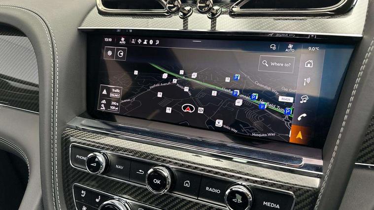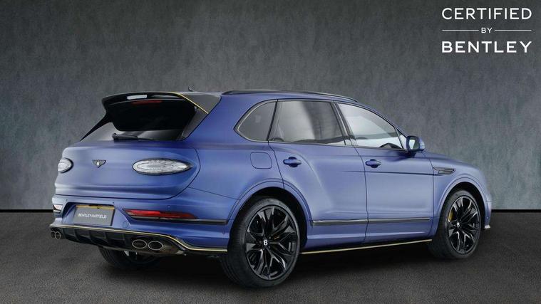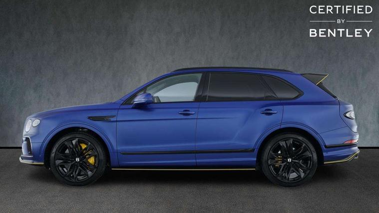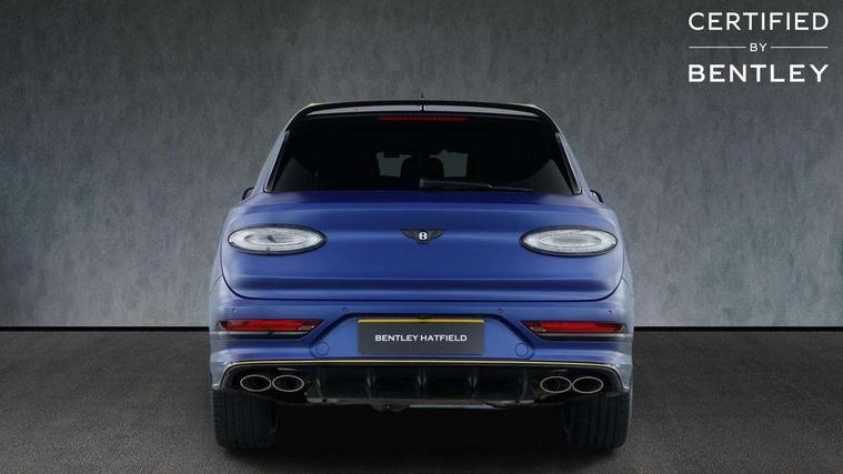10.9" touch screen high resolution and configurable infotainment display and digital drivers information display, Advanced navigation function with text, search, 3D, satellite maps, speed limit, dynamic traffic route guide, telephone, Text-speech + voice, Bentley branded clock, Bentley GPS tracking system full fitment, Bentley safeguard, Blind spot assist, Bluetooth and WIFI enabled, Emergency services call system, Four drive dynamics modes (bentley, comfort, sport, custom), Front/rear park distance control, Hands free power tailgate, MMI Screen, My Bentley connected car services, Power latching to all doors for easy entry, Redesigned instrument panel lower trim rolls, incorporating a storage compartment on the passenger side, Seamlessly integrated technology with wireless apple car play and android auto, Speed sensitive variable ratio electric power steering, Touch screen remote, Traffic jam assist, Voice control system, Wireless phone charging compartment, Air suspension with continuous damping control, Bentley Dynamic ride with electronic all wheel steer, Permanent all wheel drive with centre torsen differential, DAB Digital radio, 3rd brake light, Adaptive low beam, Auto dimming rear view mirror, Automatic headlights, Bentley badge in tailgate opening switch, Black painted shark fin aerial, Body colour door mirrors, Body coloured front lower bumper apron panel, Body coloured lower bodywork - Standard paint range, Bumper design with large side intakes and sculptured surfaces, Clamshell rear tailgate design with Bentley lettering under the wings, Elec/heat/adj/fold door mirror+memory, Electric tilt/slide panoramic sunroof, Fender design reduces over bodied perception, Fixed rear spoiler, Front and rear fog lamps, Full LED supplementary lamps and tail lamps, Full matrix LED headlamps with high beam assist, Full width clamshell design and deeply contoured rear tailgate panel, Heated rear windscreen, Illuminated treadplates, Jewel fuel and oil filler caps, Large dominant B shaped side wing vent front position, LED daytime running lights, Long fender vent above the power line on body side, Lower door side mouldings, Number plate aperture position under rear bumper, Oval split tailpipe, Phone antenna amplifier, Rain sensing wipers, Rear side wing doors, Rear wiper, Trailer sway mitigation, Tunnel detection for auto light control, V8 exterior badge, Wet arm wipers and heated water jets, 12V power in rear centre console, 12V socket in glovebox, 12V socket in luggage compartment, 3 seat bench in 2nd row, 4-Zone HVAC, Air Ioniser, Electric tilt and reach adjustment steering column with memory and easy entry function, Electronic accessory preparation, Embroidered Bentley emblems, Fluted seat design, Foams and cover design on all seats, Folding luggage compartment cover, Front and rear cupholders, Front head restraints, Indented steering wheel, Isofix attachments on outer rear seats, Key box, Load through facility, Lockable cooled glovebox, Luggage rails, Rear dual window switches, Rear seat climate control, Single front passenger seat, Sports pedals, Stowage with instrument panel, doors (front and rear), armrests and console, Twin front armrests, Two metal bulls eye vents with organ stops and redesigned centre vents, Two type C USB ports front and rear, Wing pockets for small items, 3 rear seatbelts, ABS/EBD, Child safety lock, EDL, Electronic park brake with move-off assist, Electronic tyre pressure monitoring, ESP + MSR + ASR, Exit warning, Front and rear head airbags, Front and rear thorax airbag system, Front passenger airbag deactivation, Front seatbelt pretensioners with force limiters, Hill descent function, Hydraulic Brake Assist (HBA), Rear outer seatbelt pretensioners with force limiters, Rollover mitigation, Side airbags, Traction control, Immobiliser, Keyless entry, Keyless ignition, Preparation for vehicle tracking, Remote central locking, Volumetric anti theft alarm, Veneered centre fascia panel,