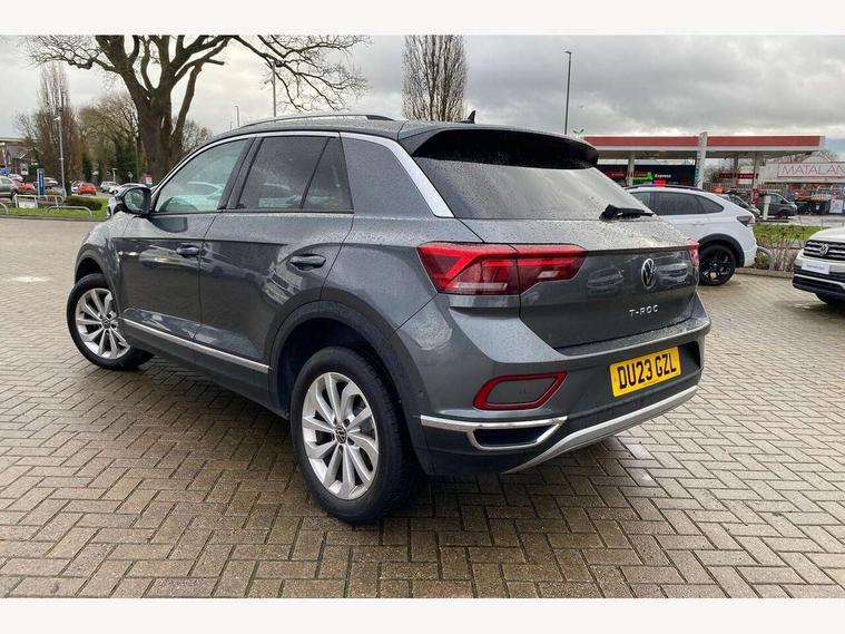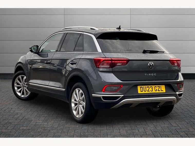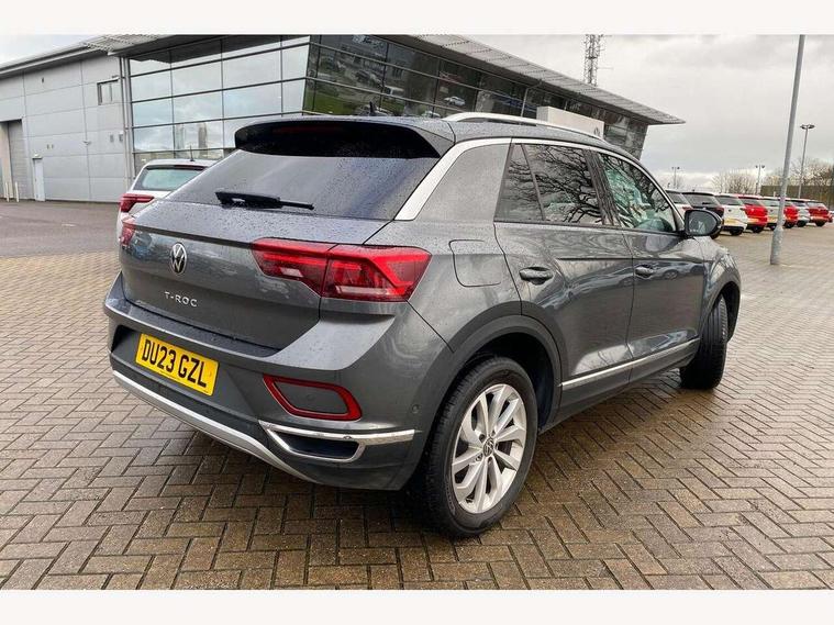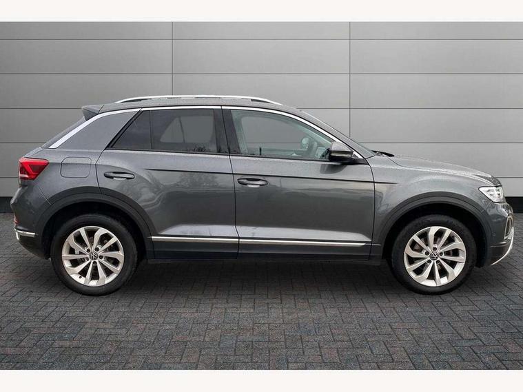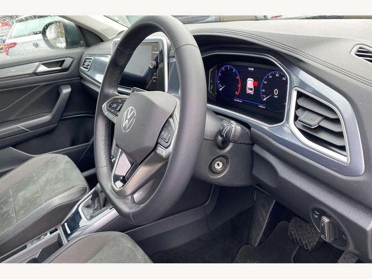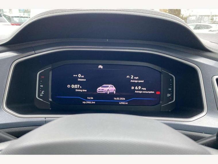10.25" Digital cockpit pro, Bluetooth mobile phone interface, Driver alert system with fatigue detection, Driver tips and journey analysis, Emergency call service, Lane keeping system Lane Assist, Modified key software - reduce switch off time for key status change to Long no motion, Online services, Park assist including front and rear parking sensors, Service interval indicator, Tailgate/trunk lid release from outside, Think blue trainer driver tips and journey analysis, Warning sound and light for front seatbelts unfastened, Wireless app connect, Battery regeneration during braking, Start/stop function with battery regeneration, Diversity antenna for FM reception, Music playback - MP3, WMA and AAC files, Premium USB cable in choice of either Apple or Android smartphone compatibility, SD card slot, Simultaneous pairing of 2 compatible mobile devices, Title and cover art display, We Connect and We Connect Plus functionality, 3rd brake light, Auto dimming interior rear view mirror, Automatic hazard lights activation under emergency braking, Automatic headlight control with LED separate daytime running lights with coming/leaving home function, Body colour sports bumpers with silver metallic underbody fascia, Dynamic headlight range control with self adjusting whilst driving, Extended roof spoiler, Exterior mirrors aspherical on driver side, convex on front passenger side, External USB type C socket and charging sockets, Front windscreen wiper with intermittent wipe and 4 position delay, Heated rear window, LED rear combination lamps, LED rear number plate lights, LED tail lamp rear comination lamps, Light mode for poor weather, rain, fog or snow, Power windows with comfort operation and circuit breaker, Rain sensor, Rear exhaust tailpipe, Rear fog light on one side and reversing lights on both sides, Rear side wing doors, Rear wash/wipe with intermittent wipe setting, Remote electrically foldable door mirrors, puddle lights and reverse activated passenger's door mirror, 12V power socket in centre console, 3 rear head restraints, 3 seat bench in 2nd row, 4 load lashing points in luggage compartment, Air care climatronic air conditoning system with active combination filter and 2-zone temperature control, Chrome plated radiator grille inserts, air vent surrounds and light switch surrounds, Door and side trim panel with leatherette insert, Drawer under drivers seat, Front + rear carpet mats, Front centre armrest, Front comfort sports seats, Front cupholders x 2, Front footwell illumination, Instrument lighting, white adjustable panel illumination, Interior ambient lighting and surround lighting, Interior light delay, Isofix child seat preparation, Leather gearshift handle, LED interior light with switch off delay/dimmer and 2 front/rear LED reading lights, Load-through provision with cup holder when folded down ('Unsplit rear seat bench, split folding backrest, with centre armrest), Luggage compartment lighting, Non-folding front passenger seat backrest, Single front passenger seat, Storage compartment in left and right luggage area, Storage compartment in rear doors, Storage compartments in driver and front passenger doors, Sunvisors with illuminated vanity mirrors, Variable boot floor, height adjustable and removable, Driver assistance pack without proactive passenger protection - T-Roc, 3 point height adj front seatbelts + pretensioners, 3 point seatbelts in outer rear with ECE label, ABS, Child locks on rear doors, Driver and front passenger airbag with front passenger airbag deactivation, Driver and front passenger safety-optimised head restraints, Drivers seatbelt reminder, Electronic parking brake, Electronic Stability Control (ESC) inc EDL (Electronic Differential Lock) and ASR (Traction Control), Front and rear passengers curtain airbag system including front side airbags, Front assist with city emergency braking and pedestrian monitoring, Front seat side impact airbags, Predictive pedestrian protection, Rear disc brakes, Single tone horn, Tyre pressure loss indicator, Volkswagen roadside assistance, Anti-theft alarm system with interior monitoring, backup horn, and towing protection, Remote central locking with SAFELOCK, radio remote control with 2 remote control folding keys, Trims for alloy wheels,