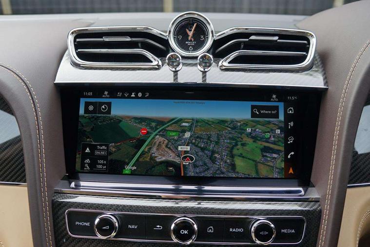 10.9" touch screen high resolution and configurable infotainment display and digital drivers information display, Advanced navigation function with text, search, 3D, satellite maps, speed limit, dynamic traffic route guide, telephone, Text-speech + voice, Bentley branded clock, Bentley GPS tracking system full fitment, Bentley safeguard, Blind spot assist, Bluetooth and WIFI enabled, Emergency services call system, Four drive dynamics modes (bentley, comfort, sport, custom), Front/rear park distance control, Hands free power tailgate, MMI Screen, My Bentley connected car services, Power latching to all doors for easy entry, Redesigned instrument panel lower trim rolls, incorporating a storage compartment on the passenger side, Seamlessly integrated technology with wireless apple car play and android auto, Speed sensitive variable ratio electric power steering, Touch screen remote, Traffic jam assist, Voice control system, Wireless phone charging compartment, Air suspension with continuous damping control, Bentley Dynamic ride with electronic all wheel steer, Permanent all wheel drive with centre torsen differential, DAB Digital radio, 3rd brake light, Adaptive low beam, Auto dimming rear view mirror, Automatic headlights, Bentley badge in tailgate opening switch, Black painted shark fin aerial, Body colour door mirrors, Body coloured front lower bumper apron panel, Body coloured lower bodywork - Standard paint range, Bumper design with large side intakes and sculptured surfaces, Clamshell rear tailgate design with Bentley lettering under the wings, Elec/heat/adj/fold door mirror+memory, Electric tilt/slide panoramic sunroof, Fender design reduces over bodied perception, Fixed rear spoiler, Front and rear fog lamps, Full LED supplementary lamps and tail lamps, Full matrix LED headlamps with high beam assist, Full width clamshell design and deeply contoured rear tailgate panel, Heated rear windscreen, Illuminated treadplates, Jewel fuel and oil filler caps, Large dominant B shaped side wing vent front position, LED daytime running lights, Long fender vent above the power line on body side, Lower door side mouldings, Number plate aperture position under rear bumper, Oval split tailpipe, Phone antenna amplifier, Rain sensing wipers, Rear side wing doors, Rear wiper, Trailer sway mitigation, Tunnel detection for auto light control, V8 exterior badge, Wet arm wipers and heated water jets, 12V power in rear centre console, 12V socket in glovebox, 12V socket in luggage compartment, 3 seat bench in 2nd row, 4-Zone HVAC, Air Ioniser, Electric tilt and reach adjustment steering column with memory and easy entry function, Electronic accessory preparation, Embroidered Bentley emblems, Fluted seat design, Foams and cover design on all seats, Folding luggage compartment cover, Front and rear cupholders, Front head restraints, Indented steering wheel, Isofix attachments on outer rear seats, Key box, Load through facility, Lockable cooled glovebox, Luggage rails, Rear dual window switches, Rear seat climate control, Single front passenger seat, Sports pedals, Stowage with instrument panel, doors (front and rear), armrests and console, Twin front armrests, Two metal bulls eye vents with organ stops and redesigned centre vents, Two type C USB ports front and rear, Wing pockets for small items, 3 rear seatbelts, ABS/EBD, Child safety lock, EDL, Electronic park brake with move-off assist, Electronic tyre pressure monitoring, ESP + MSR + ASR, Exit warning, Front and rear head airbags, Front and rear thorax airbag system, Front passenger airbag deactivation, Front seatbelt pretensioners with force limiters, Hill descent function, Hydraulic Brake Assist (HBA), Rear outer seatbelt pretensioners with force limiters, Rollover mitigation, Side airbags, Traction control, Immobiliser, Keyless entry, Keyless ignition, Preparation for vehicle tracking, Remote central locking, Volumetric anti theft alarm, Veneered centre fascia panel,
