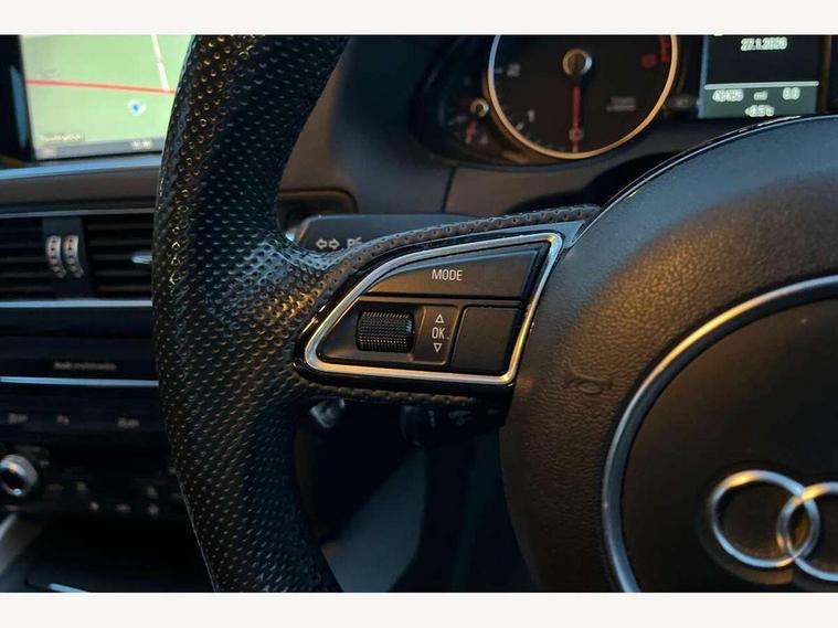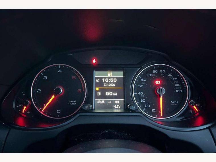 Driver information centre with colour display in instrument panel, MMI - Multi Media Interface control system, Service interval indicator, Servotronic speed related PAS, Diesel particulate filter, DAB Digital radio, Acoustic windscreen, Aluminium sill plates, Auto dimming rear view mirror, Body colour bumpers, Chrome exhaust tailpipe, Electrically adjustable and heated door mirrors, Front and rear electric windows, Front fog lights, Headlight range control, Headlight washers, LED rear lights, Light and rain sensor for auto activation of lights and windscreen wipers, Platinum grey rear diffuser, Rear spoiler, Rear wiper, S Line body styling, Towbar preparation, Xenon headlights with LED running lights, 3 rear headrests, 3 zone climate control, Front centre armrest with 12v socket, Front sports seats including electric lumbar support, Height adjustable driver's seat, Height adjustable front head restraints, Isofix front passenger and rear seat preparation, Reach + rake adjustable steering column, Split fold rear seat, 3 point seatbelts on all seats, ABS, Driver and passenger airbags, Driver and passenger side airbags, Electromechanical parking brake, ESP, First aid kit, Front passenger airbag deactivation, Hill descent control, Seat belt force limiter, Traction control, Tyre pressure monitor, Warning triangle, Locking wheel bolts, Remote central locking, Thatcham category 1 alarm + immobiliser, Tyre repair kit,