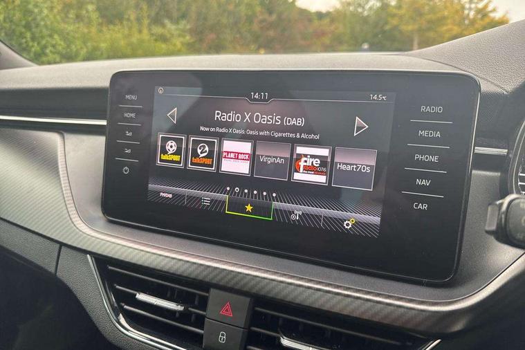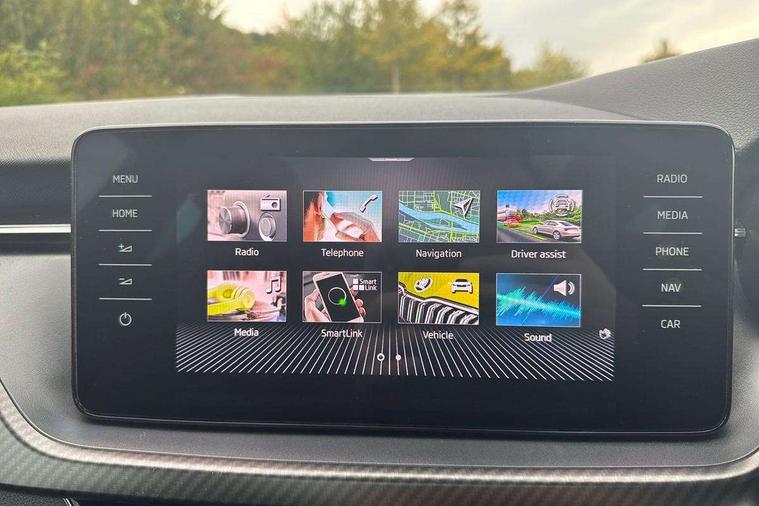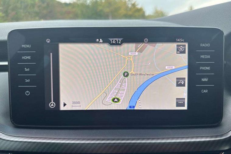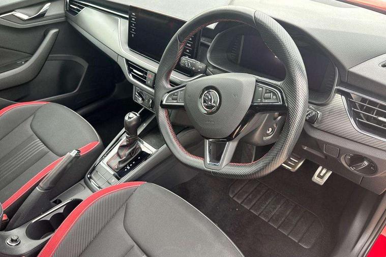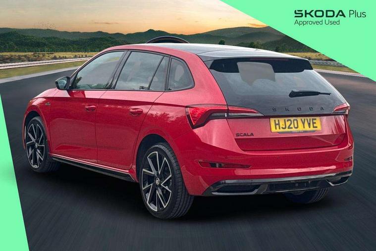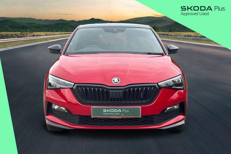 Amundsen satellite navigation with 9.2" glass colour touchscreen with virtual cockpit, Bluetooth system, Easy light assist, Front assist system, Lane assist, Monte carlo instrument cluster, Multi function trip computer, PAS, Rain and light assist with auto dimming rear view mirror, Speed limiter, 2 USB - C ports, 8 loudspeakers, Bolero radio with 8" touchscreen display, DAB Digital radio, Black door mirrors, Black radiator grille, Black rear diffuser, Black sill cover, Body colour door handles, Boot lettering in black, Electric folding door mirrors, Electrically adjustable and heated door mirrors, Front and rear electric windows, Front fog lights, Front sport bumper, LED daytime running lights, LED rear lights with dynamic indicators, Monte carlo plaque, Privacy glass, Skoda across tailgate in black, Tinted windows, 12V Accessory socket in centre console, Aluminium pedals, Black roof lining, Chrome inner door handles, Chrome on gear and handbrake lever, Cloth upholstery, Decor strip on dashboard and door panel, Door sills with lettering, Front gesture control, Front head restraints, Front sport seats, Glasses storage in roof liner, Height adjustable passenger seat, ISOFIX for rear passenger seat, Leather gearknob and handbrake lever, Leather multifunction sport steering wheel, Manual lumbar support for front seats, Reading lights for driver and front passenger, Sun visor with make up mirror for front passenger, Textile floor mats, Third rear headrest, Umbrella, Exterior design pack - Scala, 3x3 point rear seatbelts, Curtain airbags, Emergency call and proactive services, Front head and side airbags, Hill hold control, Passenger airbag switch off function, Seat belt reminder for all seats, Two tone horn, Alarm, Anti-theft wheel bolts, SAFE function for remote central locking, Chrome air vent surrounds, 18" Vega alloy wheels in black, Temporary space saver wheel,