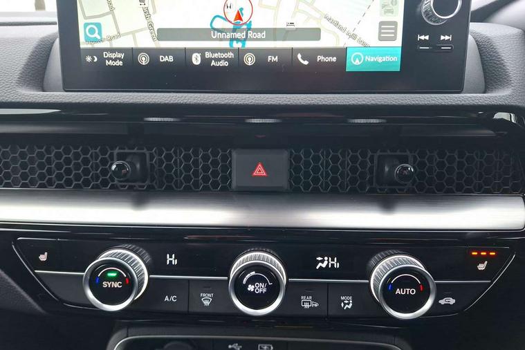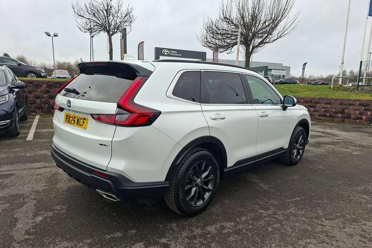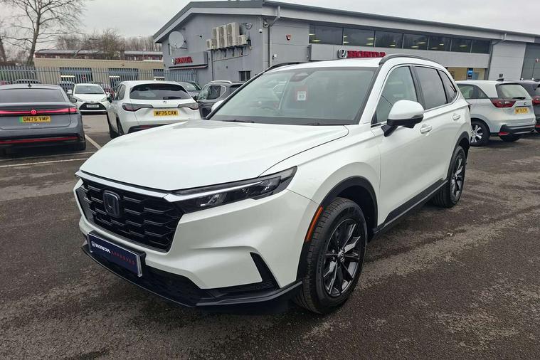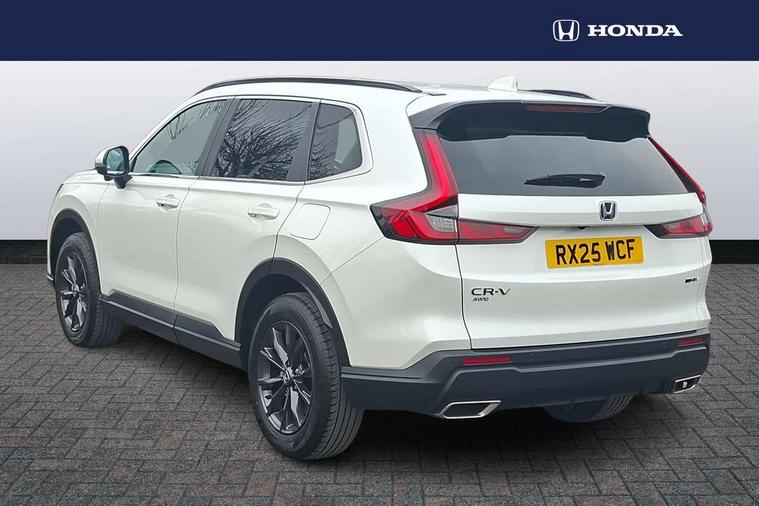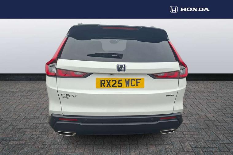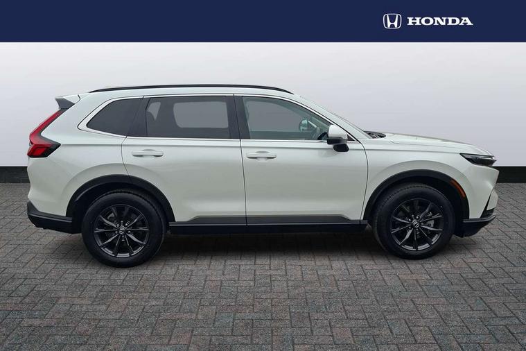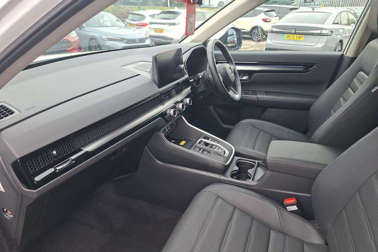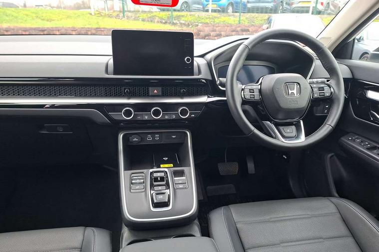 10.2" Multi information display, 4 x front and 4 x rear parking sensors, Active lane change assist, Adaptive cruise control with Cornering speed assist, Adjustable speed limiter, Agile handling assist, BLIS (Blind Spot Information System) with Cross Traffic Monitor, Bluetooth hands free telephone connection, Crossing traffic warning front, Drive mode (Econ, Normal, Snow, Sport), Driver attention monitoring system, E-call, eCall emergency call system, Electric power steering, Emergency stop signalling system, Forward collision warning, Handfree power tailgate with kick sensor and walk away close, HEV mode, Honda 360 sensing, Honda CONNECT with Navigation 9" touchscreen, AM/FM/DAB, Apple Carplay and Android Auto, live traffic info, Intelligent speed limiter, Lane change collision mitigation, Lane departure warning system, Lane keep assist system, Lane watch, Lead car departure notification system, Low speed following, Power meter, Rear view camera, Road departure mitigation, Traffic jam assist, Traffic sign recognition, Wireless apple carplay, Wireless charging, Amplitude reactive damper, Vehicle stability assist, 1X USB (A/2.5A) and 1x Charger (C/3A) on Front, 8 Speakers, DAB+ radio, Dashboard centre speaker, Front tweeters, Premium audio speakers, Rear USB 2x Charger (C/3A), Steering wheel mounted controls, Auto dimming rear view mirror, Auto headlights, Auto wipers, Body colour bumpers, Body colour door handles, Body colour plus material colour roof spoiler, Body coloured shark fin antenna, Chrome + black paint grille, Electrically adjustable and heated door mirrors, Electrically folding door mirrors, Exhaust pipe finisher, Exterior mirror tilt for reverse, Front and rear electric windows, Front LED Indicator lights, Front turn type led with sequential, Headlight auto on/off timer, High beam assist, LED 3rd brake light, LED daytime running lights, LED front fog lights, LED Headlights, LED rear lights, Low gloss black window garnish, Panoramic opening glass sunroof, Privacy glass, Rain sensor, Rear side wing doors, Rear wiper, Roof rails, Trailer stability assist, Welcome home function, 3 seat bench in 2nd row, 4 way driver lumbar support, 4 way electrically adjustable passenger seat without height adjust, 60/40 split folding rear seat, 8 way electrically adjustable drivers seat, Accessory sockets in Front & Trunk, Air conditioning - Rear vent, Ambient light in roof, Cargo net hooks, Courtesy lights, Driver and front passenger seat armrests, Driver/passenger front seatback pockets, Driver/passenger sunvisors and vanity mirrors, Driver/passenger sunvisors with illuminated vanity mirrors, Dual zone automatic climate control, Film hairline interior panels, Footwell ambient interior light front and rear, Front and rear ambient light (door handle&door line) and front cup holder, Front centre armrest, Front map lights, Genuine leather steering wheel, Heated front seats, Heated steering wheel, Hybrid emblem, I-Size ISO Fix Points, Instrument panel with garnish wood film, Leather upholstery, Light roof lining, Luggage floor box, Meter illumination, Normal pedals, Platinum chrome interior door handles, Rear centre armrest, Rear headrests, Rear reading lights, Reclining rear seats, Single front passenger seat, Sunglasses holder, Synthetic headrest, Tilt/telescopic adjustable steering wheel, Tonneau cover, Trunk light, Exclusive styling pack - CR-V, 5 x 3 point seatbelts, ABS/EBD, Anti-whiplash front headrests, Brake assist function, Collision mitigation braking system, Deflation detection system, Driver airbag, Driver SRS airbag (single stage inflation), Electronic parking brake with auto hold, Front and rear collision mitigation throttle control, Front and rear curtain airbags, Front and rear seat belts with emergency locking retractor (ELR), Front centre airbag, Front passenger airbag, Front side airbags, Hill descent control, Hill start assist, Knee airbags (DR) and (AS), Low speed brake system, Manual child lock in rear doors, Paddle deceleration control, Passenger SRS airbag with cut off switch, Rear side airbags, Honda super locks, Immobiliser, Mirrors and windows key fob operation, Remote central locking with 2 key fobs, Security alarm, Selectable door unlock, Smart entry + Smart start, Tilt sensors, Ultrasonic security sensor, Flat tyre solution temper tyre/repair kit,