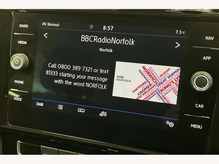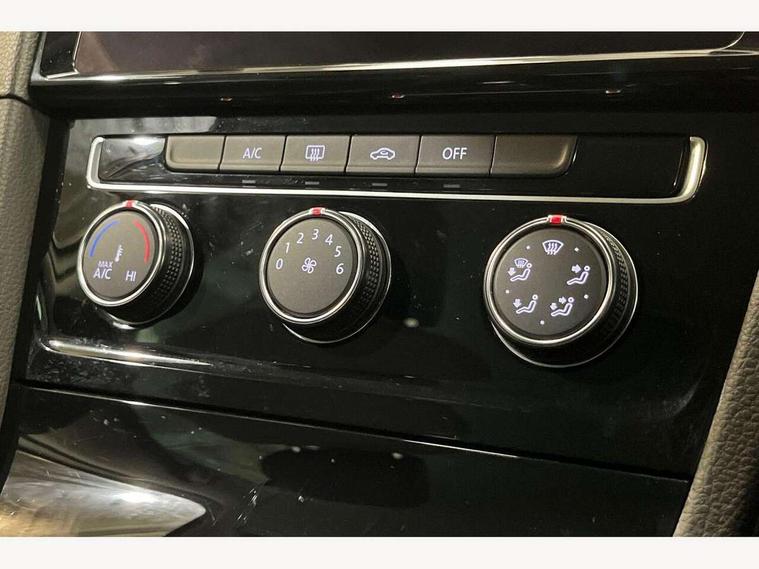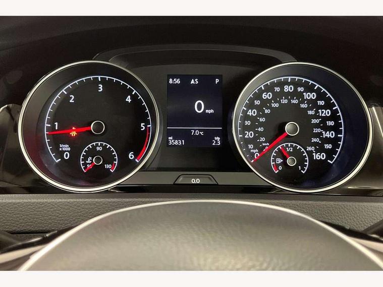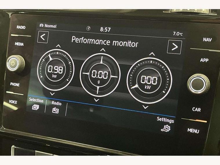 'Lights On' Reminder warning buzzer, 8" touch screen, Adaptive Cruise Control with pedestrian detection and speed limiter, Bluetooth hands free telephone connection, Brake pad wear indicator warning light, Drive mode selector, Driver alert system, Driver profile selection, Exterior temperature gauge, Instrument cluster in white, Multifunction computer, PAS - speed related, Rev counter, Trip and service interval display, Ultrasonic front and rear optical and audible parking sensors, Warning buzzer and light for front seatbelts unfastened, Diesel particulate filter, Lowered sports suspension, XDS electronic differential lock, CD/MP3/WMA, USB and SD card reader, aux-in, Composition media system, DAB Digital radio, Auto dimming rear view mirror, Automatic coming/leaving home lighting function, Automatic headlights, Black front air intake and radiator grille with chrome insert, Black rear diffuser, Body colour bumpers, Body colour door handles, Body colour door mirrors, Chrome grille surround, Electric front windows, Electric rear windows, Electrically adjustable and heated door mirrors, Heat insulated tinted glass 65% light absorbing from B pillar back, Heated rear windscreen, LED daytime running lights, LED front fog lights with static cornering light function, LED rear lights, Rain sensor, Rear roof spoiler, Rear windscreen washer and wiper with interval delay, Silver roof rails, 12V socket in luggage compartment, 3 rear headrests, 3 spoke steering wheel, 60/40 split folding rear seat, Bag hook in luggage compartment, Boot lashing points, Cooled glovebox, Courtesy light delay, Cover for storage compartment in centre, Dust/pollen filter, Front + rear carpet mats, Front centre armrest with storage box and rear air vents, Front passenger seat height adjust, Front seat back storage pockets, Gearshift paddles, Grab handles, Height/reach adjust steering wheel, Illuminated vanity mirrors, Isofix preparation for 2 rear child seats, Load through provision with rear centre armrest and cupholders x2, Luggage compartment cover, Luggage compartment lighting, Multifunction leather steering wheel with leather gear knob/handbrake grip, Overhead storage box, Pearl grey headlining, Storage compartments in doors, Sun visors, Variable boot floor, height adjustable and removable, Ambient lighting pack - Golf, Mirror pack - Golf, 3 point height adj front seatbelts + pretensioners, 3 rear 3 point seatbelts, ABS, Automatic post collision braking, Child locks on rear doors, Driver/Front Passenger airbags, Driver/Passenger whiplash optimised head restraints, Drivers knee airbag, Electronic parking brake with auto hold, ESP with EDL + ASR, Front and rear curtain airbags, Front assist including city emergency braking, Front passenger airbag deactivation, Front side airbags, Pre crash system, Tyre pressure monitor, Alarm with interior protection, Electronic engine immobiliser, Locking wheel bolts, Remote central locking with 2 remote folding keys, Chrome-plated light switch surround, Piano black centre console, Tumbler decorative inserts, Steel space saver spare wheel,