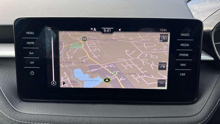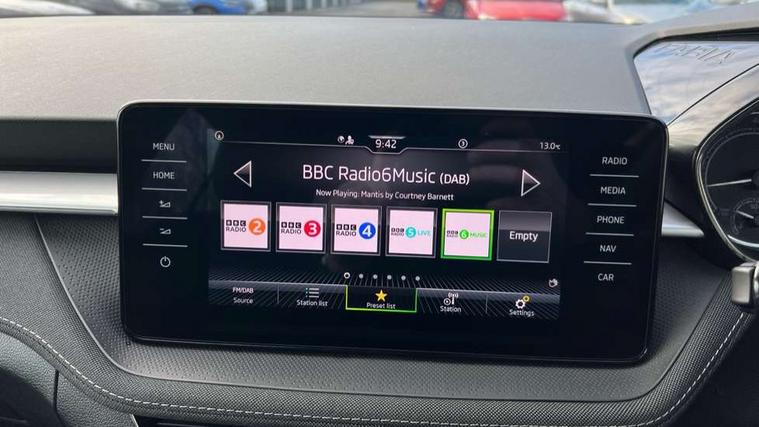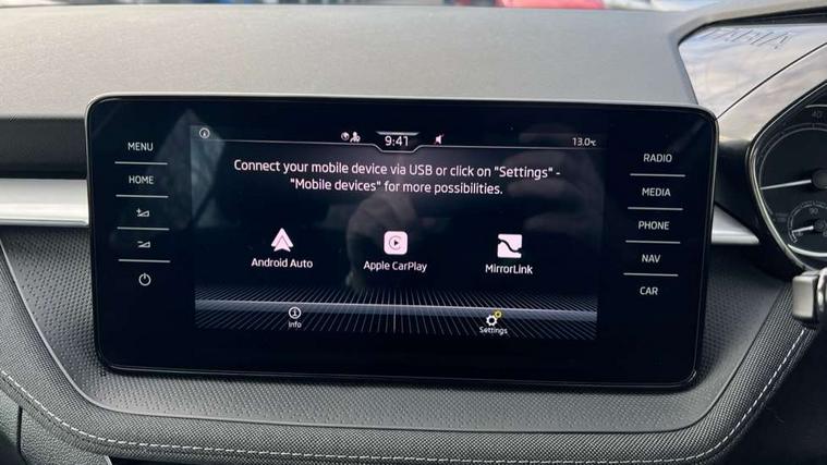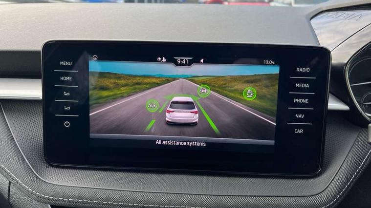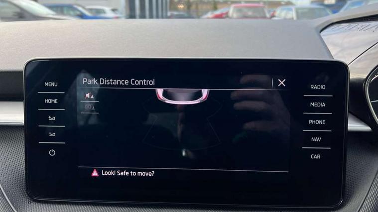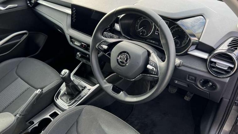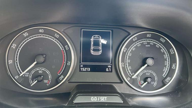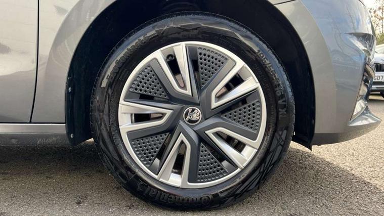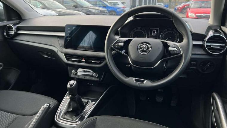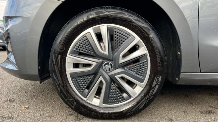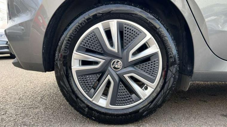 Bluetooth connection, Driver alert system - DAS, Electromechanical power steering, Exterior temperature gauge, Service interval indicator, 2x USB-C in the front (for data transmission and charging), 6 Speakers (4 in front and 2 in rear), Auxiliary socket for external MP3 player, DAB digital radio reception, Web radio, Auto dimming rear view mirror, Basic LED Headlights, Body colour door mirrors, Body coloured bumpers, Chrome window surround, Door mirror integrated indicators, Electrically adjustable and heated door mirrors, Front and rear electric windows, Front fog lights, Front window wiper intermittent control, Headlight range control - Automatic, Ice scraper in fuel cap, LED daytime running lights with coming and leaving home feature, Rain sensor, Rear LED fog light, Rear side wing doors, Rear window wiper with washing nozzles, Roof mounted spoiler, SKODA tailgate lettering in chrome, Third brake light, 3 rear headrests, Backrest split and folding, Central console with fixed cup holder and storage box, Chrome handbrake release button, Comfort seats, Fabric upholstery, Front centre armrest, Gearshift knob/handle in leather, Hand brake lever handle in leather, Height adjustable front headrests, Height adjustable front seats, Height adjustable steering wheel, ISOFIX and TopTether anchorage points to the outer rear seats, ISOFIX and TopTether on the front passenger seat, Luggage compartment lighting, Manually adjustable lumbar support in front seats, Pollen filter, Rear seat bench unsplit, Removable cup holder, Single front passenger seat, Storm grey headlining, Sun visors with mirror and airbag label on passenger side, Textile floor mats, Ticket holder, Umbrella in drivers door, 3-point height adjustable front seats belts with pretensioner and force limiter, Automatic warning lights in case of crash, Driver and passengers airbag with switch off function, e-Call+, ESC including ABS, MSR, ASR, EDS, HBA and XDS, Front and rear seat belt warning, FRONT ASSIST (AEB City and AEB Inter Urban), Front side airbags, Head airbags, One tone horn, Pedestrian protection, Three rear 3-points safety seat belts with pretensioner and force limiter including stop function for outer rear seat belts, Tyre pressure monitoring system, Anti-theft alarm system including immobiliser, interior monitoring, backup horn, and towing protection, Central locking with radio remote control, interior controls, SAFE function and 2 foldable keys, KESSY - Keyless engine start/stop, Chrome edged air vents, Satin black door and side trim panel in front, Anti-theft wheel bolts protection, Super-low rolling resistance tyres,