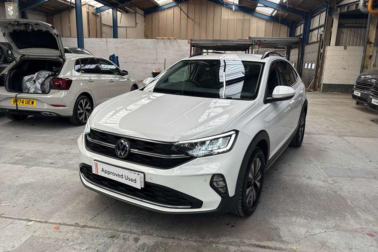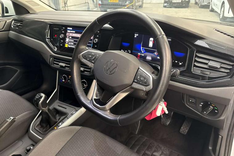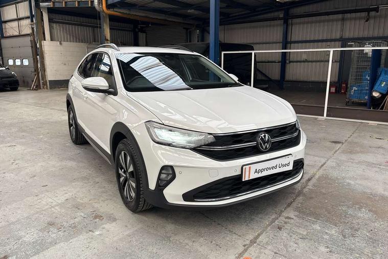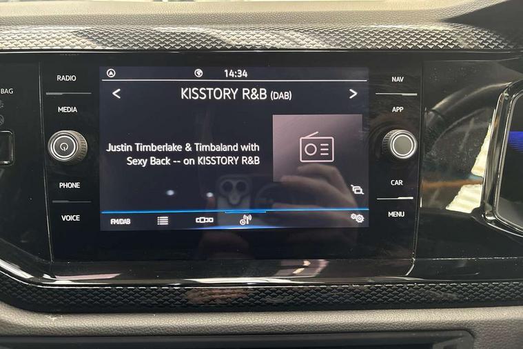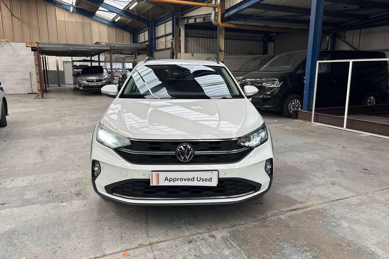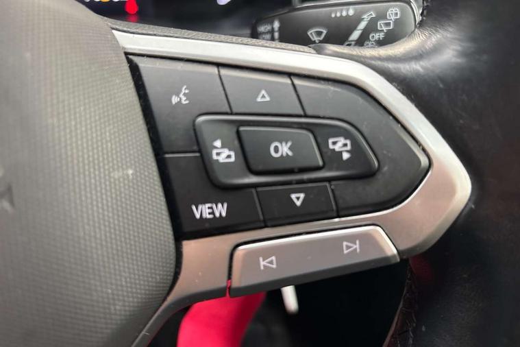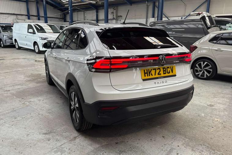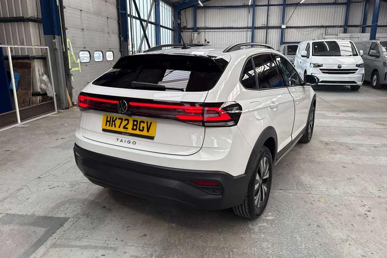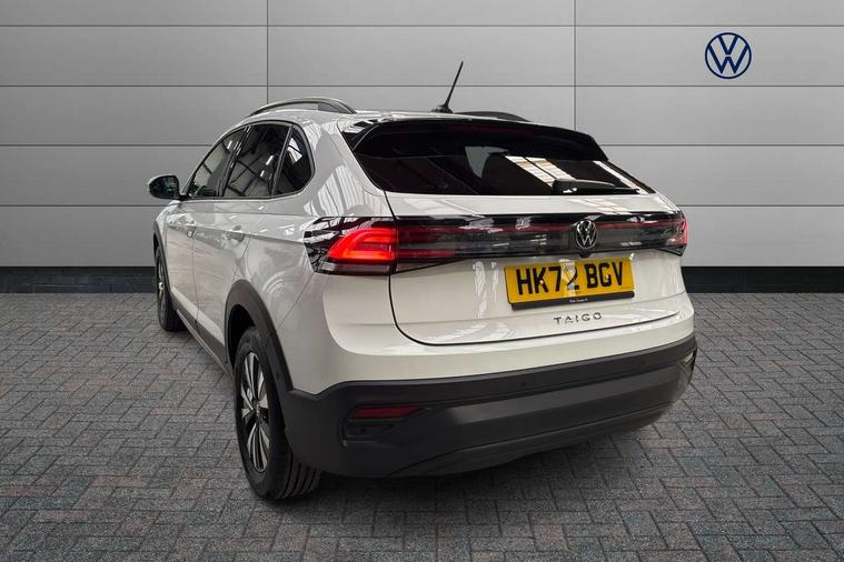 Driver alert system, e-Call (emergency call), Power Steering, Travel assist including emergency assist, Washer fluid level indicator, Wireless Charging including Bluetooth, Start-stop system with battery regeneration (recuperation - energy recovery during braking), WeConnect plus, Ambient lighting with logo projection, Aspherical driver's exterior mirror, Auto headlights, Body coloured bumpers, Body coloured exterior mirror housings and door handles, Electric windows, External USB type C socket and charging sockets, Front fog lamps with cornering function, Headlight range control, Heat insulating glass windscreen, LED headlamps, LED rear combination lamp, LED third brake light, Left convex exterior mirror, Power folding adjustable/heated exterior mirrors and front passenger exterior mirror lowering function, Rear fog light on one side, reversing light on both sides, Rear side wing doors, Rear wash/wipe with intermittent wipe setting, 'Slash/ Austin' Cloth upholstery, 12V socket in centre console, 2 front reading lights, 3 rear head restraints, 3 seat bench in 2nd row, Black carpets, Child seat anchor for child seat system i-Size, 2x top tether and child seat anchor in front on front passenger side, Door and side trim panels in titan black, Driver and front passenger seat height adjustment, Front centre armrest, Handbrake lever handle in leather, Height and reach adjustable steering wheel, Leather trimmed gear knob, Leather wrapped multifunction steering wheel, Luggage compartment floor, Luggage compartment light, Lumbar support for driver's and front passengers seat, Seat covers in titanium black, Single front passenger seat, Split folding backrest with centre armrest and unsplit rear seat bench, Storage compartment under front seats, Sun visors with illuminated vanity mirrors, Chrome Package - Taigo, Drivers assistance pack - Taigo, Light and Sight pack including High beam assist - Taigo, 2 x 3-point seatbelts/outer rear seats with ECE label, 3-point seat belts in front with pretensioner and height adjustment, 3-point seatbelt for centre rear seat, Driver and front passenger airbags with front passenger airbag de-activation, front side and curtain airbags, Driver and front passenger safety-optimised head restraints, Electronic stability control, Extended and predictive pedestrian/ cyclist protection, Front and rear disc brakes, Front curtain and side airbags with center airbag, Hill start assist, Manual rear child locks, Single tone horn, Tyre pressure loss indicator, Anti-theft alarm system with interior monitoring, backup horn, and towing protection, Anti-theft wheel bolts, Lava stone black gloss/matt decorative inserts in dash and front door panels, Low rolling resistance tyres,