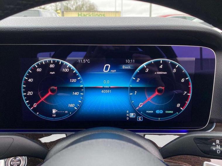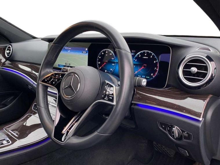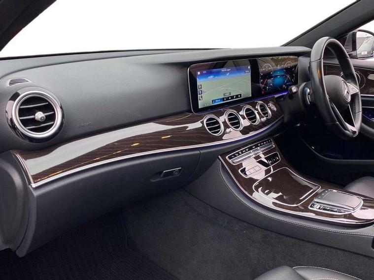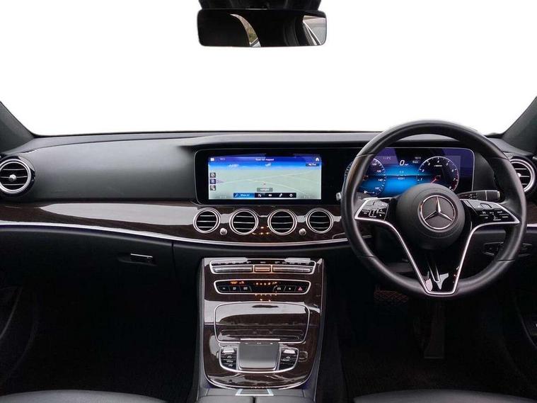 Attention assist, Blind spot assist, Brake wear warning display, Cockpit display 10.25" widescreen digital instrument cluster, Cruise control with variable speed limiter, Direct steer speed sensitive steering, DYNAMIC SELECT with a choice of driving modes (ECO, Comfort, Sport, Sport+ and Individual), ECO start/stop function, Emergency services call system, High resolution 10.25" multimedia colour display, MBUX voice control activated by keywords "Hey Mercedes", Mercedes connect me, Outside temperature display, Remote boot release, Service indicator (ASSYST), Smartphone integration via Android Auto/Apple CarPlay, Media Interface, USB and Bluetooth interface, Status display for rear seat belts in instrument cluster, Touchpad with controller, Traffic sign assist, Trip computer in multifunction display showing current fuel consumption, Wireless charging, 9G TRONIC 9 speed automatic transmission, Agility control sports suspension with selective damping system and lowered by 15mm, 2 USB ports in centre console, 2 USB ports in the rear, MBUX multimedia system with DAB digital radio and touchpad including satellite navigation, 3rd brake light, Adaptive brake lights, Aerial integrated in rear window, Body colour door mirrors, Chrome trim on the front bumper and high gloss black trim on the rear bumper, Electric windows with one touch opening/closing and obstruction sensors, Electrically adjustable and heated door mirrors, Green tinted glass, Illuminated front door sill panels with Mercedes-Benz lettering, LED High Performance headlamps including integral LED daytime running lamps and adaptive highbeam assist, LED rear lights, Pre-installation for roof rail systems, Radiator grille with chrome surround, two chrome louvres plus vertical bars with high-gloss black front edge and integral Mercedes star, Rain sensor with automatic headlight activation, Rear boot, Rear side wing doors, Tail lights, Top surround of side windows in polished aluminium, Visible twin pipe exhaust system integrated into bumper, 3 seat bench in 2nd row, 3 spoke multifunction steering wheel trimmed in nappa leather with touch control buttons, 40:20:40 split folding rear bench seat, Auto dual-zone climate control system, Automatic child seat recognition sensor, Black door pins, Central stowage compartment with 12 V socket in centre console, USB socket for use with Android Auto and Apple CarPlay, Courtesy lights in rear grab handles with reading light functionality, Four way partially front electric seat adjustment, Front centre armrest with stowage compartment, Glasses compartment in overhead control panel, Glove compartment - lockable, air conditioned and illuminated, Head restraints for driver and front passenger (four-way adjustability) and in rear (two-way), Heated front seats, Interior lighting - 64 colour Ambient lighting, Leather upholstery, Seat occupancy sensor for front passenger seat, Single front passenger seat, Steering column manually adjustable for height and reach, Steering wheel multifunction with gearshift paddles, Steering wheel touch control buttons for audio and onboard settings, Sunvisors with illuminated vanity mirrors, Velour floor mats, Mirror pack - E Class, Parking package with reversing camera - E Class, Seat comfort pack - E Class, Stowage pack - E Class, 3x3 point rear seatbelts, Active bonnet pedestrian safety measure which detects an impact and raises bonnet, Active brake assist, Adaptive brake system with HOLD function and brake drying in the wet, Airbags - sidebag for driver and front passenger with combined thorax/pelvis bag, Anti-lock braking system (ABS), Childproof locks manually operated for rear doors and electrically operated for rear power windows, Driver and adaptive front passenger airbags, Drivers knee airbag, Electronic parking brake, Electronic Stability Programme, Hill start assist, ISOFIX child seat attachment points two outer rear seats, Pre-Safe anticipatory safety system, Tyre pressure monitoring system, Warning triangle and first aid kit, Window airbags, Alarm system/interior protection/immobiliser, Central locking with interior switch, automatic locking and crash sensor with emergency opening function, Chrome surround in electric key, Keyless entry go starting function, Brown high glass ash wood trim and centre console in high gloss brown ash wood, 17" 5 spoke alloy wheels painted in black with a high-sheen finish, Summer tyres, TIREFIT with tyre inflation compressor,