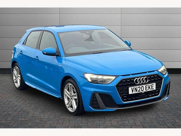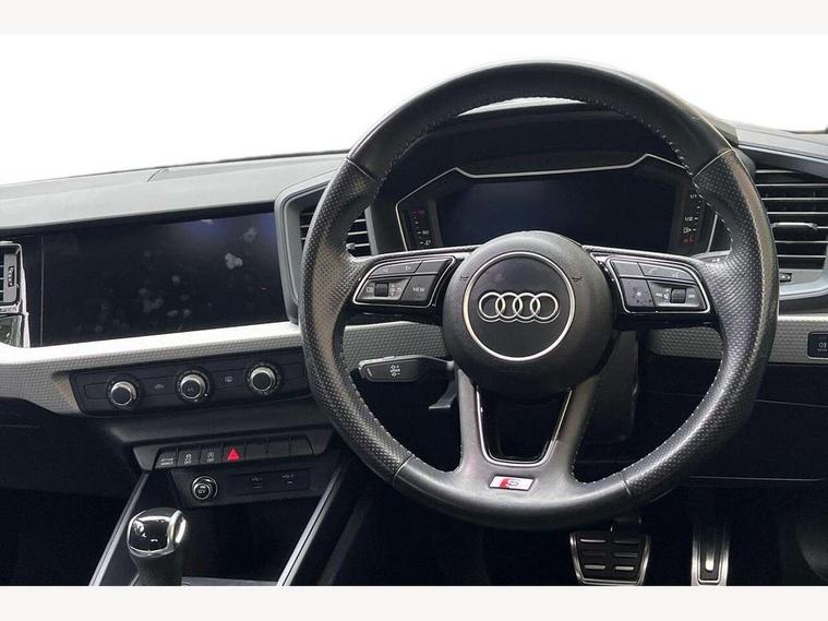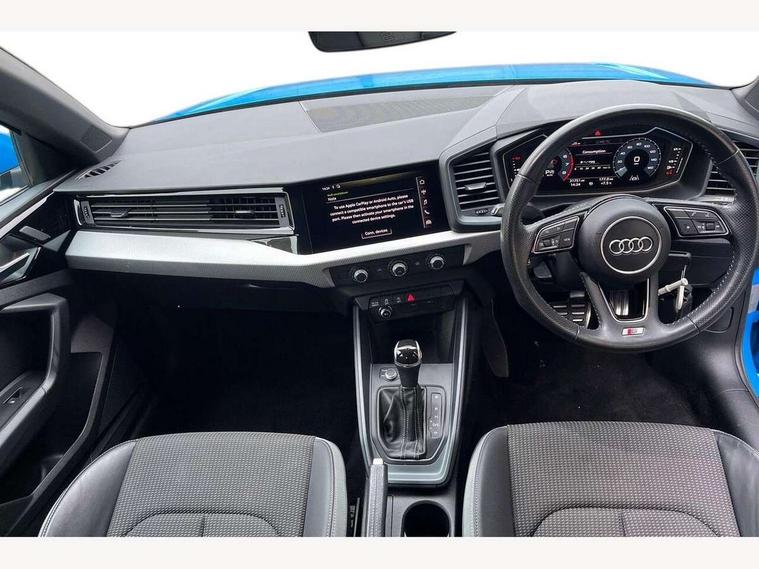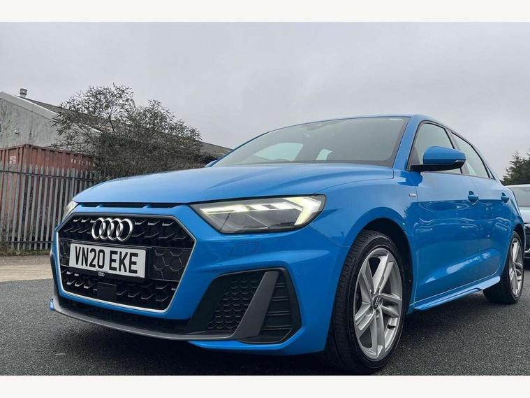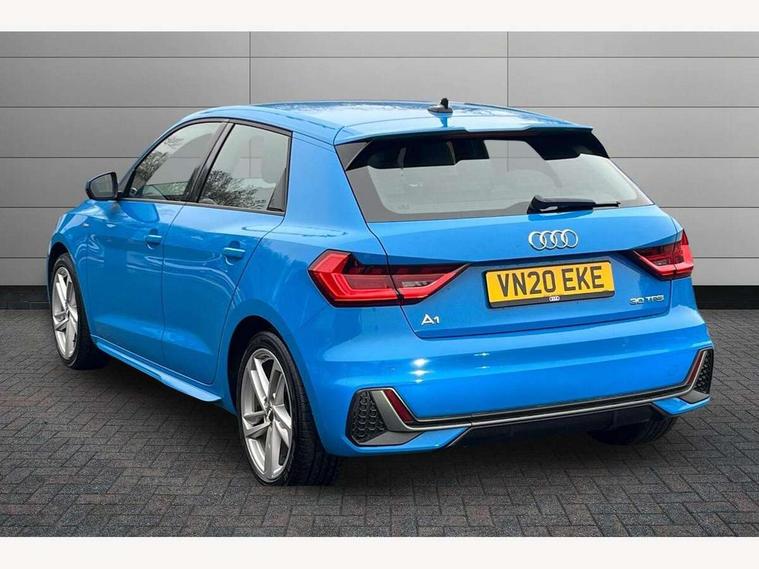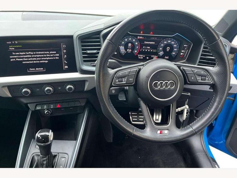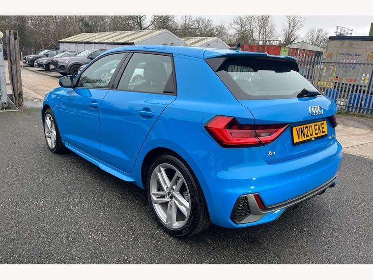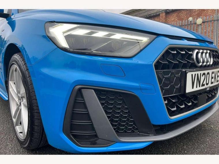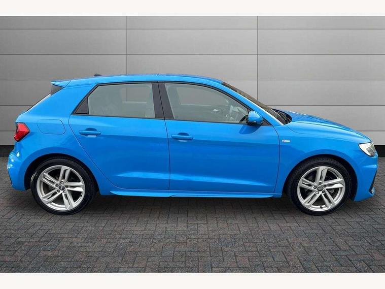 10.25" Digital instrument cluster display classis style instrument dials + speed, odometer, time, outside temperature, telephone menu + fuel level warning, Audi connect safety emergency and service including E-call, Audi drive select - power steering assistance + engine + gear shift 3 preset modes (auto, dynamic, efficiency and an Individual mode), Audi smartphone interface with connect compatible smartphone via USB directly MMI display + Nav, music, third party apps controlled via MMI controller, Automatic start/stop system, Bluetooth interface, Cruise control, Driver's information system, Electromechanical power steering, Lane departure warning system, Rear parking sensor, Service interval indicator, Speed limiter, Voice control system, Washer fluid level indicator, Sports suspension, 1 x SDXC card reader, 1 x USB type C and 1 USB type A charging points, DAB Digital radio, MMI radio plus with 8.8" colour MMI display screen and MMI touch, Auto dimming rear view mirror, Body coloured door mirrors, Door sills with aluminium inlays and S Line logo, Electric front and rear windows, Electrically adjustable, heated, folding door mirrors with integrated LED side indicator, Front side air inlets in grained matt black and C frame in titanium black, Heat insulating glass windscreen and side windows, Heated rear windscreen, LED headlights with LED rear lights + dynamic rear indicators + headlight adjustment and high beam, turning light + LED daytime running lights, Radiator grille and rear diffuser in matt titanium black, Radiator protective grille frame in matt aluminium silver, Rain and light sensors, Rear fog lights, Rear wiper, S line badges on front wings, Side front spoiler lips in grained matt black, 12V socket in centre console with two cup holders, 3 rear seats with headrests, 40:60 Split folding rear seat or folded fully, Black cloth headlining, Driver and passenger seat with manual height adjust with forward and backwards adjustment, Front and rear black floor mats with contrast stitching in fine silver, Front head restraints, Height and reach adjustable steering wheel, ISOFIX child seat mounting for front passenger and outer rear seats including top tether attachment point of outer rear seats, Leather gear knob with aluminium trim, Luggage compartment light with front and rear reading lights, Manually adjustable lumbar support in front seats, Stainless steel pedals, LED interior lighting pack - A1, Luggage compartment pack - A1, S line exterior styling pack - A1 Sportback, 3x3 point rear seatbelts, Audi pre-sense front with pedestrain and cyclist recognition, Brake assist function, Driver and front passenger airbag with front side and head airbags, Electronic Stability Control including ABS, EBD, ASR and EDL, Front and rear seatbelt reminder, Front passenger airbag deactivation switch, Hill hold assist, Seatbelt height adjustment for front seats, Seatbelt monitoring, Tyre pressure warning light, Warning triangle and first aid kit, Anti theft alarm, Anti theft wheel bolts and loose wheel warning, Immobiliser, Remote central locking with 2 foldaway keys, Aluminium trim for control switches, air vents and digital instrument cluster, Silver grey inlays polygon structure in diamond paint finish, Structured grey accent areas including air vents, door handle recesses and centre console in quartz paint finish,