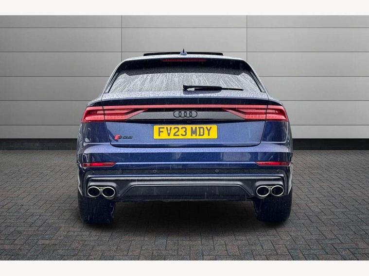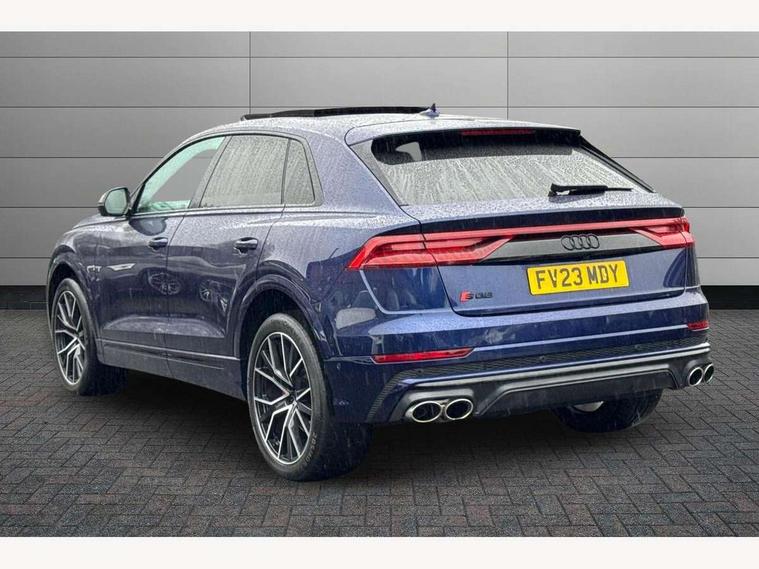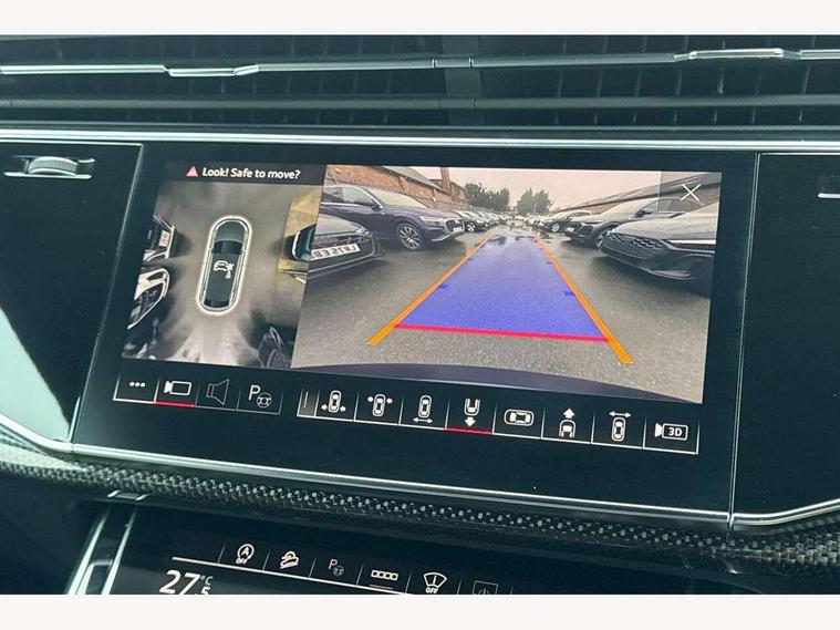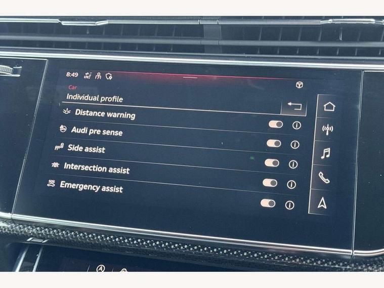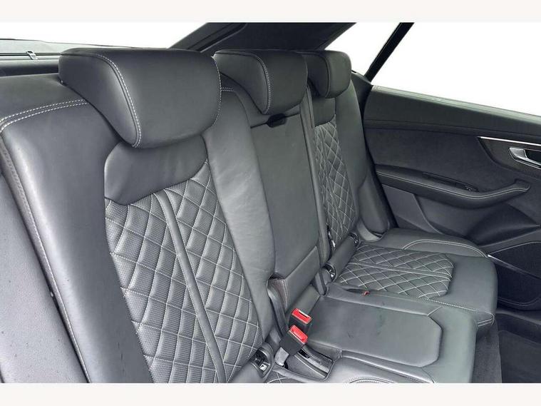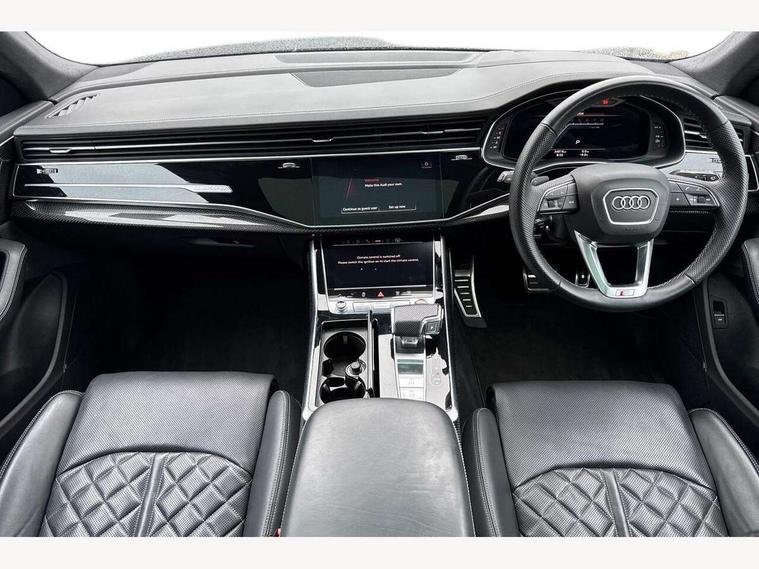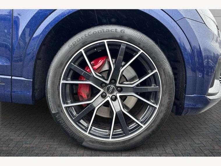 10.1" and 8.6" Dual colour touchscreens, 2 USB C ports with charging functionality in the rear, 360 camera, Adaptive cruise control, All wheel steering, Audi connect safety and service (e-call), Audi connect with Amazon Alexa Integration, Audi drive select, Audi phone box light with wireless charging, Audi side assist, Audi virtual cockpit plus, Automatic start/stop system, Camera based traffic sign recognition, Collision avoidance assistant, Cross traffic assist front and rear, Electro-mechanical PAS, Head up Display, Lane departure warning with emergency assist, Low washer fluid indicator, MMI - Multi Media Interface control system, MMI navigation plus with MMI touch, Natural voice recognition, On board computer, Operating buttons in black, glass look with haptic feedback, Power door closure, Power operated tailgate, Predictive efficiency assistant, Remote park assist plus, Service interval indicator, Smartphone interface includes wireless Apple carplay/Android Auto, Turn Assist, 48V Mild hybrid technology, 85 litre fuel tank, Electromechanical active roll stabilisation, Quattro sports differential, S specific Adaptive air suspension, Audi music interface with 2 USB ports with charge and data functions, Aux-in socket, Bang + Olufsen sound system, DAB Digital radio, 3rd brake light, Acoustic windscreen, Adaptive windscreen wipers with integrated washer jets, Audi beam, Audi HD Matrix LED headlights with dynamic front and rear indicators, Auto dimming frameless rear view mirror, Coming/leaving home lighting function, Electric front+rear windows, Electric panoramic glass sunroof, Electrically folding auto dimming/adjustable/heated door mirrors with memory function, LED side indicators and kerb view function for passenger side, Gloss black finish for exterior Audi rings and SQ8 logo, Headlight washers, Heat insulating glass in windshield, High gloss black in side window trims, LED signature daytime running lights, Platinum grey front spoiler lip and diffuser insert with honeycomb grille in black, Privacy glass - dark tinted rear and rear side windows from B-pillar backwards, Rain and light sensors, Rear side wing doors, Rear wiper, S specific dual brach chrome tailpipes on both the left and right, S specific front and rear bumpers, S specific side skirts in matt selenite silver, Side air inlet grilles in matt anthracite black, Styling accents on front bumper in anthracite black, Trim and underbody protection in matt selenite silver, 3 bench rear seats in 2nd row, 3 spoke heated leather multi-function sport steering including paddle shift, 4 zone deluxe automatic climate control, 4-way lumbar support for front seats, 40:20:40 split folding rear bench seat, Audi phone box light, Black dinamica headlining, Comfort front centre armrest, Double sun visor with illuminated vanity mirror on driver and passenger side extendable, Driver and front passenger seat memory function for electrically adjustable front seats, Electric luggage compartment cover, Electric sunblind for the rear side windows and manual sunblind for the rear window, Front head restraints, Front/rear floor mats, Heated front and outer rear seats, ISOFIX child seat mounting for front passenger seat and 2 outer rear seats with top tether child seat mounting for all 3 rear seats, Luggage compartment sill protection in stainless steel, Massage and ventilation function for front seats, Power adjustable steering wheel, Rear centre armrest with 2 cupholders, Rear headrests, Seat cushion displaceable by 100mm in the ratio 60:40, Single front passenger seat, Stainless steel pedals, Valcona leather upholstery + front super sport seats with S embossed logo, Ambient lighting package plus - Q8, Extended leather pack - Q8, 3 point seatbelts on all seats, Audi pre sense basic, Audi pre sense front, Audi pre sense rear, Child locks on rear doors, Driver and front passenger, front side and curtain airbags, Electromechanical parking brake, Electronic Stability Control (ESC) including ABS, ASR and EDL, Exit warning, Front passenger airbag deactivation, Hill descent control, Hill hold assist, Predictive pedestrian protection, Seatbelt monitoring, Traction control, Tyre pressure loss indicator, Warning triangle and first aid kit, Advanced key, Anti theft alarm with tow away protection, Anti-theft wheel bolts and wheel loosening detection, Immobiliser, 22" x 10J 5 V spoke star design alloy wheels in gloss anthracite black, Tool kit, Tyre repair kit,