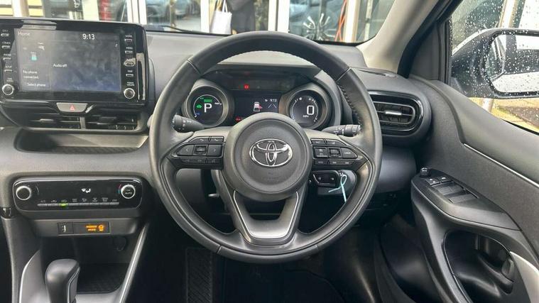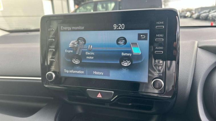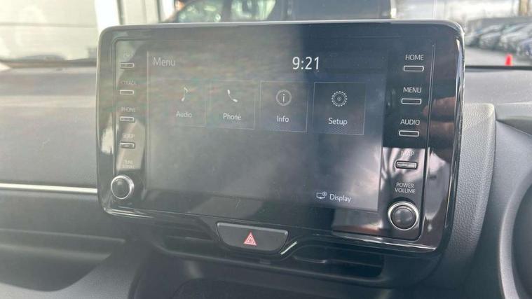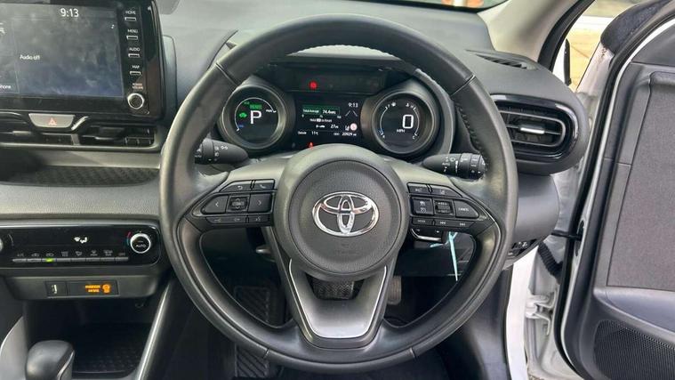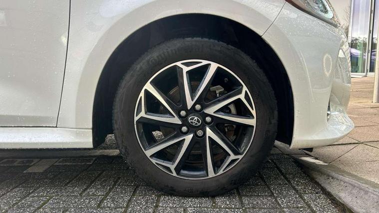 Adaptive cruise control, Adjustable speed limit with speed warning, Bluetooth connectivity, Colour binocular inspired displays with digital speedometer, E-call, Electric power steering, Hybrid energy display, Multi information display switches on steering wheel, Reversing camera, Smartphone integration with Apple CarPlay and Android auto, Tailgate, Voice recognition, Vehicle Stability Control (VSC), 4 speakers, 8" Multimedia display touch screen, USB connection, Acoustic windscreen glass, Auto windscreen wipers, Automatic headlights, Body coloured door mirrors, Electric adjustable heated door mirrors, Follow me home headlights, Front auto power windows with anti jam protection, Full LED rear lights, LED daytime running lights, LED front fog lights, LED front light guide, LED Headlights, LED High mounted stop lamp, LED Indicators, LED rear light guide, Manual headlight levelling, Painted chequered front grille, Rain sensor, Rear auto power windows with anti jam protection, Rear privacy glass, Rear side wing doors, Rear spoiler, Rear wiper, Shark fin antenna, Turning signal integrated indicators in door mirrors, Variable front intermittent wipers, 3 adjustable rear headrests, 3 spoke leather steering wheel, 60/40 split folding rear seat, Active headrests, Adjustable boot height, Auto air conditioning, Coat hooks in rear grab handles, Cup holders (2 front & door), Data Communication Module (DCM) connected services, Fabric upholstery, Front armrest, Glovebox, Grey roof lining, Height adjustable driver's seat, Isofix seat fixing, Leather gearshift, Pollen filter, Shopping bag hooks, Single front passenger seat, Tilt/telescopic steering column, 3 point seatbelts on all rear seats, ABS+EBD+Brake assist, Electronic parking brake, Emergency brake light system (EBS), Front passenger airbag on/off switch, Front seatbelt reminder, Hill start assist control (HAC), Rear child proof door locks, Rear seat belt reminder, Supplemental Restraint System (SRS) 8 airbags: Driver & passenger's airbags, dual side curtain airbags, side impact airbags, front centre airbag, Toyota Safety Sense 2, Precollison + Night time Pedestrian & Cyclist Detection, Lane Trace Assist, Auto High Beam, Intelligent ACC & Road Sign Assist, Tyre pressure warning system, 2x Master key, Alarm/immobiliser, Remote powered central double locking doors, Soft touch instrument panel, Space saver spare wheel,