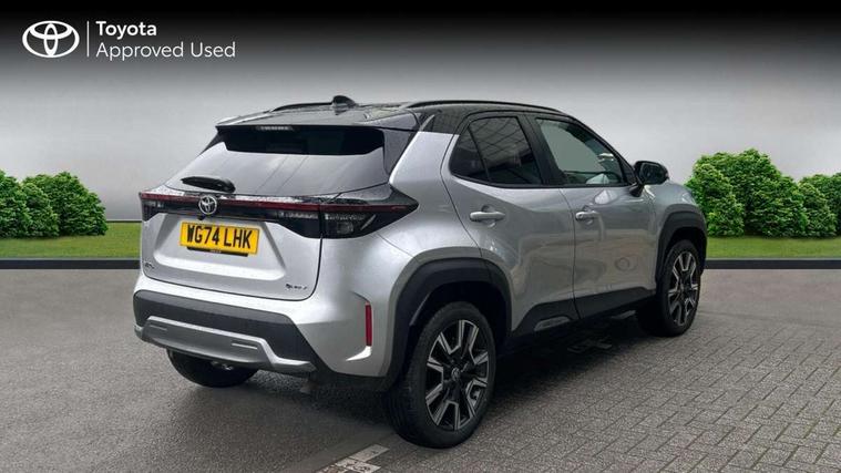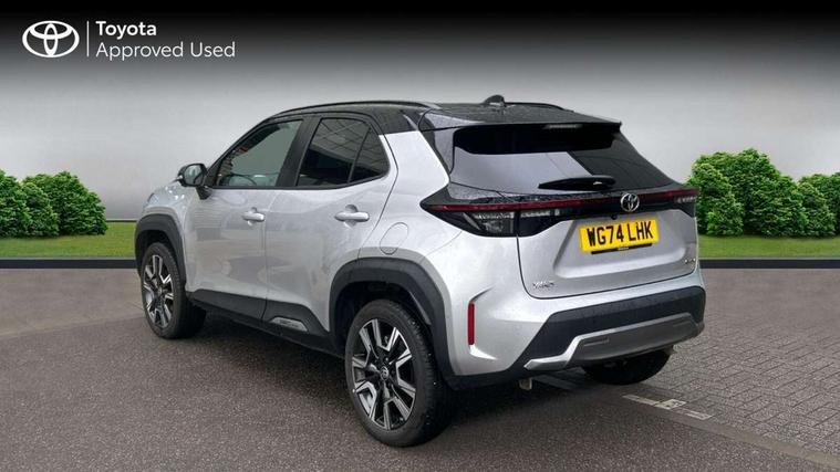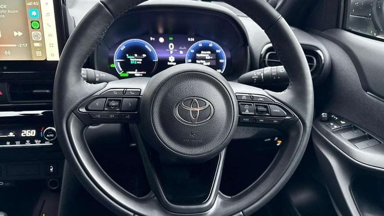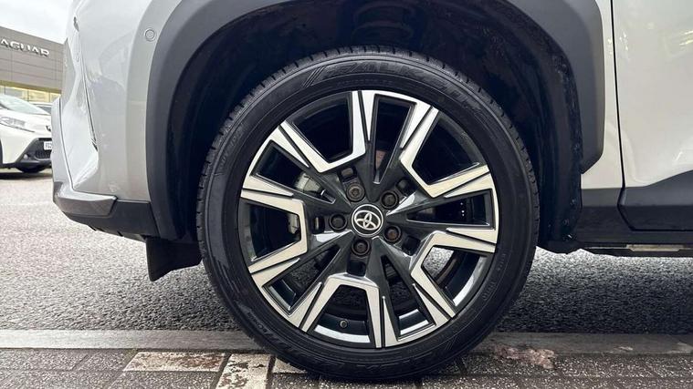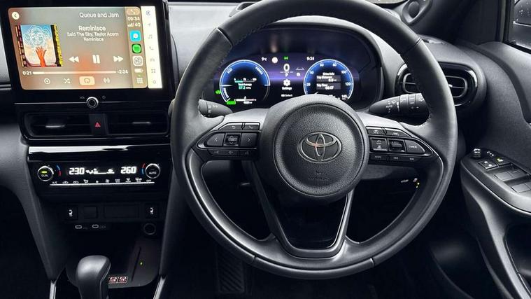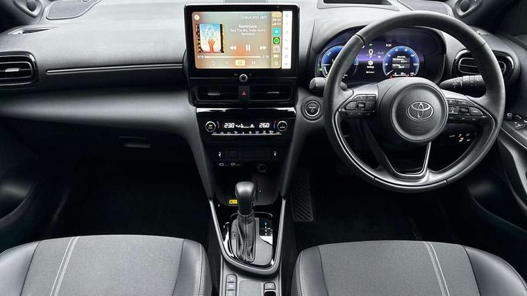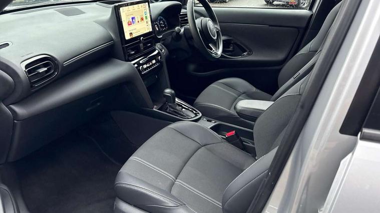 10" coloured head up display, 10.5" Multimedia display screen, 10.5" Toyota smart connect+ with navi multimedia system with wireless Smartphone integration incl Apple CarPlay, 12.3" Multi information display screen, 360 degree panoramic view monitor, Adaptive cruise control, multi info switches on steering wheel, Adjustable speed limiter, Advanced parking assist, Blind spot monitoring, Bluetooth connectivity, Color multi-information display, Digital speedometer, Digital tachometer, Drive mode selector, Driver attention alert system, Dynamic guide lines on reversing camera, eCall emergency system, Electric power steering, Emergency driving stop system, Full range intelligent adaptive cruise control, Hybrid system indicator, Intelligent front and rear parking sensors with clearance sonar and automatic braking, Intersection turn assist, Key reminder warning, Lane change assist, Lane trace assist, My T Connected services, Power tailgate, Pre-collision system enhanced with emergency steering assist, Rear cross traffic alert, Remote boot door release in cabin, Road sign assist - RSA, Safe exit assist, Telephone switch on steering wheel, Wireless Mobile Phone Charger, Steering assisted vehicle stability control, DAB Digital radio, Front USB Type-C connector, Front USB-C device charger, JBL Premium sound system with 8 speakers, 3rd brake light, Acoustic windscreen glass, Anti-jam protection on power windows, Auto dimming rear view mirror, Auto high beam [AHB] with on/off switch, Auto intermittent windscreen wipers, Automatic headlights, Automatic headlights cut-off, Black door moulding, Black lower front grille, Black protection moulding on side doors, Black roof rails, Black wheel arch mouldings, Body colour door handles, Body colour front bumper, Body colour rear bumper, Electric adjustable heated door mirrors, Follow me home headlights, Front and rear electric windows with auto up/down function, Front under run, Gloss black upper front grille, Headlight cut off reminder, Indicators integrated on door mirrors, Intermittent rear wiper, Kick activated power back door, LED daytime running lights guide, LED front fog lights, LED front light guide, LED Indicators, LED projector headlights, LED rear lights with sequential indicators, Manual headlight levelling, Meshed shape upper front grille, Noise reduction layer on windscreen, Pre wiring for towing hook, Privacy glass, Rain sensor, Rear side wing doors, Rear spoiler, Rear under run, Rear window defogger, Shark fin antenna, 12v power outlet - front, 12V power point in boot, 2x Rear coat hooks, 3 seat bench in 2nd row, 3 spoke leather steering wheel, 40/60 split deckboard, 40:20:40 split folding rear bench seat, Adjustable rear headrests, Adjustable speed limiter switch on steering wheel, Black roof lining, Boot light, Driver and front passenger personal lights, Driver and front passenger Whiplash injury Lesseing seats, Driver and passenger seatback pockets, Dual zone automatic air conditioning, Fabric door trim, Front console box, Front cup holders, Front door pockets, Front head restraints, Front sport seats, Front/rear assist grips, Gear shift indicator, Gloss black surround on gear shift console, Heated driver and passenger seats, Heated steering wheel, Height adjustable driver's seat, Height adjustable front passenger seat, Hooks for luggage holding belts, ISOFIX child restraint system, Lane departure alert switch on steering control, Leather gearshift, LED centre room light, Light on driver and passenger sun visor, Manual telescopic and tilting steering wheel, Mirror on driver and passenger sun visor, Nanoe-X air purifier, Partial synthetic leather upholstery, Pollen air filter, Power adjustable lumbar support on driver seat, Rear cup holders, Rear door pockets, Rear head restraints, Remote air-conditioning system, Single compartment glovebox, Single front passenger seat, Soft tonneau cover, Storage box under boot floor, Voice recognition switch on steering wheel, White ambient lighting in centre console, White ambient lighting in footwell, White ambient lighting on front doors, Yaris cross floor mats, 3x3 point rear seat belts, ABS+EBD+Brake assist, Downhill Assist Control (DAC), Driver and passenger central airbags, Driver and passenger front airbags, Driver and passenger side airbags, Electronic parking brake, Emergency brake light system (EBS), Front seat belt reminder, Hill start assist control (HAC), Passenger airbag on/off switch, Pre-collision system with pedestrian and cyclist detection, Rear door child safety locks, Rear passenger side airbags, Rear seat belt reminder, Traction control, Tyre pressure warning system, Digital key, Immobiliser, Intrusion alarm, Keyless smart entry with push button start, Power door locks, Power passenger window lock, Remote door lock, Gloss black side air vent surrounds, Tyre repair kit,