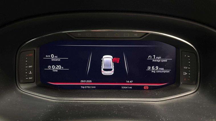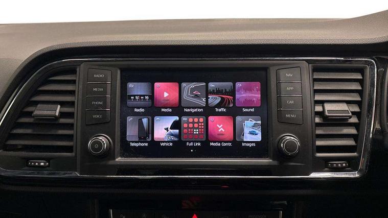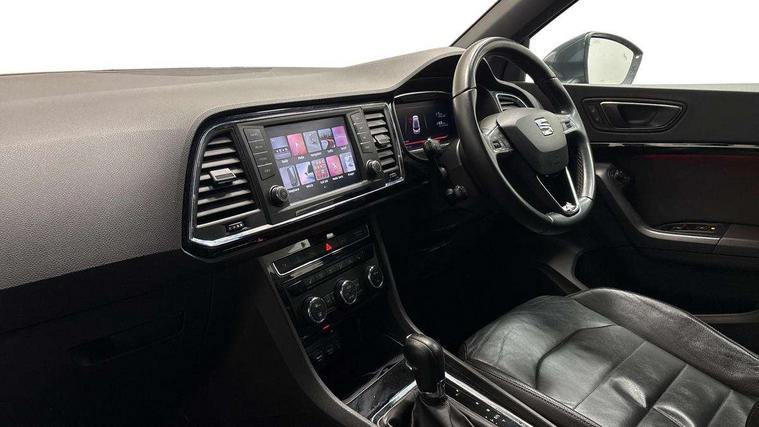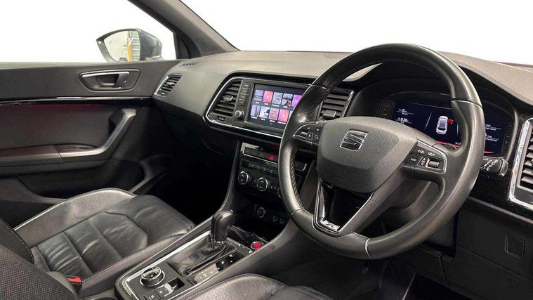 'Lights On' Reminder warning buzzer, 8.0" colour touchscreen with proximity sensor, Adaptive cruise control, Digital clock, Digital cockpit, Driver alert system, Electric tailgate with virtual pedal, Full Link Smartphone Integration with Mirror Link, Apple Car Play, Google Android Auto, Low fuel warning light, Multi function display, Outside temperature gauge, Park assist system with steering assist, Progressive power assisted steering, Rear view camera, Remote fuel flap release, RPM counter, Satellite navigation system, SEAT Drive profile, SEAT logo boot release, Self parking functionality (includes front and rear parking sensors), Top view camera, Trip computer, Wireless Smartphone charger, Comfort suspension, XDS electronic differential lock, SEAT USB media cable, Steering wheel mounted audio/phone controls, Aluminium front door sills, Auto dimming rear view mirror, Automatic headlights, Black wheel arch extensions, Body colour bumpers, Body colour door handles, Body colour door mirrors, Chrome roof rails, Chrome side window trim, Chromed centre radiator grille surround, Dark tinted rear windows, Door mirrors with welcome CUPRA light silhouette, Electric folding door mirrors, Electrically adjustable and heated door mirrors, Front and rear electric windows, Full LED headlights, Heated windscreen, Hidden exhaust pipe, High gloss black grille, LED daytime running lights, LED front fog lights with static cornering light function, LED Headlights, LED tail lights, Rear fog lights, Rear wash/wipe, Twin chromed exhaust pipes, Welcome lighting, 12V power point front, 3 height adjustable rear headrests, 4 Lashing eyes in boot, 60/40 split folding rear seat, Active head restraints, Adjustable front armrest with storage compartment, Advanced multicolour ambient light with LED interior light and LED illuminated glovebox, Black roof lining, Driver sunvisor with covered mirror + card holder, Driver/passenger lumbar adjustment, Driver/passenger sunvisors with illuminated vanity mirrors, Dual zone climate control, Footwell illumination, Front courtesy lights, Front cupholders, Front reading lights, Front seat back storage pockets, Gear shift indicator, Height adjustable driver's seat, Height adjustable front headrests, Height adjustable passenger seat, Illuminated boot, Illuminated door sills, Instrument lighting with brightness control, Isofix child seat preparation, Leather steering wheel and gear knob, Leather upholstery, Rear armrest, Rear central air outlet, Rear reading lights, Sports seats, Steering wheel gearshift paddles, Storage box under drivers seat, Advanced Driving Assistance Pack - Ateca Xcellence, Convenience pack - Ateca, Navigation system pack - Ateca, Winter Pack - Ateca, 3x3 point rear seatbelts, ABS, Auto hold function, Automatic post collision braking, Driver/Front Passenger airbags, Drivers knee airbag, Electronic parking brake, Electronic stability control, ESP+EBA, Front and rear seatbelt reminder, Front assist including city emergency braking, Front passenger airbag deactivation, Front side airbags, Hill hold control, Predictive pedestrian protection, Tiredness recognition system, Traction control, Twin curtain airbags, Tyre pressure monitoring system, 2 folding remote keys with window open/close function, Immobiliser, Keyless entry and start, Locking wheel bolts, Remote central locking, Volumetric alarm with back up horn, Chrome effect dashboard facia, 19" Exclusive machined bi-colour alloy wheels,