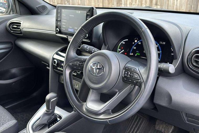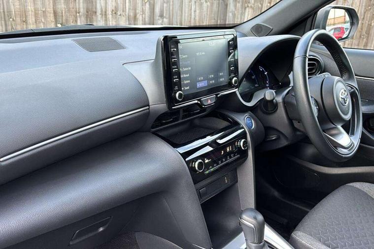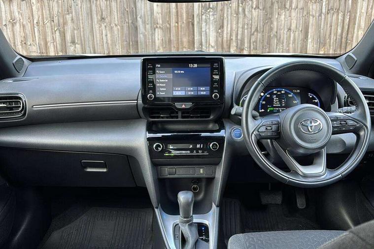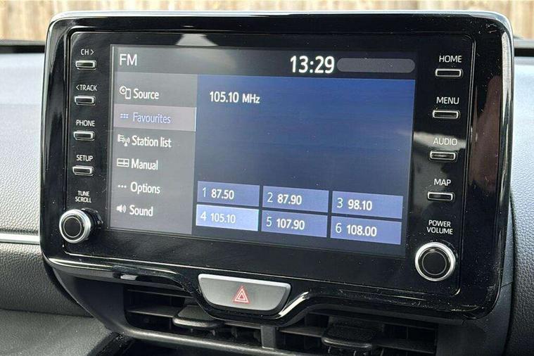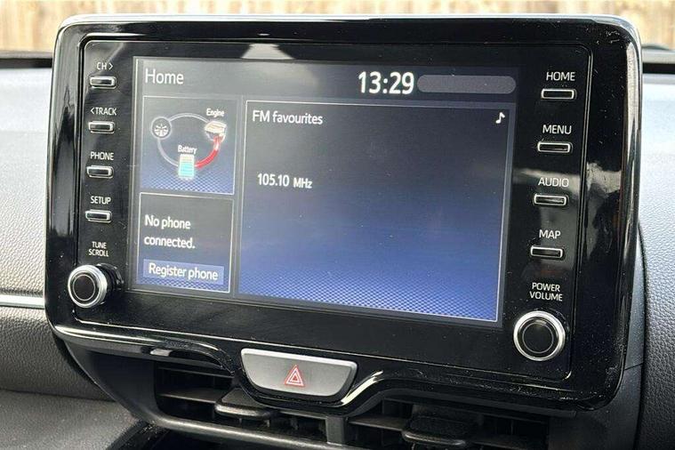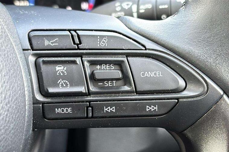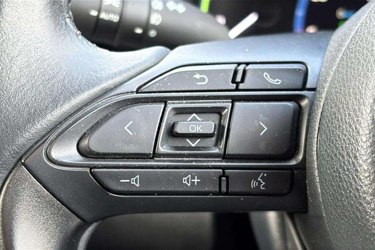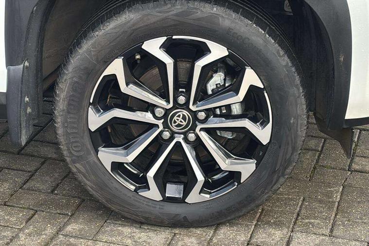 7" Multi information display screen, 8" Toyota touch 2 multimedia system with Smartphone integration with Apple CarPlay and Android auto, Adjustable speed limiter, Bluetooth connectivity, Driver attention alert system, eCall emergency system, Electric power steering, Full range intelligent adaptive cruise control, Hybrid system indicator, Key reminder warning, Lane trace assist, Multimedia, audio, telephone and voice recognition switches on steering wheel, My T Connected services, Pre-collision system enhanced with emergency steering assist, Reversing camera, Road sign assist - RSA, Steering assisted vehicle stability control, 6 speakers, DAB Digital radio, USB connection, 3rd brake light, Acoustic windscreen glass, Aluminium roof rails, Anti-jam protection on power windows, Auto high beam [AHB] with on/off switch, Automatic headlights, Black lower front grille, Black Shark-fin antenna, Black upper front grille, Black wheel arch mouldings, Body colour door handles, Body colour front bumper, Body colour rear bumper, Electric adjustable heated door mirrors, Follow me home headlights, Front and rear electric windows with auto up/down function, Front intermittent wipers, Headlight cut off reminder, Indicators integrated on door mirrors, Intermittent rear wiper, LED daytime running lights guide, LED front fog lights, LED front light guide, LED Indicators, LED projector headlights, LED rear light guide, Manual headlight levelling, Manually retractable door mirrors, Noise reduction layer on windscreen, Privacy glass, Rain sensor, Rear LED lights with sequential indicators, Rear side wing doors, Rear spoiler, Rear window defogger, 12v power outlet - front, 2x Rear coat hooks, 3 seat bench in 2nd row, 3 spoke leather steering wheel, 40:20:40 split folding rear bench seat, Adjustable speed limiter switch on steering wheel, Auto air conditioning, Black roof lining, Boot light, Central armrest, Centre console in light blue ambent lighting, Driver and front passenger personal lights, Fabric door trim, Fabric upholstery, Footwell in light blue ambient lighting, Front console box, Front cup holders, Front head restraints, Glovebox, Height adjustable driver's seat, Height adjustable front passenger seat, Hooks for luggage holding belts, ISOFIX child restraint system, Lane departure alert switch on steering control, Leather gearshift, Light blue ambient lighting on front doors, Manual telescopic and tilting steering wheel, Mirror on driver and passenger sun visor, Pollen air filter, Rear cup holders, Rear head restraints, Single front passenger seat, Soft tonneau cover, 3x3 point rear seat belts, ABS+EBD+Brake assist, Driver and passenger central airbags, Driver and passenger front airbags, Driver and passenger side airbags, Electronic parking brake, Emergency brake light system (EBS), Front seat belt reminder, Hill start assist control (HAC), Passenger airbag on/off switch, Pre-collision system with pedestrian and cyclist detection, Rear door child safety locks, Rear passenger side airbags, Rear seat belt reminder, Traction control, Tyre pressure warning system, Immobiliser, Intrusion alarm, Keyless smart entry with push button start, Power door locks, Power passenger window lock, Remote door lock, Tyre repair kit,