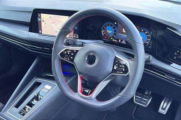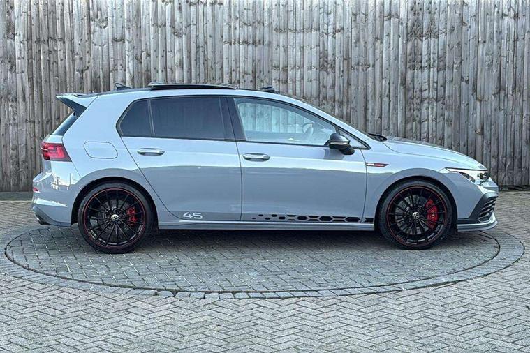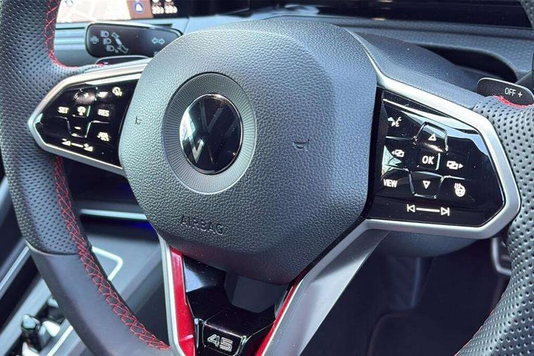 Adaptive cruise control (ACC) with speed limiter and front assist (reacting to vehicles pedestrians and cyclists), Car2X communication, Digital cockpit pro - 10.25" high resolution TFT dash display screen with customizable menus and information, Driver alert system, Driver profile selection, Dynamic road sign display, eCall - Emergency call service for SOS calls to emergency response, Lane assist, Lane change assistant, Mobile phone interface with wireless inductive charging function, Progressive steering, Speedo, rev counter, electronic odometer, trip, service interval display, exterior temperature and fuel gauge, Start/Stop function, Travel assist with emergency side assist with electrically foldable door mirrors, Warning buzzer and light for front seatbelts unfastened, Wireless app connect, Front differential lock, Petrol Particulate Filter, XDS electronic differential lock for improved traction and handling, Premium USB cable in choice of either Apple or Android smartphone compatibility, '45' lettering on the side sill panel and on the boot lid, Advanced high beam control dynamic light assist for LED matrix headlamps, Akrapovic titanium sport exhaust system, Ambient lighting, exterior illuminated styling elements at the sides, Auto dimming rear view mirror, Automatic headlamp activation with Coming home and Leaving home feature, Black painted roof, upper shell of the spoiler and door mirror covers, Body colour bumpers, Body colour door handles, Front and rear electric windows, GTI Clubsport styled bumpers, Heat insulating glass windscreen, Heated rear windscreen, High level 3rd brake light, Highway light, Illuminated front grille, IQ.Light - LED Matrix headlights, dynamic headlight control with advanced high beam control matrix dipped main beam + LED DRL + 22 LED lights, LED front fog lights with 5 honeycomb design, LED License plate illumination, LED rear combination lamp inlcuding dynamic turn signal, Performance rear spoiler, Rain sensor, Rear fog light on one side and reversing lights on both sides, Rear tinted glass 65% light absorbing from B pillar backwards, Rear windscreen washer and wiper with interval delay, Remote electrically heated, adjustable and foldable door mirrors, including door mirror puddle lights and reverse activated kerb-view adjustment on pa, Welcome light, 12V socket in front centre console, 12V socket in luggage compartment, 3 rear head restraints, 3 zone climate with controls in the rear, 45 decal and badge on steering wheel, Aluminium gear knob, Ambient lighting - Customisable 30 colour ambient lighting, Black roof lining, Brushed stainless steel pedals, Centre console, Chrome plated surround to electric mirror button, window switch and air vent surrounds, Door insert in Artvelours, Drivers and front passengers sun visors with vanity mirrors, Front + rear carpet mats, Front centre armrest with storage compartment, Front cupholders x 2, Front reading lights x 2 incorporating LED technology, Front seat lumbar support adjuster, Front sports seats, Glovebox, GTI lettering on the backrests of the front sport seats, Height adjustable front seats, Height and reach adjustable steering wheel, Isofix child seat preparation for 2 rear child seats and front passenger seat, Leather wrapped multifunction sports heated steering wheel with paddle shift, Luggage compartment lighting, Removable luggage compartment cover, Side trim panel and arm support in leatherette, Split folding backrest with centre armrest and unsplit rear seat bench, Woven fabric storage compartments in front and rear doors, 3 point height adj front seatbelts + pretensioners, 3 rear three point seatbelts, ABS, Driver and front passenger airbag with front passenger airbag deactivation, Drivers and front passengers safety optimised head restraints, Electronic parking brake with auto hold, ESC (Electronic Stability Control), Extended pedestrian protection measures, Front and rear passengers curtain airbag system including front side airbags, Front disc brakes, Rear disc brakes, Two tone horn, Tyre pressure monitoring system, Alarm with interior protection and deactivation via infotainment system, Electronic engine immobiliser, Keyless entry with start/stop button on centre console, Black metal chrome decorative inserts in dash and front door trim panels, Soul dashboard, 19" Scottsdale alloy wheels with anti theft wheel bolts, Tyre mobility kit Includes 12V compressor and tyre sealant,