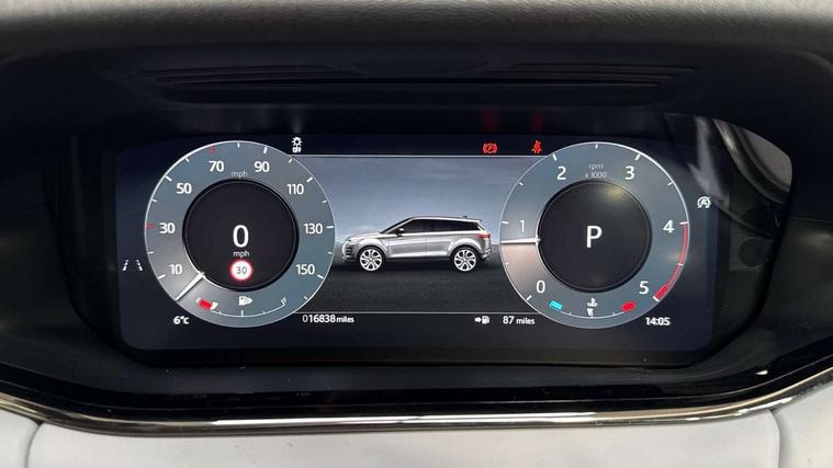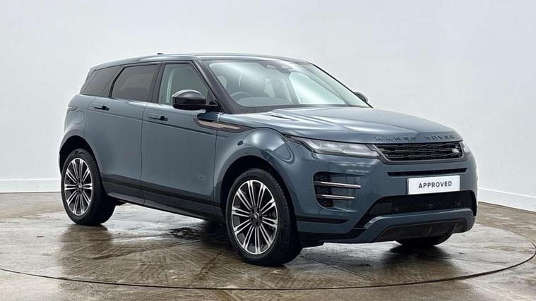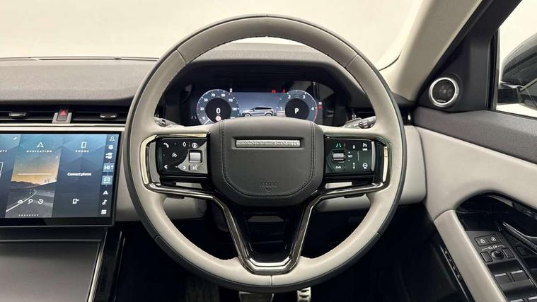 11.4" touch screen, Adaptive cruise control, Android Auto, Apple car play, Blind spot assist, Bluetooth connectivity, Brake pad wear indicator warning light, Driver condition monitor, eCall emergency system, Eco mode, Electronic power assisted steering (EPAS), Front and rear parking aid, InControl remote, Interactive driver display, Land Rover InControl apps, Lane keep assist, Pivi pro connected includes diamond pivi variant, smart settings, connected navigation pro, nuance speech licence, Powered tailgate/boot lid, Rear collision monitor, Rear traffic monitor, Traffic sign recognition with adaptive speed limiter, Voice control system, Wireless device charging, All terrain progress control, Diesel exhaust fluid (DEF) large tank, Efficient Driveline, Large fuel tank, Passive suspension, Terrain Response 2, Digital Audio Broadcast radio-DAB, Steering wheel mounted controls, Acoustic laminated windscreen, Auto headlights, Automatic headlight levelling, Electric windows with one touch open/close and anti trap, Flush deployable exterior door handles, Front and rear recovery eyes, Heated rear window with timer, Heated washer jets, Heated windscreen, Pixel LED headlights with signature DRL and LED tail Lights, Power fold, auto-dimming, heated door mirrors with approach lights and auto dimming driver side, Rain sensing windscreen wipers, Rear animated directional indicators, Rear fog lights, Rear side wing doors, Rear wiper, Side repeater indicators in mirror, Tailgate spoiler, Third brake light, Winter wiper park position, 14 way driver memory electric front seats with 2 way manual headrests + 4 way lumbar support, bolsters, 40:20:40 split folding rear seats with centre headrest and armrest, Ambient interior lighting, Bright metal pedals, Carpet mats, Chrome tread plates with range rover branding Includes stainless steel loadspace scuff plate with etched graphic, Customer configurable single point entry, Electrically adjustable steering column with memory function and easy entry/exit, Front and rear cupholders, Heated steering wheel, Isofix system on outer rear seats, Overhead lighting console, Overhead stowage for sunglasses, Passive front head restraints, Rear air vents, Rear head restraints, Satin chrome gearshift paddles, Single passenger seat, Sunvisors with illuminated vanity mirrors, Twin sliding front centre armrest, Online pack with data plan - Evoque, Power socket pack 2 - Evoque, 3 rear 3 point seatbelts, Anti-lock braking system (ABS), Brake hold function, Customer configurable autolock, DSC - Dynamic Stability Control, Electronic brake force distribution, Electronic parking brake, Electronic traction control, Emergency braking, Front and rear seatbelt reminder, Hill descent control, Hill launch assist, Low traction launch, Occupant protection assist, Passenger seat occupant detector, Power operated child locks, Roll stability control, Six airbags - Driver and passenger airbags/driver knee airbag/front side airbag and curtain airbags, Torque vectoring brake, Tyre pressure monitoring system, Alarm, Immobiliser, Intrusion sensor, Keyless entry, Locking wheel nuts,