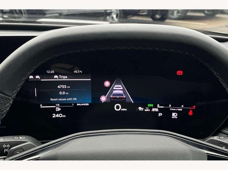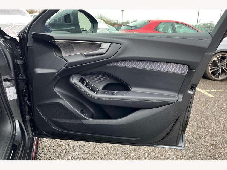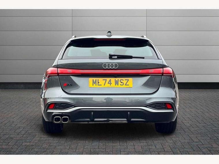 Adaptive cruise control, Advanced driver attention and fatigue montior, Audi application store, Audi assistant, Audi connect emergency call and service, Audi drive select, Audi smartphone interface, Audi virtual cockpit plus with 11.9" OLED colour display, Automatic start/stop system with coasting functionality, Camera based traffic sign recognition, Intersection assist, Lane change assistant with exit warning system, rear cross traffic alert and rear turn assist, Lane departure warning with emergency assist, MMI 10.9" front passenger touch display, MMI navigation plus with high resolution 14.5" OLED touchscreen colour display, Park assist plus, Parking system plus with 360 display, Progressive steering with servotronic, Swerve assist and turn assist, Top view camera, Traffic sign based speed limiter, Sports suspension lowered by 20mm, 2 USB-C ports in both the front and rear, Audi sound system impressive sound with 10 loudspeakers including centre speaker and subwoofer, 6-channel amplifier with a total output of 180 watts, DAB digital radio reception, Smartphone compartment with wireless charging, Aluminium window trims, Auto dimming rear view mirror, Black door handles, Black door mirrors, Black roof rails, Dark chrome-plated tailpipe trims, Door mirrors - electrically adjustable, heated, folding and auto dimming on both sides, Front and rear electric windows, Front door sill trims with aluminium inlays, illuminated with 'S' logo, Headlight cleaning system, High beam assist, LED daytime running lights, LED rear lights pro incl. dynamic rear indicators and illuminated light strip with animated coming and leaving home function, LED third brake light, Matrix LED headlights with eight light signatures selectable via the MMI or the myAudi app, Privacy glass, Rear and side windows with heat insulating glass, Rear side wing doors, Rear wash/wipe, Red S line rhombus badging on rear, S line bumpers, radiator grille and diffuser in phantom black and diffuser insert in matt anthracite, White rhombus logo projection light in exterior mirrors, Windscreen with acoustic glazing, 3 rear headrests, 3 seat rear bench, 3 spoke leather steering wheel with multi-function buttons with touch control, flattened on top and bottom, with S badging and contrast stitching, 3-zone automatic climate control, 40:20:40 split folding rear seat bench with centre armrest and cup holders, Comfort front centre armrest, Electrically adjustable front seats, Front and rear floor mats, Front sport seats with integrated headrest and S embossed logo, Headlining in black cloth, Heated front seats, i-Size child seat mounting on the front passenger side and i-Size and top tether on the outer rear seats, Luggage compartment lid, electrically opening and closing, Manual steering column height and depth adjustment, Memory function for driver seat, Single front passenger seat, Stainless steel pedals and footrest, Steering wheel grips in perforated leather and shift paddles, Ambient lighting package plus - A5, Black styling package plus - A5, 3x3 point rear seat belts, Acoustic vehicle alerting system, Convenience key with safelock, Driver airbag, Electric child safety locks, First aid kit with warning triangle and vests, Front emergency brake assist, Front passenger airbag, Front passenger airbag deactivation, Hill hold assist, Occupant detection in rear seat area, Proactive passenger protection system for front, sides and rear, Red brake calipers, Seat belt monitoring with rear seat occupant reminder, Side airbags in front and rear with head airbag system and front interaction airbag, Tyre pressure loss indicator, Anti theft alarm, Anti-theft wheel bolts, Keyless Go, Accent surfaces and control buttons in gloss black, Black dashboard with contrast stitching, Softwrap in Dinamica with contrast stitching, Upper and lower interior elements in dinamica microfiber, 20" 5 arm fold design Audi sport alloy wheels in silk matt grey and gloss turned finish, Tyre repair kit,