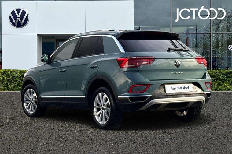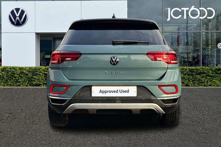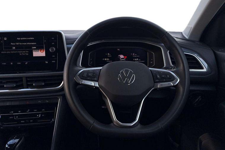 10.25" Digital cockpit pro, Advanced driver attention and drowsiness monitor, Dynamic road sign display, Emergency call service, Lane keeping system Lane Assist, Mobile phone interface, Modified key software - reduce switch off time for key status change to Long no motion, Online services, Park assist including front and rear parking sensors, Power assisted speed sensitive steering, Service interval indicator, Tailgate/trunk lid release from outside, Think blue trainer driver tips and journey analysis, Warning sound and light for front seatbelts unfastened, Wireless app connect, Battery regeneration during braking, Start/stop function with battery regeneration, DAB Digital radio, Diversity antenna for FM reception, Front and rear 6 speakers, Music playback - MP3, WMA and AAC files, Premium USB cable in choice of either Apple or Android smartphone compatibility, SD card slot, Simultaneous pairing of 2 compatible mobile devices, Title and cover art display, We Connect and We Connect Plus functionality, Auto dimming interior rear view mirror, Automatic hazard lights activation under emergency braking, Automatic headlight control with LED separate daytime running lights with coming/leaving home function, Body colour sports bumpers with silver metallic underbody fascia, Body coloured exterior mirror housings and door handles, Dynamic headlight range control with self adjusting whilst driving, Electrically adjustable and heated door mirrors, Extended roof spoiler, Exterior mirrors aspherical on driver side, convex on front passenger side, External USB type C socket and charging sockets, Front windscreen wiper with intermittent wipe and 4 position delay, Heated rear window, LED 3rd brake light, LED rear combination lamps, LED rear number plate lights, Light mode for poor weather, rain, fog or snow, Power windows with comfort operation and circuit breaker, Privacy glass for rear side windows and rear window, Rain sensor, Rear exhaust tailpipe, Rear fog light on one side and reversing lights on both sides, Rear side wing doors, Rear wash/wipe with intermittent wipe setting, Remote electrically foldable door mirrors, puddle lights and reverse activated passenger's door mirror, 12V power socket in centre console, 3 rear head restraints, 3 seat bench in 2nd row, 4 load lashing points in luggage compartment, Air care climatronic air conditoning system with active combination filter and 2-zone temperature control, Chrome plated radiator grille inserts, air vent surrounds and light switch surrounds, Door and side trim panel with leatherette insert, Drawer under drivers seat, Front + rear carpet mats, Front centre armrest, Front comfort sports seats, Front cupholders x 2, Front footwell illumination, Front seat back storage pockets, Glove compartment door with light, Instrument lighting, white adjustable panel illumination, Interior ambient lighting and surround lighting, Interior light delay, Isofix child seat preparation, Leather gearshift handle, LED interior light with switch off delay/dimmer and 2 front/rear LED reading lights, Load-through provision with cup holder when folded down ('Unsplit rear seat bench, split folding backrest, with centre armrest), Luggage compartment lighting, Non-folding front passenger seat backrest, Single front passenger seat, Storage compartment in left and right luggage area, Storage compartment in rear doors, Storage compartments in driver and front passenger doors, Sunvisors with illuminated vanity mirrors, Variable boot floor, height adjustable and removable, Driver assistance pack without proactive passenger protection - T-Roc, 3 point height adj front seatbelts + pretensioners, 3 point seatbelts in outer rear with ECE label, ABS, Child locks on rear doors, City emergency braking and pedestrian monitoring, Driver and front passenger airbag with front passenger airbag deactivation, Driver and front passenger safety-optimised head restraints, Drivers seatbelt reminder, Electronic parking brake, Electronic Stability Control (ESC) inc EDL (Electronic Differential Lock) and ASR (Traction Control), Front and rear passengers curtain airbag system including front side airbags, Predictive pedestrian protection, Rear disc brakes, Two tone horn, Tyre pressure loss indicator, Volkswagen roadside assistance, Deep iron grey decorative inserts in dashboard, centre console and front door trim panels, Trims for alloy wheels,
