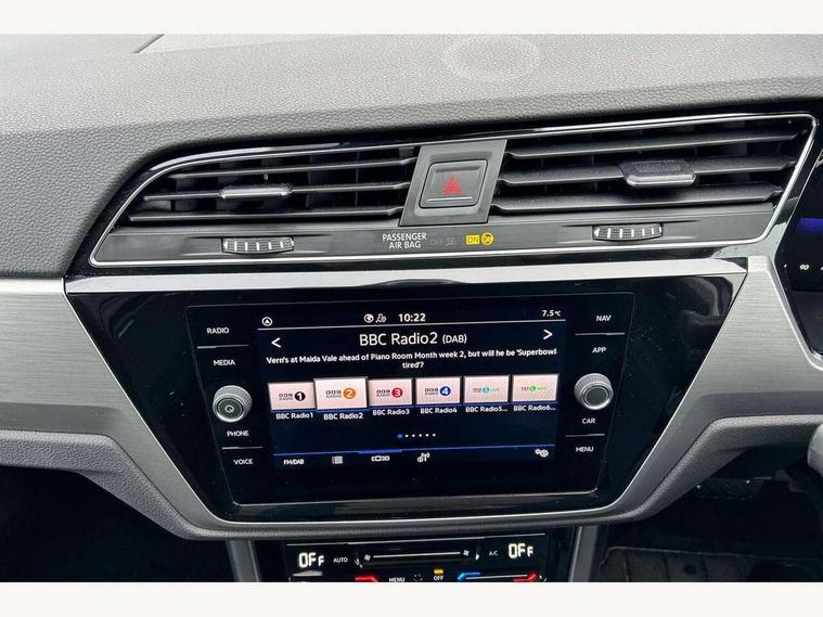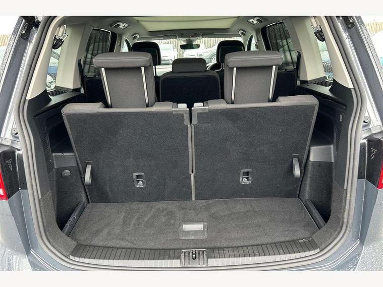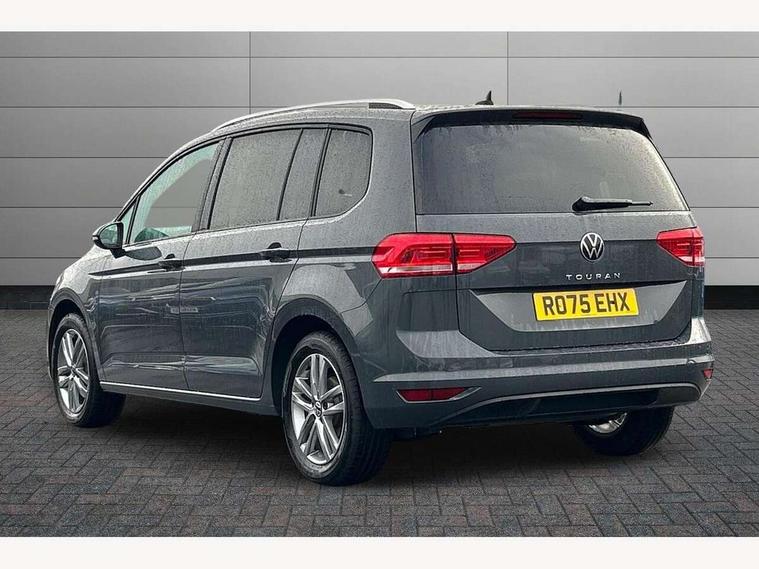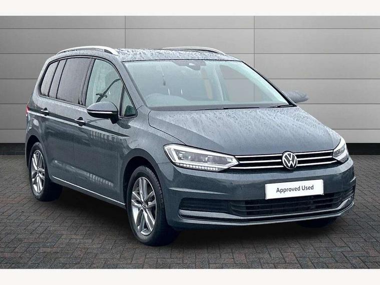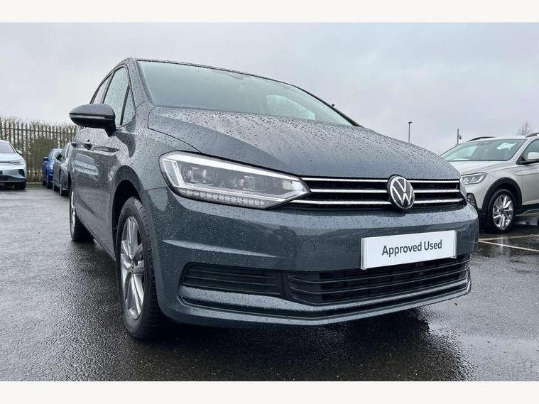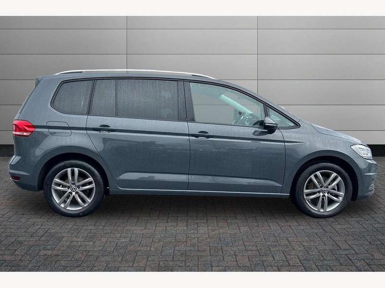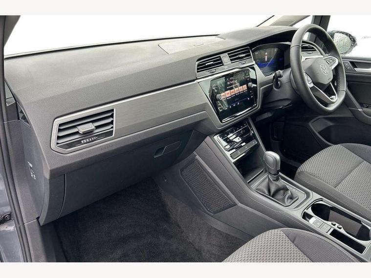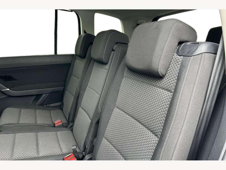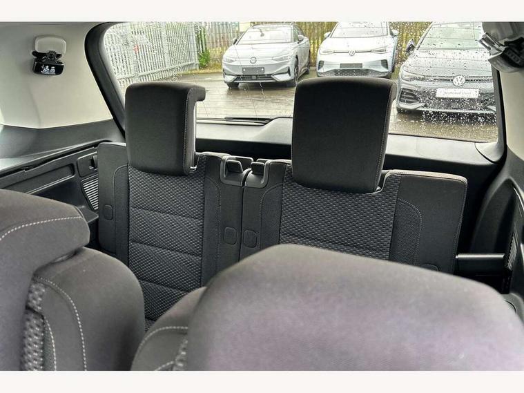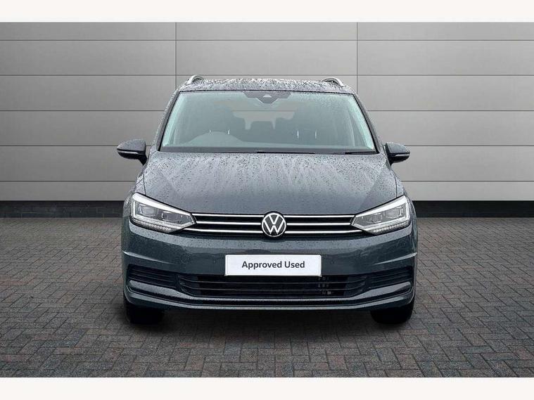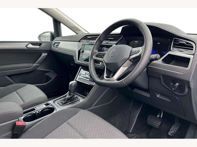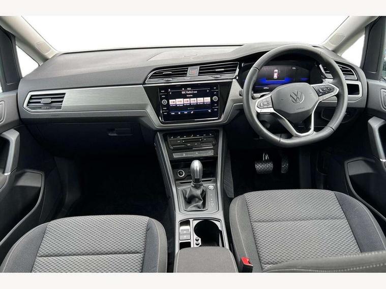 Adaptive cruise control, Audible lights on warning, Discover media navigation touchscreen navigation/radio system with streaming and internet, Driver alert system, Driver profile selection, Dynamic road sign display, Electric tailgate, Electronic odometer, Emergency services call system, Extended, crash-active and proactive Pedestrian and cyclist monitoring, External temperature gauge, Front parking sensors, Lane change system side assist and rear traffic alert, Lane keep assist, Misfuelling protection device, Mobile pairing with SMS function, Mobile phone interface with inductive charging, Rear view camera displayed via vehicles audio system display, Rev counter with fuel gauge, Side scan, Speed limiter, Speed sensitive power steering, Stop/start system, Think blue trainer driver tips and journey analysis, Trip and service interval display, We connect' and 'We connect plus' functionality, Petrol Particulate Filter, Rear stabiliser bar, XDS electronic differential lock, 4x20 watt output, 8 Speakers, Audio Connectivity System, DAB Digital radio, External USB-C data socket with increased charging performance - 2 USB sockets 45W, MP3/WMA compatability, SD card slot, Title and cover art display, USB connection, Aerial integrated into side window, Auto dimming door mirrors, on driver side, surround lighting and front passenger side mirror lowering function, Auto dimming rear view mirror, Automatic coming/leaving home lighting function, Body colour bumpers, Body colour door handles, Body colour door mirrors with integral indicators, Door mirrors with memory function, Dusk sensor + auto driving lights, Electric folding door mirrors, Electric heated + adjustable door mirrors, Electric, glass sliding/tilting panoramic sunroof including integrated roller blind and LED lighting around aperture, Front and rear electric windows, Fully galvanised body, Gloss black finish B pillar, Green tinted heat insulating glass, High level third brake light, Rain sensor, Rear fog lights, Rear side wing doors, Rear tinted glass from B-pillar backwards approx 65% tinted, Rear wash/wipe with intermittent wipe setting, Removable engine badge, Silver roof rails, Tailgate wiper- reverse gear activation, Twin chrome exhaust tailpipes, Volkswagen roundel, Windscreen wipers intermittent wipe, 12V power point for Row 2, 12V socket in luggage compartment, 2 individual fold flat 3rd row seats, 2 three point seatbelts in 3rd row, 2nd row centre armrest, 2nd row centre seat converts into table, 3 single slide/fold/removable 2nd row seats, 3 spoke steering wheel, 3x3 point seatbelts on 2nd row with height adjust on outer seats, 4 boot load lashing points, 4 way adjustable front head restraints, 5 headrests, Activated charcoal canister for intensified evaporation system, Air care climatronic 3 zone air conditioning system with rear air conditioning control panel, Chrome plated radiator grille inserts, air vent surrounds and light switch surrounds, Driver and front passenger under seat drawer, Dust/pollen filters, Foldable front passenger seat backrest with load through function, Front and rear reading lights X 2, Front centre armrest with storage compartment, Front comfort seats with lumbar support, Front cupholders x 2, Front passenger seat height adjust, Front seat storage pockets, Front seatback folding tables, Height adjustable driver's seat, Height/reach adjust steering wheel, Illuminated glovebox, Instrument lighting white adjustable panel illumination with red night time illumination, Interior light with delay, Isofix on 2nd row outer seats, Isofix on 3rd row seats, Large storage compartment in roof console, Lasano cloth upholstery, Leather multifunction steering wheel with gear knob, Leatherette on rear of front seats, Low tunnel 2nd row seat, Luggage compartment lighting, Media box in dashboard on passenger side, Multi storage in passenger/luggage areas, Multi-function centre console with storage facilities, Retractable luggage cover, Split folding rear seat backrests, Storage bins on all doors, Sun visors with illuminated vanity mirrors, Family Pack - Touran, Winter pack without heated washer jet - Touran, 3 point height adjustable front seatbelts, Auto hold function, Automatic post collision braking system, Door open warning reflectors, Driver/Front Passenger airbags, Drivers knee airbag, EDL + ASR, Electronic parking brake, Energy recovery system, ESC with ABS, First aid kit, Front and rear (row 2) curtain airbags, Front assist with autonomous emergency braking, Front seat side impact airbags, Front seatbelt pretensioners, Front/rear disc brakes, Hill hold control, Hydraulic Brake Assist (HBA), Loose wheel warning function, Manual passenger airbag deactivation function, Pre crash preventive occupant protection, Proactive passenger protection system with front and side assist, Rear child proof door locks, Road sign recognition, Seatbelt warning lamp and buzzer, Traction control, Two tone horn, Warning triangle, Alarm with remote central locking and interior protection, Electronic engine immobiliser, Keyless Access Keyless locking and starting system with SAFELOCK, New brushed design decorative inserts in dash and front doors, 17" Salvador alloy wheels with anti-theft wheel bolts, 215/55 R17 self sealing tyres with low rolling resistance,