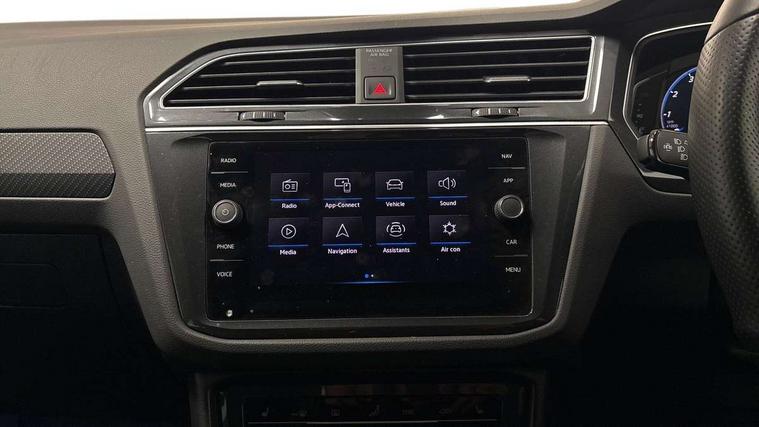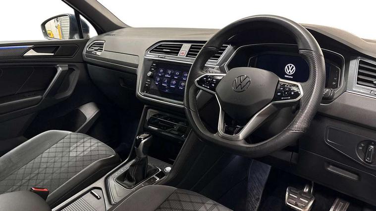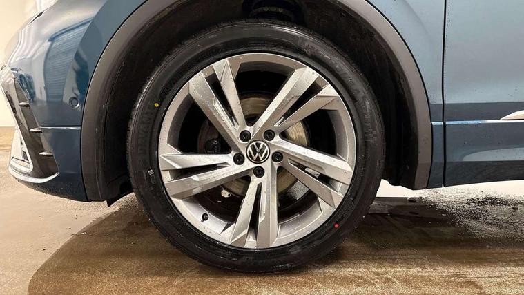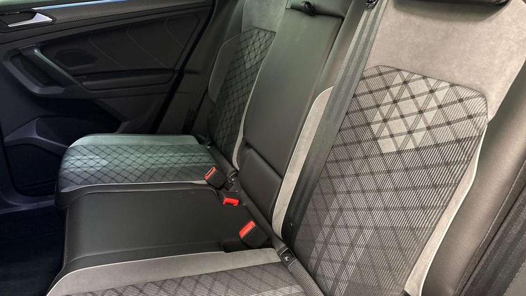 Adaptive cruise control ACC stop and go including speed limiter, App-Connect incl. App-Connect Wireless for Apple CarPlay and Android Auto, Bluetooth phone integration system, Comfort drive travel assist, Digital cockpit pro, Driver alert system, Driver profile selection, Dynamic road sign display, eCall emergency call system, Electromechanical speed sensitive power steering, Emergency assist, Front and rear parking distance sensors, Instrument cluster mph speedometer Great Britain, Lane keeping system Lane Assist, Lights on warning, Multifunction front facing camera, Outside temperature display, Premium multifunction display with multi colour display, Preparation for subsequent activation Navigation feature Discover Media includes Streaming and Internet, Remote control boot opening, Rev counter, Service interval indicator, Speed limit display, Start/stop system with regenerative braking, Tailgate/trunk lid unlocking from outside, Trip computer, Warning sound and light for doors and tailgate open, Battery regeneration during braking, Sports suspension, 8 Speakers, Digital radio reception DAB+, Diversity antenna for FM reception, Radio, Auto dimming interior rear view mirror, Automatic headlight control system, Body colored bumpers in R-Line style, Body colored exterior mirror housings, Body colour door handles, Chrome moldings on the side windows, Coming/leaving home lighting function, Dynamic headlight range control, Front and rear electric windows, Heated rear window, High level 3rd brake light, Laminated safety glass windshield, heat and sound insulating, LED headlamps with LED separate daytime running light and dynamic cornering light, LED rear combination lamps, LED rear number plate lights, License plate carrier in front and rear, Poor weather light and cornering light, Power adjustable, folding and heated door mirrors with surround lighting, front passenger exterior mirror lowering function, Privacy glass for rear side windows and rear window, R Line body kit, R Line side sills, Rain sensor, Rear exhaust tailpipe, Rear fog lamp, Rear side wing doors, Rear spoiler in R style, Rear windscreen washer and wiper with interval delay, Side and rear windows in heat insulating glass, Trailer Stability Programme, Unique R Line badging, Windscreen wipers/ intermittent wipe + 4 position delay, 12V outlet in center console rear and in luggage compartment, 12V outlet in front and tray, 2 LED front reading lights, 2 LED rear reading lights, 3 bench rear seats in 2nd row, 3 rear headrests, Air Care Climatronic 3 zone automatic climate control with enhanced air filter and controls in the rear, Art Velours greyson sports cloth upholstery, Backrest release for left front seat, Black headlining, Brushed stainless steel pedals and footrest, Carpet mats in front and rear with decorative stitching in Gray, Climate control unit rear with touch function, Door and side trim panel in foam film, insert in leatherette, Driver + front passenger lumbar support, Front footwell illumination, Front scuff plates in aluminum with R-Line logo, Front seats head restraints (x-adjustment), Height adjustable front seats, Height/reach adjust steering wheel, Isofix Preparation 2 Rear child seats, Leather gear knob, Rear bench seat asymetrically split folding, longitudinally movable and folding with load-through hatch and center armrest, Remote unlocking for rear seat backrest, Single front passenger seat, Sun visors with illuminated vanity mirrors, Top front comfort seats, Winter pack - Tiguan, 3 point seat belt for centre rear seats, 3 point seat belts with seat belt pretensioners for the outer rear seats, Curtain airbags for front and rear passengers, Driver/Front Passenger airbags, Drivers knee airbag, Electronic parking brake with auto hold, Electronic Stability Control with driver steering recommendation, ABS, ASR, EDL, EDTC and trailer stabilization, Front assist with autonomous emergency braking (for Adaptive Cruise Control ACC up to 130 mph), Front disc brakes, Front passenger airbag deactivation, Front side airbags, Height adjustable front 3 point seatbelts + pretensioners, Manual child proof rear door locks, Pedestrian monitoring system, Proactive passenger protection system in combination with front assist, Rear disc brakes, Two tone horn, Tyre pressure loss indicator, Warning sound and light for front seat belts if unfastened, Warning triangle, Anti theft alarm system with interior monitoring, backup horn and towing protection, Anti theft wheel bolts, Electronic engine immobiliser, Keyless locking and starting system keyless access with safelock, Chrome elements on the mirror switch power window switches and door pulls, Decorative inserts Carbon Gray for dashboard and front door trim panels, Interior door handle in matte chrome, 19" Valencia alloy wheels with AirStop tyres, Tool kit, Tyre mobility kit Includes 12V compressor and tyre sealant,