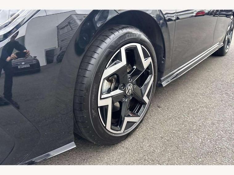 Activated carbon canister, Adaptive cruise control (ACC), Advanced driver attention and drowsiness monitor, Dynamic road sign display, Dynamic steering, E-Sim card for online connectivity, eCall emergency call system, Multi-color Digital cockpit pro, selection of different info profile possible, Multifunction front facing camera for distance control, Navigation system, Oncoming vehicle braking when turning including swerve support, Speed limiter, Speedo, rev counter, electronic odometer, trip, service interval display, exterior temperature and fuel gauge, Traffic jam assist, Voice enhancer and voice control, Warning signal and warning light for front and rear seatbelts not fastened, We connect plus preparation, We connect preparation, Wireless app connect, Hybrid propulsion system, Petrol Particulate Filter, Start-stop system with battery regeneration (recuperation - energy recovery during braking), XDS electronic differential lock for improved traction and handling, 2 USB C ports in front, 2 USB charging sockets on the centre console in the rear charging capacity upto 45W, Digital radio reception (DAB), Diversity antenna for FM reception, Gaming platform via car app, Infotainment system with 12.9" display, Mobile phone interface with inductive charging feature, 3rd brake light, Automatic headlamp activation with Coming home and Leaving home feature, Body colored bumpers in R-Line style, Body colour door handles, Exterior mirrors convex on the left and aspherical on the right, Front and rear electric windows, Heat insulating windshield made of laminated glass, LED separate daytime running light, Rear exhaust tailpipe, Rear fog light on one side and reversing lights on both sides, Rear side wing doors, Rear windscreen washer and wiper with interval delay, Remote electrically foldable door mirrors, puddle lights and reverse activated passenger's door mirror, Welcome light with surround lighting, 12V socket in front centre console, 12V socket in luggage compartment, 3 rear head restraints, 3 seat bench in 2nd row, Ambient lighting with 30 colour including LED light unit in front footwell with selectable light colour, Black roof lining, Brushed stainless steel pedals, Chrome plated radiator grille inserts, air vent surrounds and light switch surrounds, Door insert, side trim panel and arm support in leatherette, Front + rear black carpet mats, Front centre armrest, Front seat lumbar support adjuster, Integrated front head restraints, ISOFIX anchors for child seats on outer rear bench seats and on front passanger seat compatible for i-Size, Luggage compartment lighting, Manual height adjustable front passenger seat, Manually height adjustable driver seat, Plastic gear knob, Premium sports seats in front, Rear cupholder and loadthough, Sardegna cloth upholstery with front and outer rear seats Art Velour inner sides of bolsters, Single front passenger seat, Split folding backrest with centre armrest and unsplit rear seat bench, Sun visors with illuminated vanity mirrors, Titanium black instrument panel, 3 point height adj front seatbelts + pretensioners, 3 rear three point seatbelts, ABS, Autonomous emergency braking front assist with pedestrian and cyclist monitoring, Child locks on rear doors, Driver and front passenger airbag with front passenger airbag deactivation, Electronic parking brake with auto hold, ESC (Electronic Stability Control), Extended pedestrian protection measures, Hill start assist, Rear disc brakes, Two tone horn, Tyre pressure loss indicator, Volkswagen roadside assistance, Anti theft wheel bolts, Preparation for alcohol interlock, Decorative inserts carbon grey for dashboard and front door trim panels, Tool kit for tyre mobility set, Tyre mobility kit Includes 12V compressor and tyre sealant,